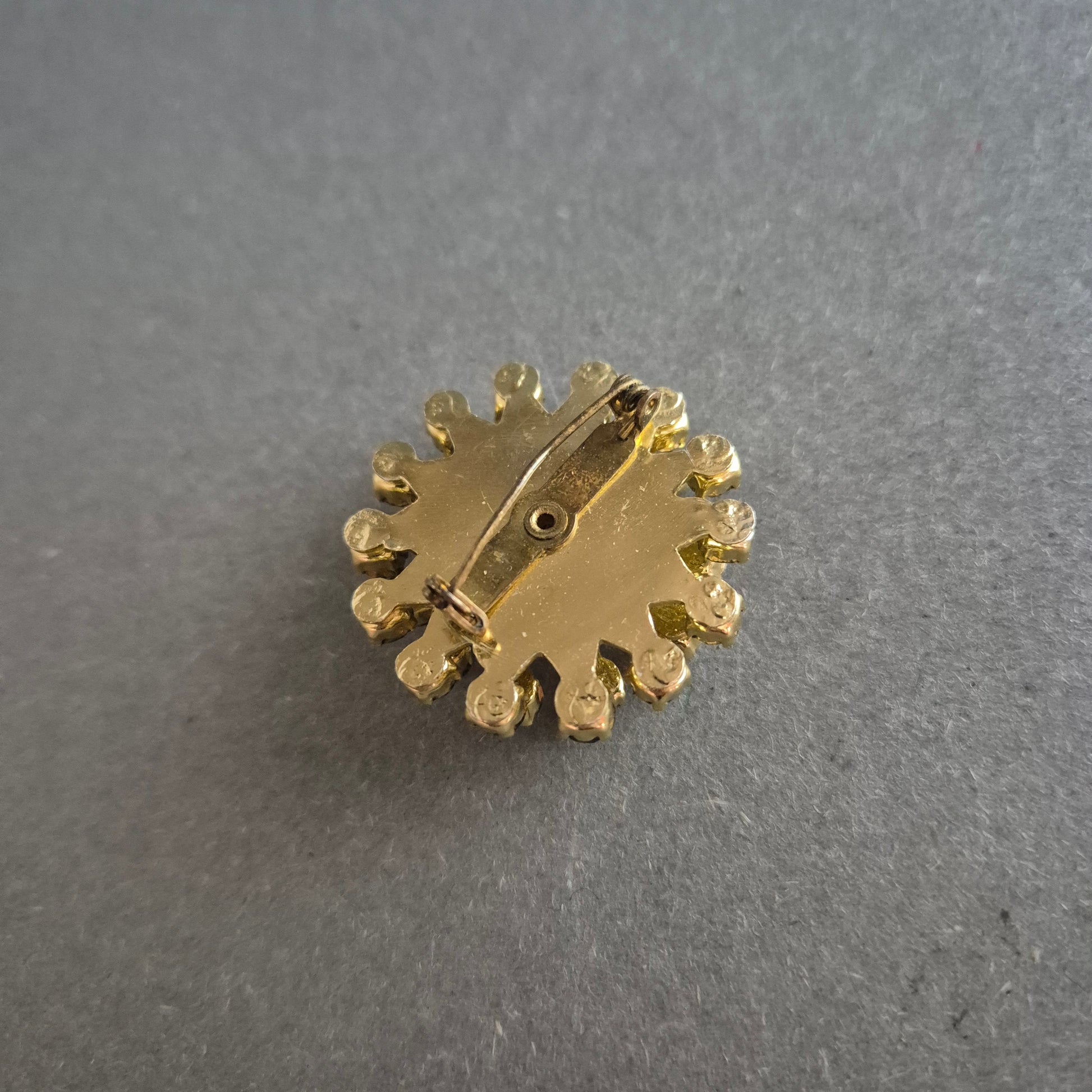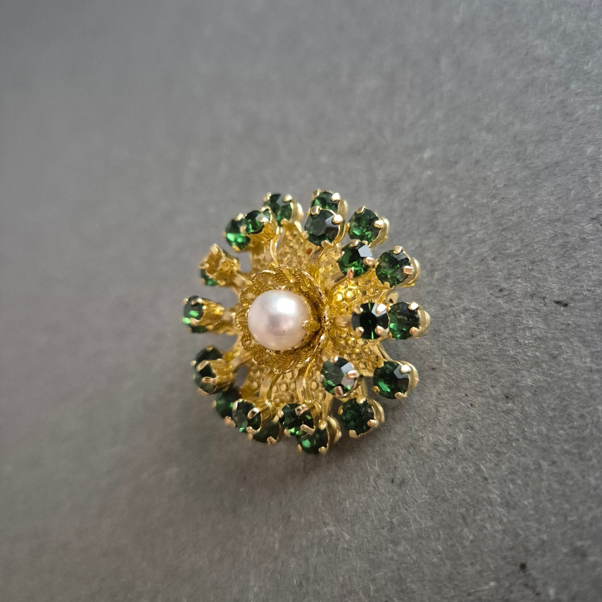 Vergoldete Brosche mit grünen Steinen und Perle – Florales Vintage-Design