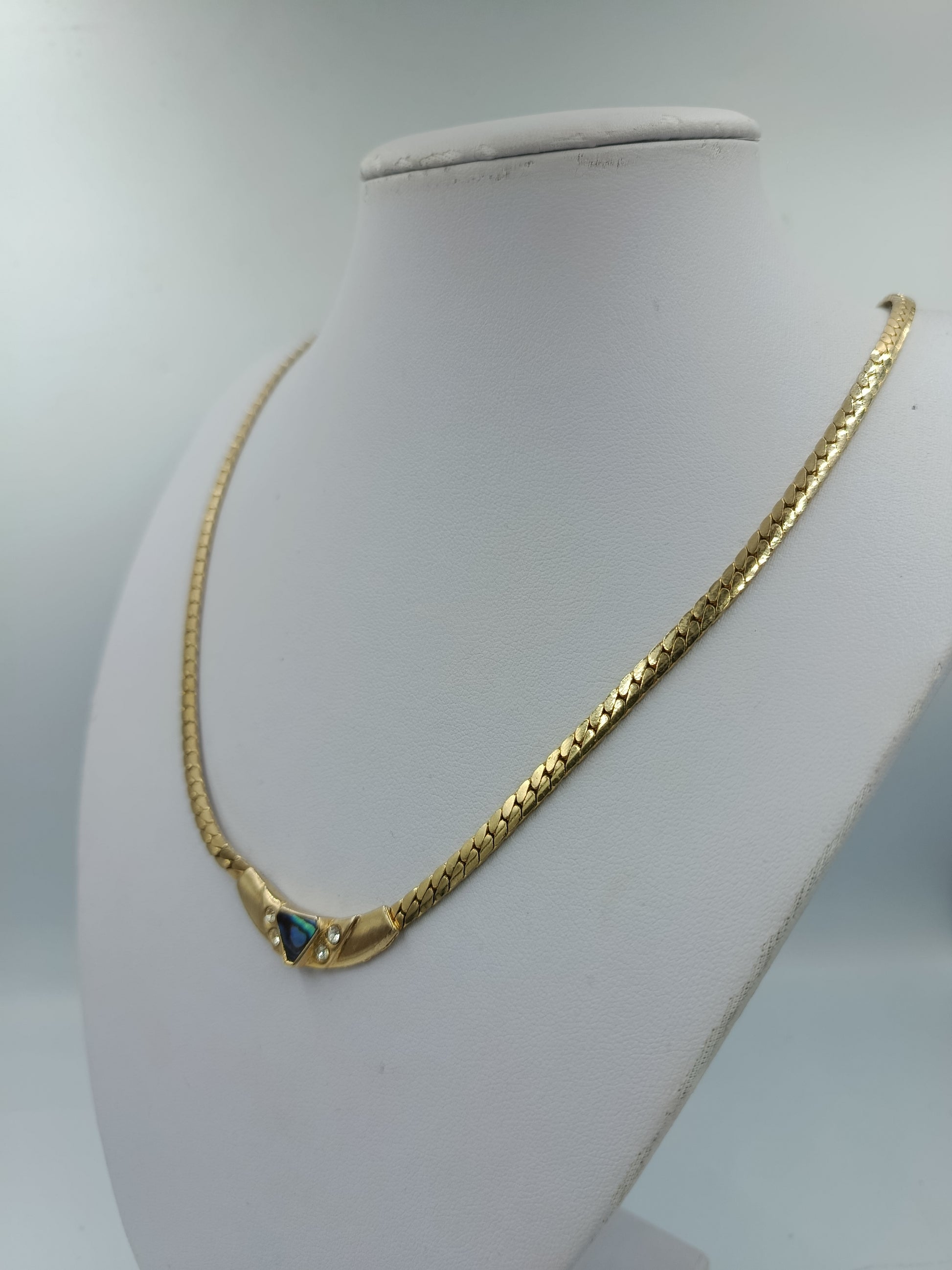 Vergoldete Kette mit Abalone Einlage und Kristallen