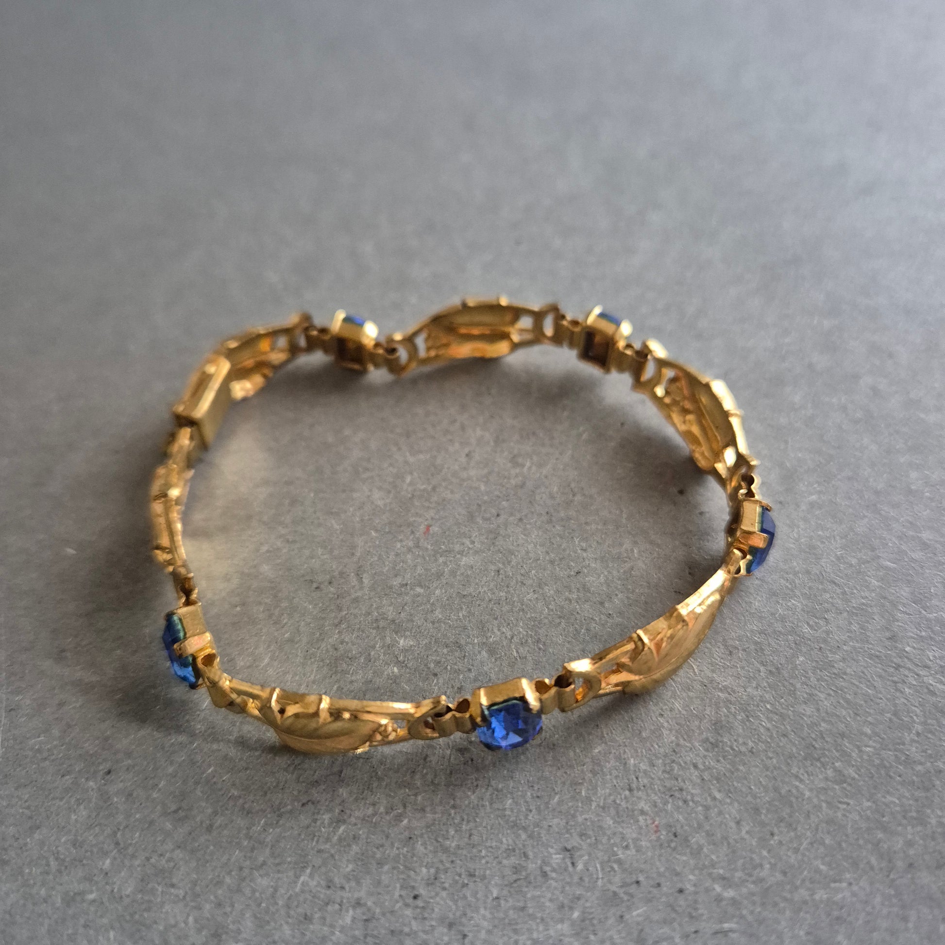 Vergoldetes Vintage-Armband mit blauen Steinen – Elegant und filigran