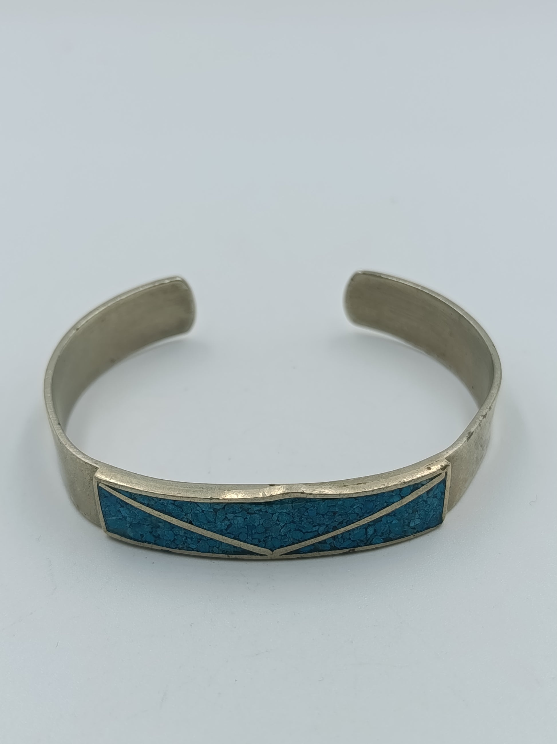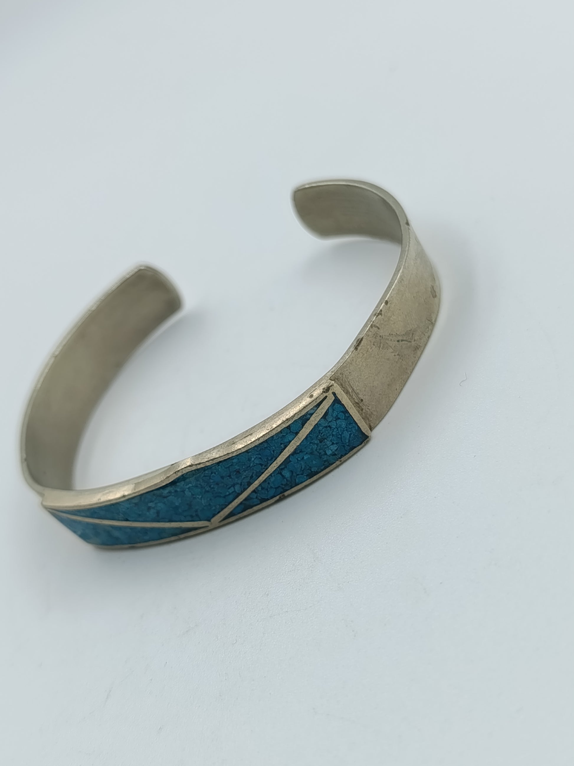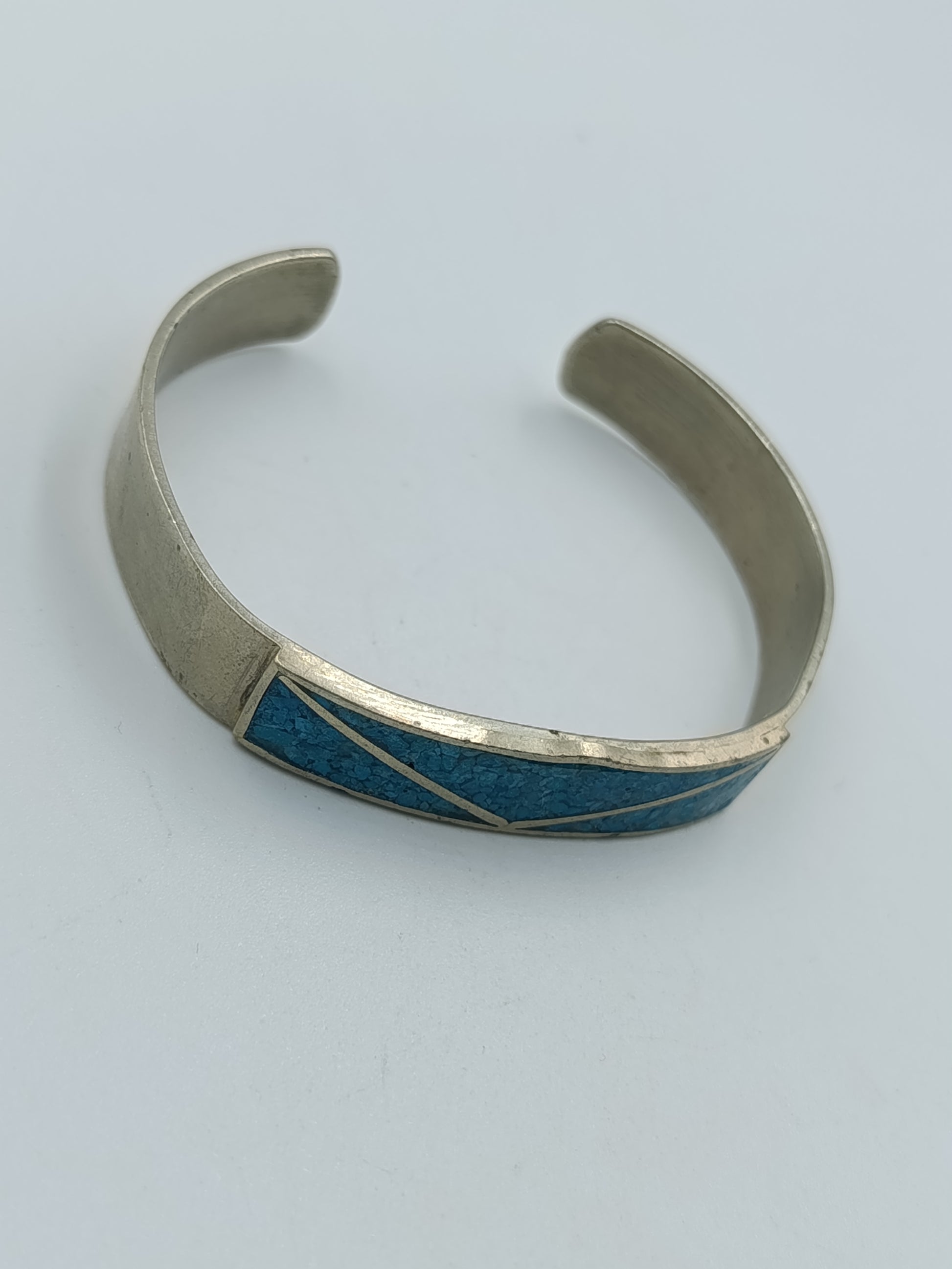 Versilberter Armreif mit Türkis-Einlage, Mexico Stempel