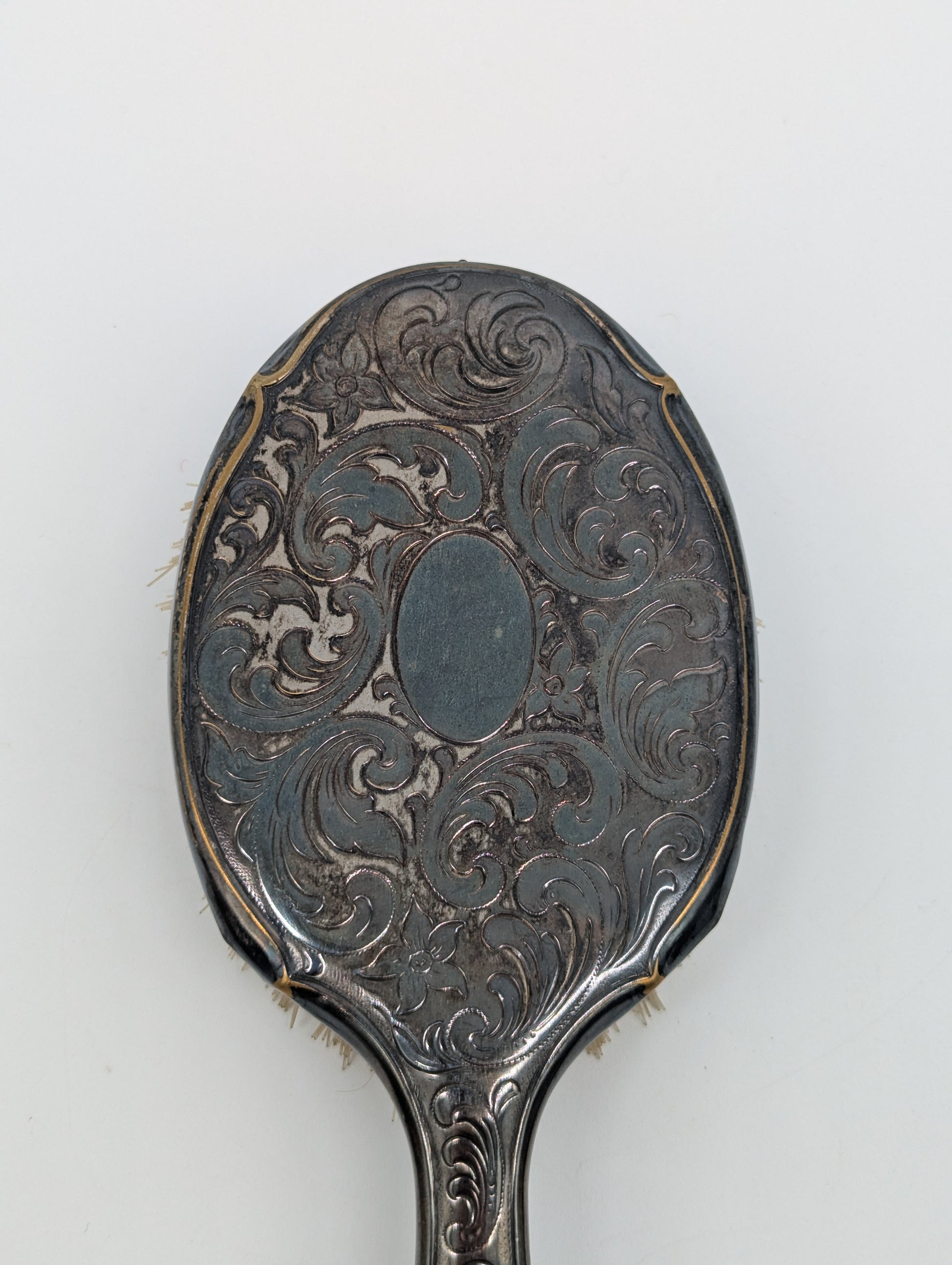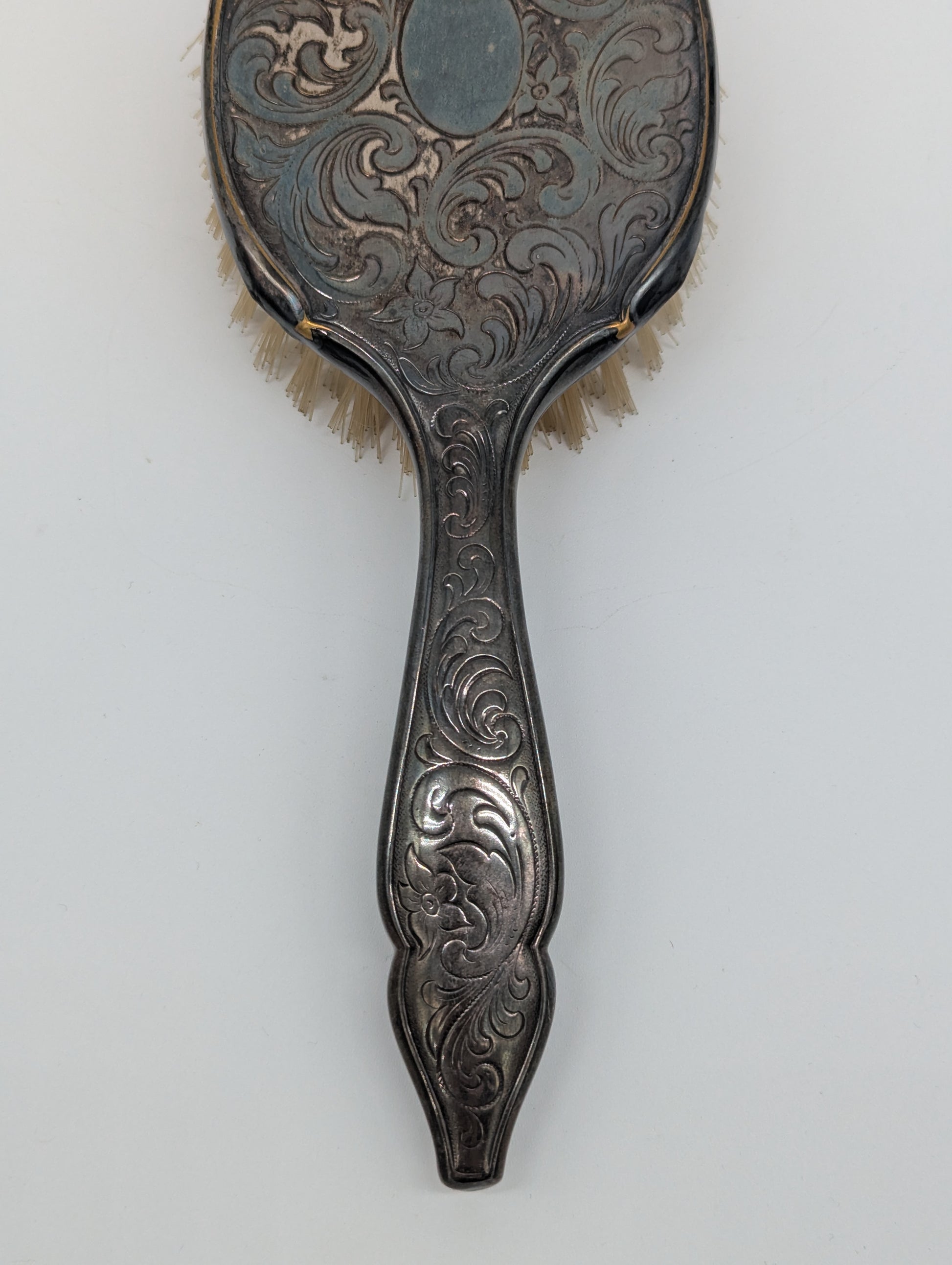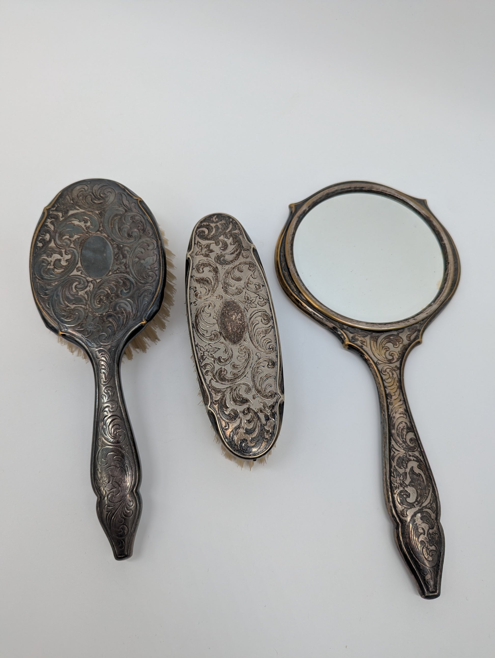 Versilbertes Frisierset 3 teilig Spiegel Handbürsten Antik Vintage Dekoration