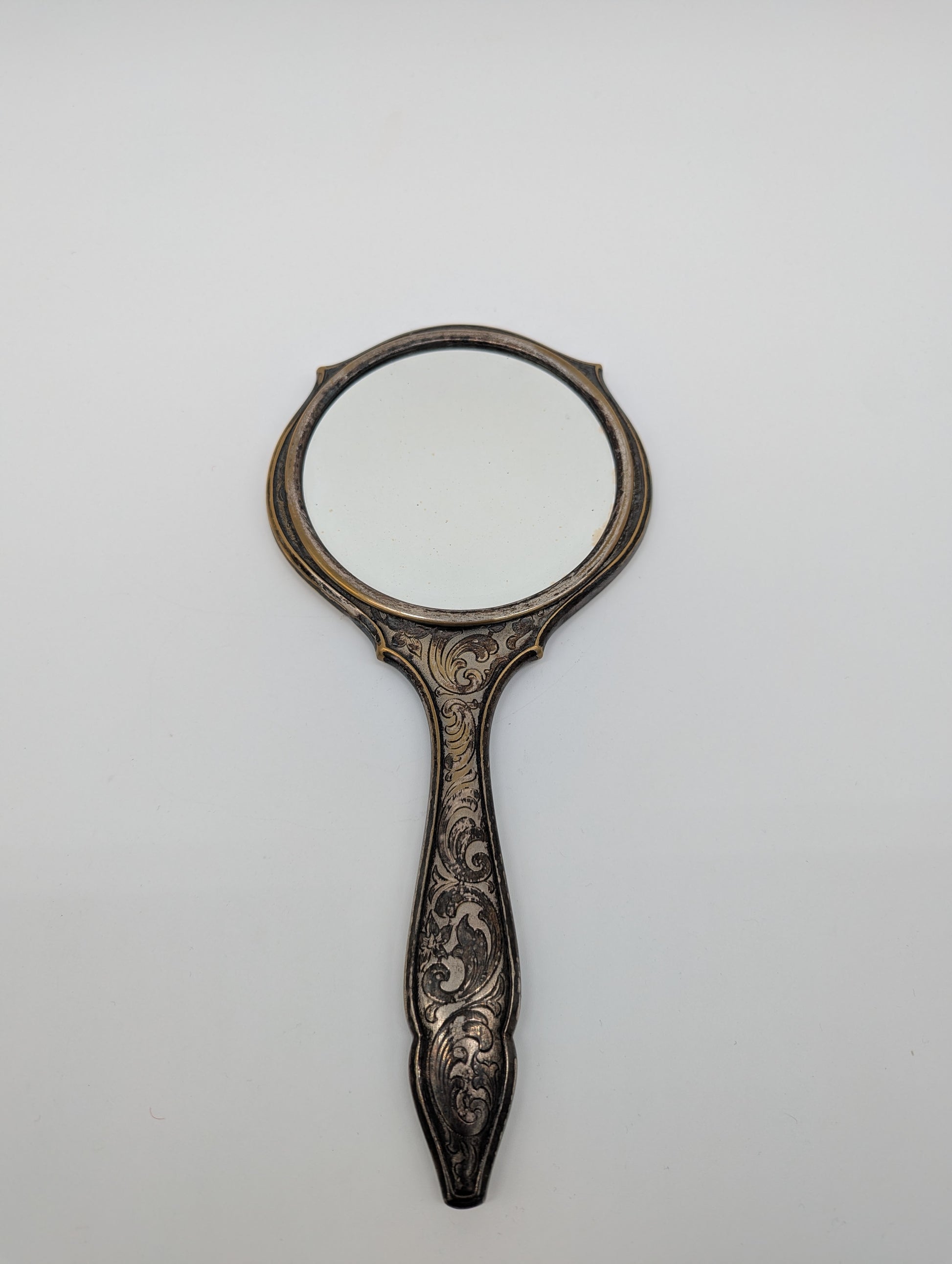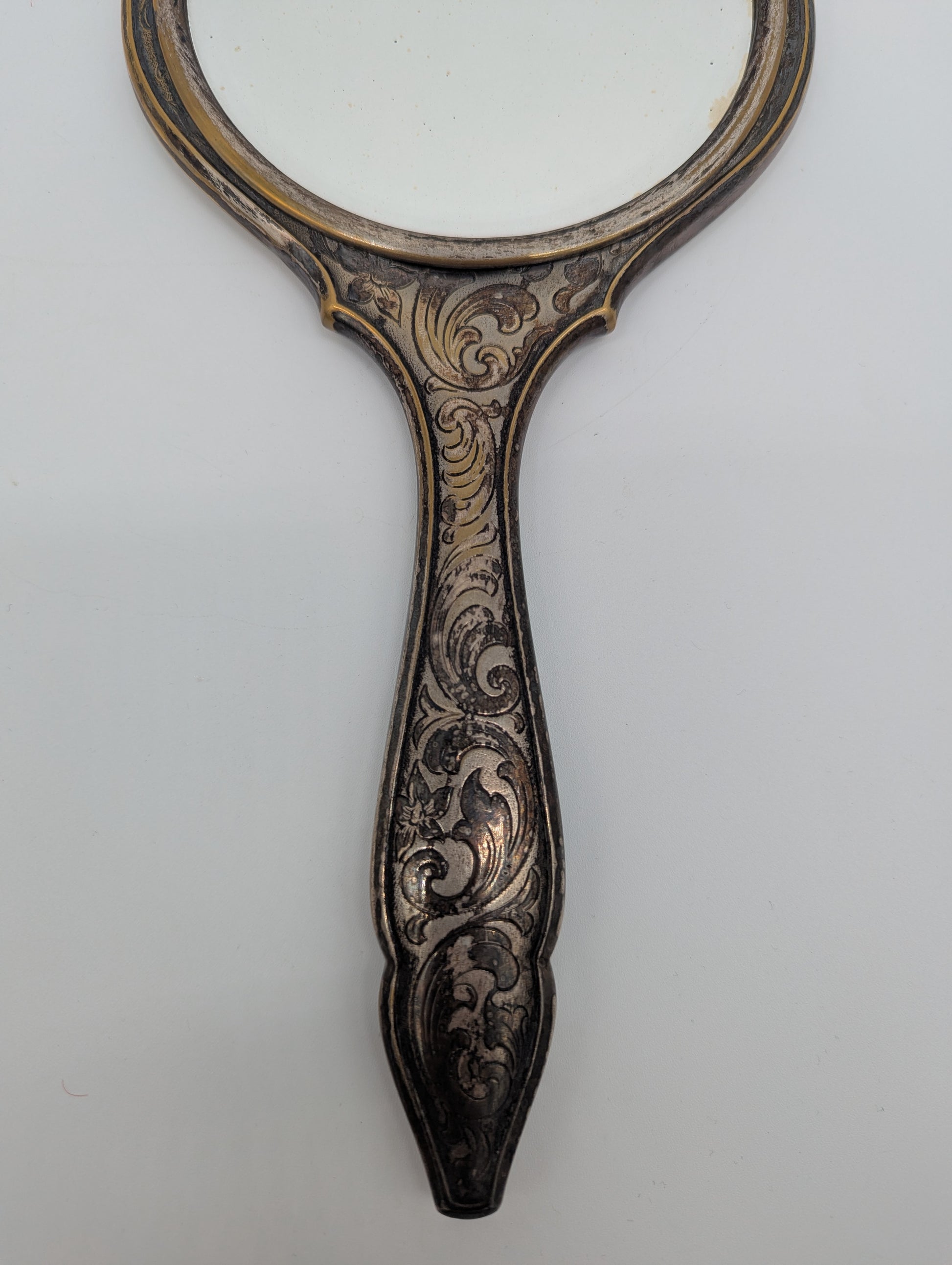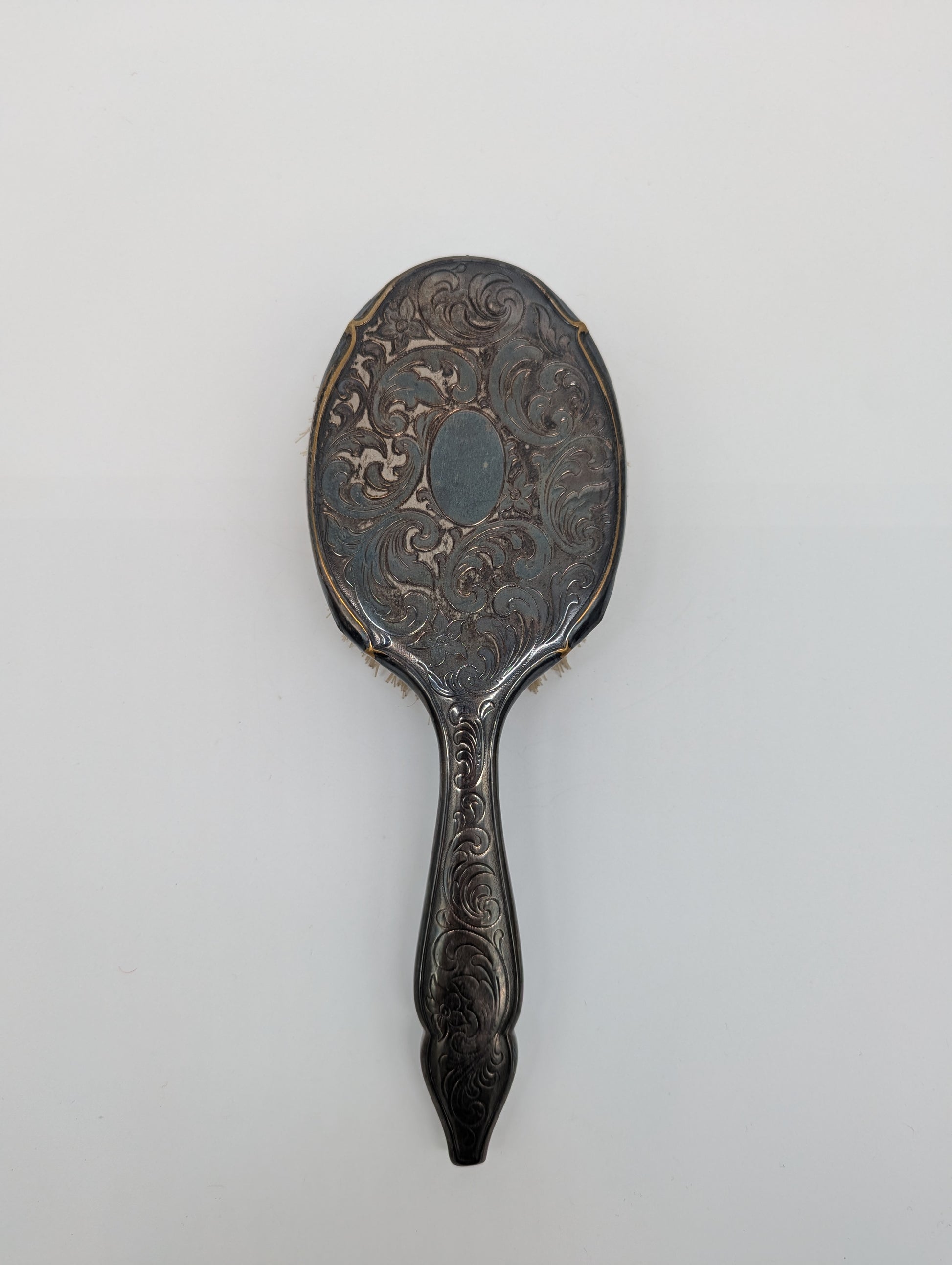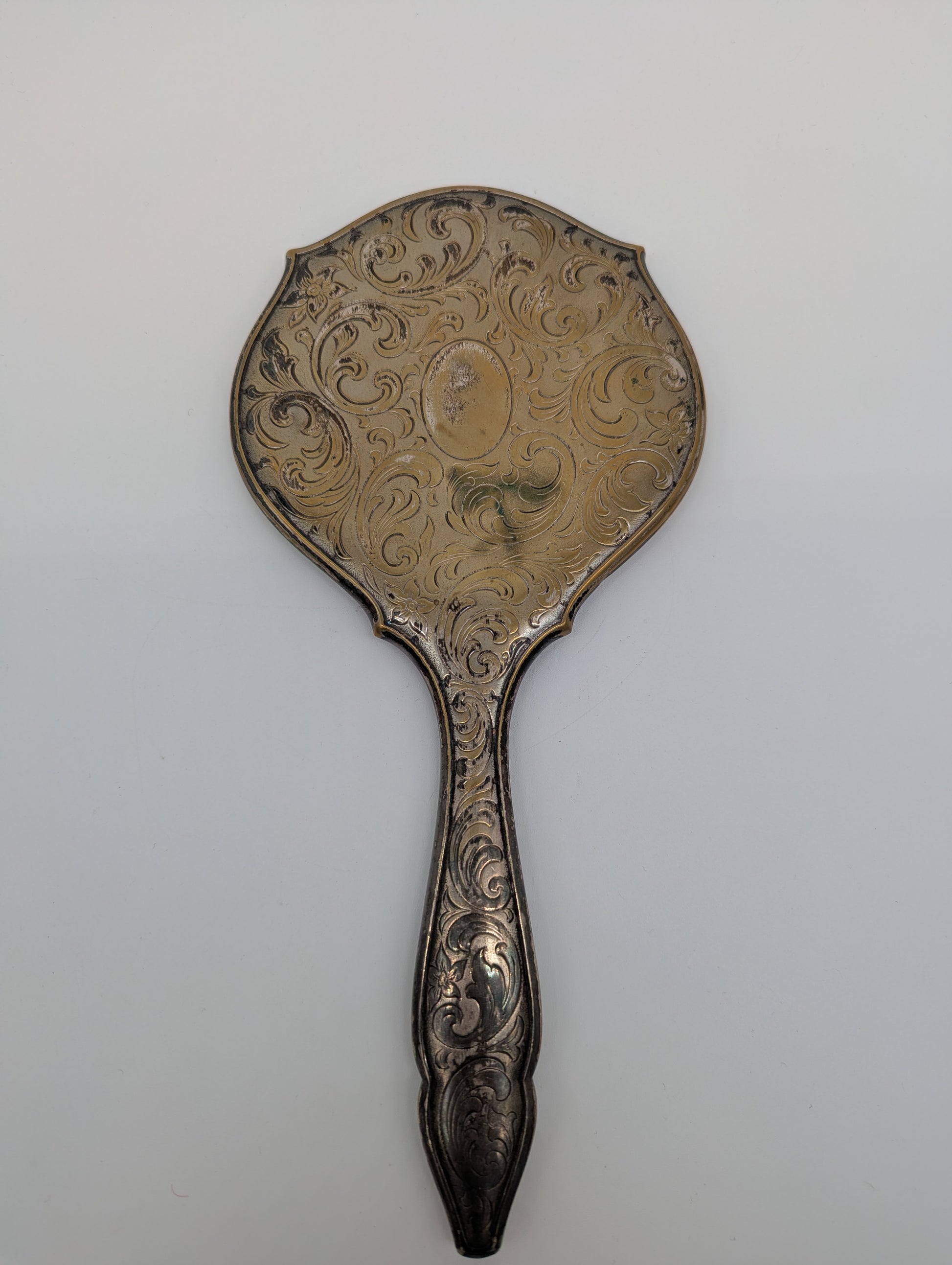 Versilbertes Frisierset 3 teilig Spiegel Handbürsten Antik Vintage Dekoration