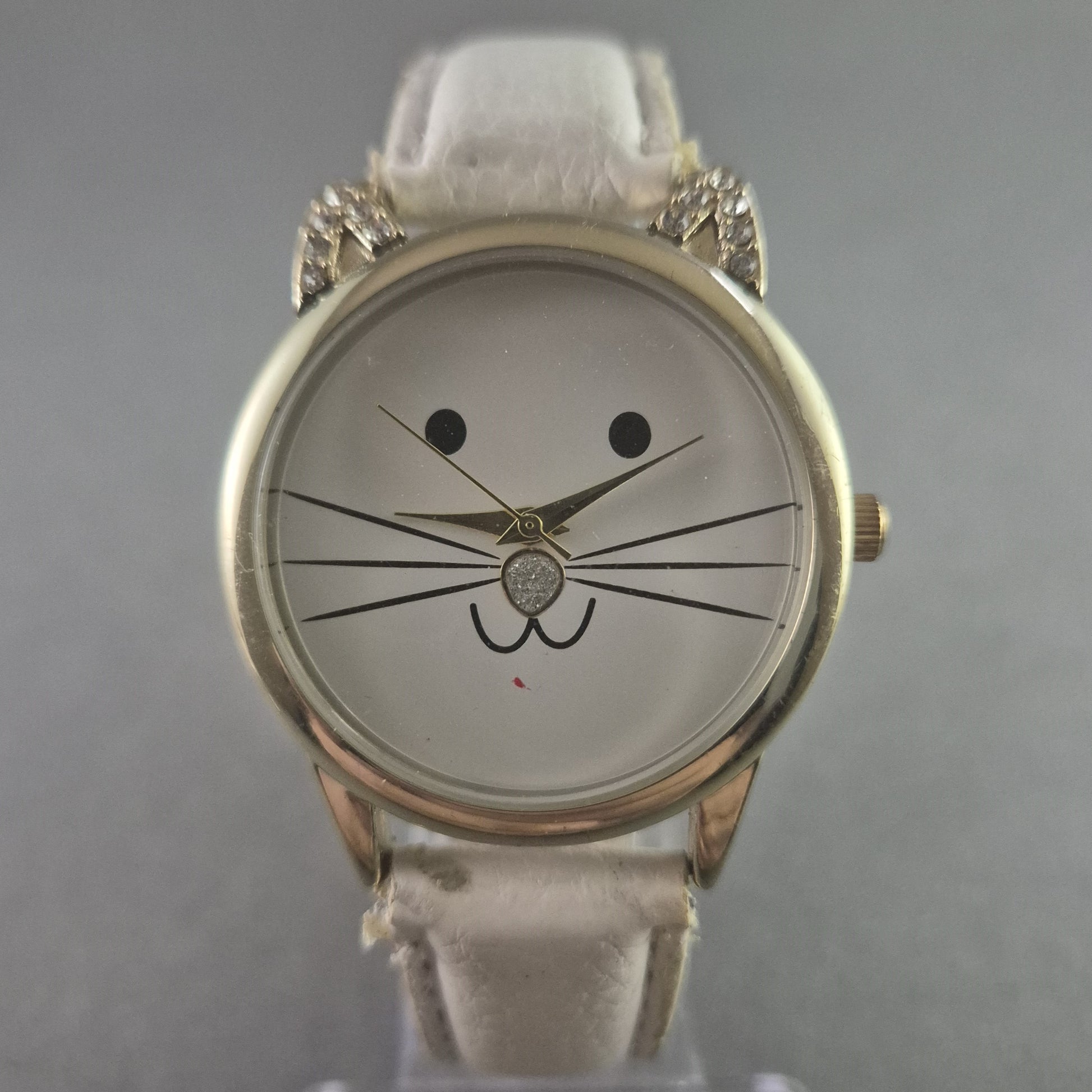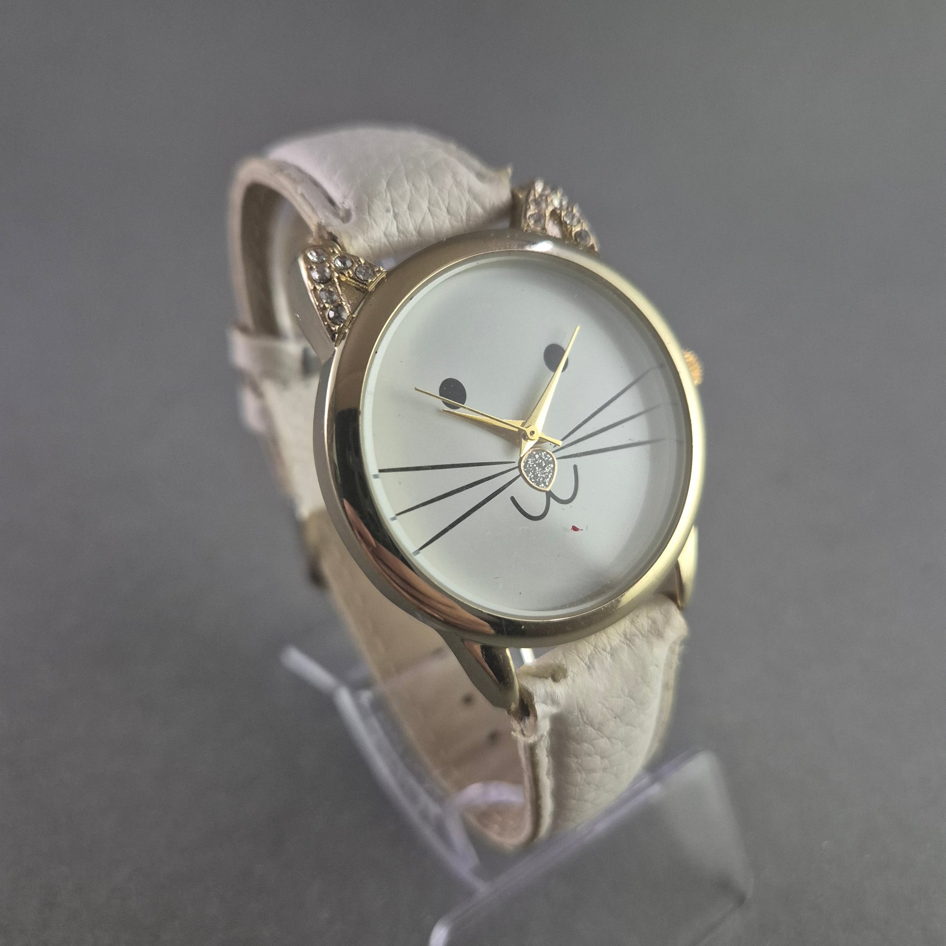 Verspielte Damenarmbanduhr – Katzenmotiv mit Strass-Details