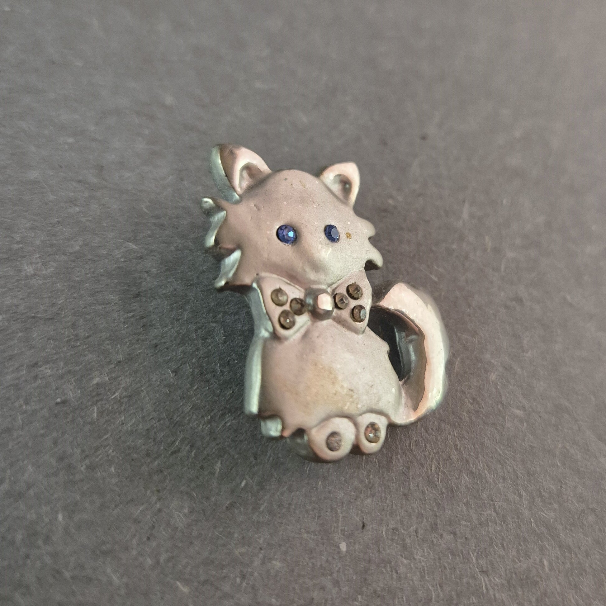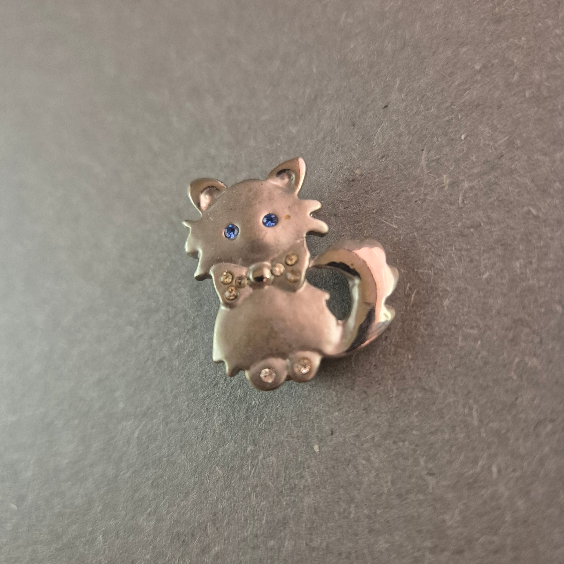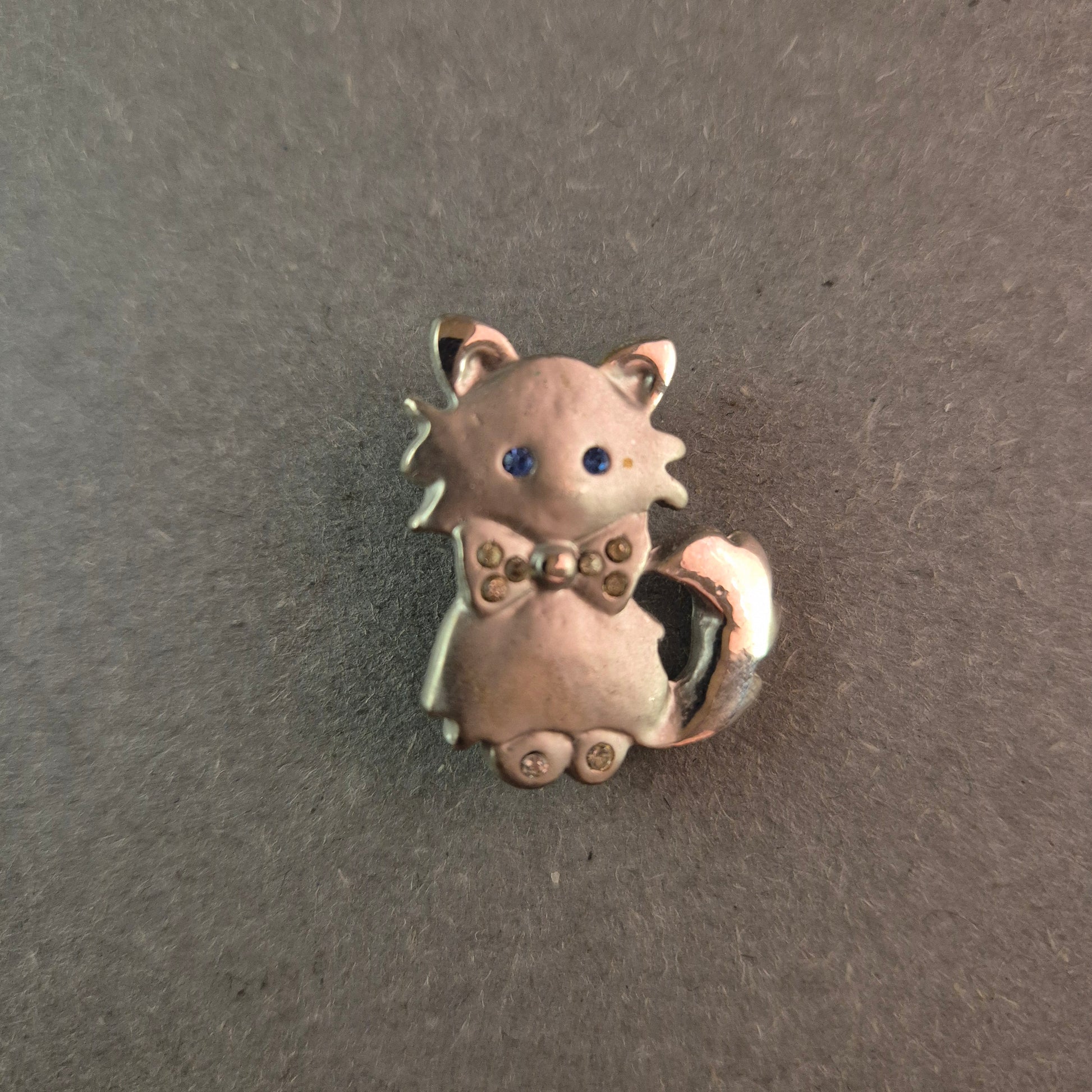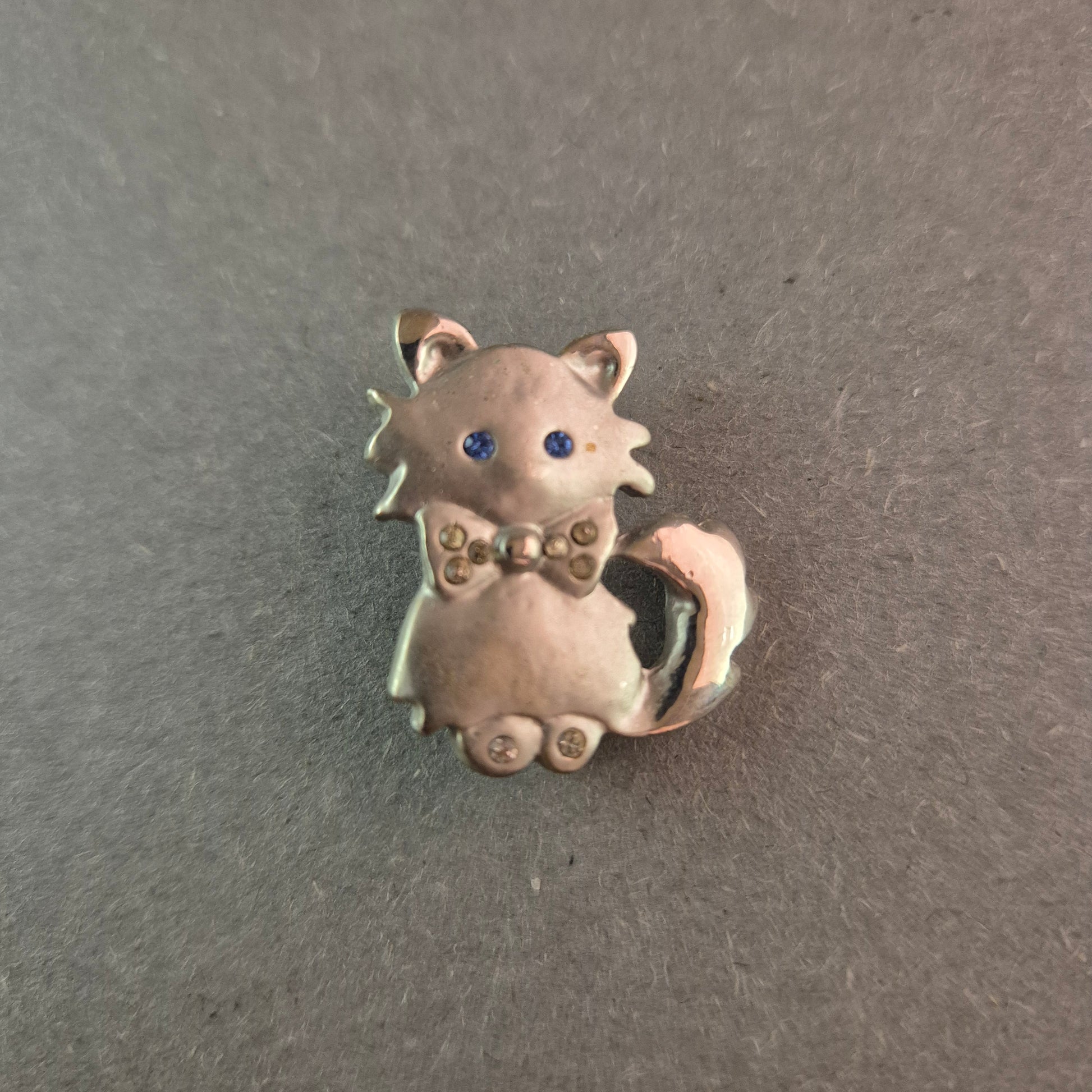 Verspielte Katzen-Anstecknadel – Silberoptik mit funkelnden Details