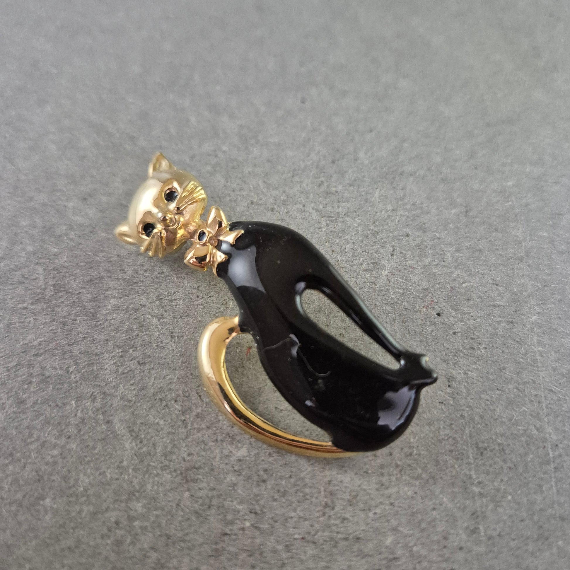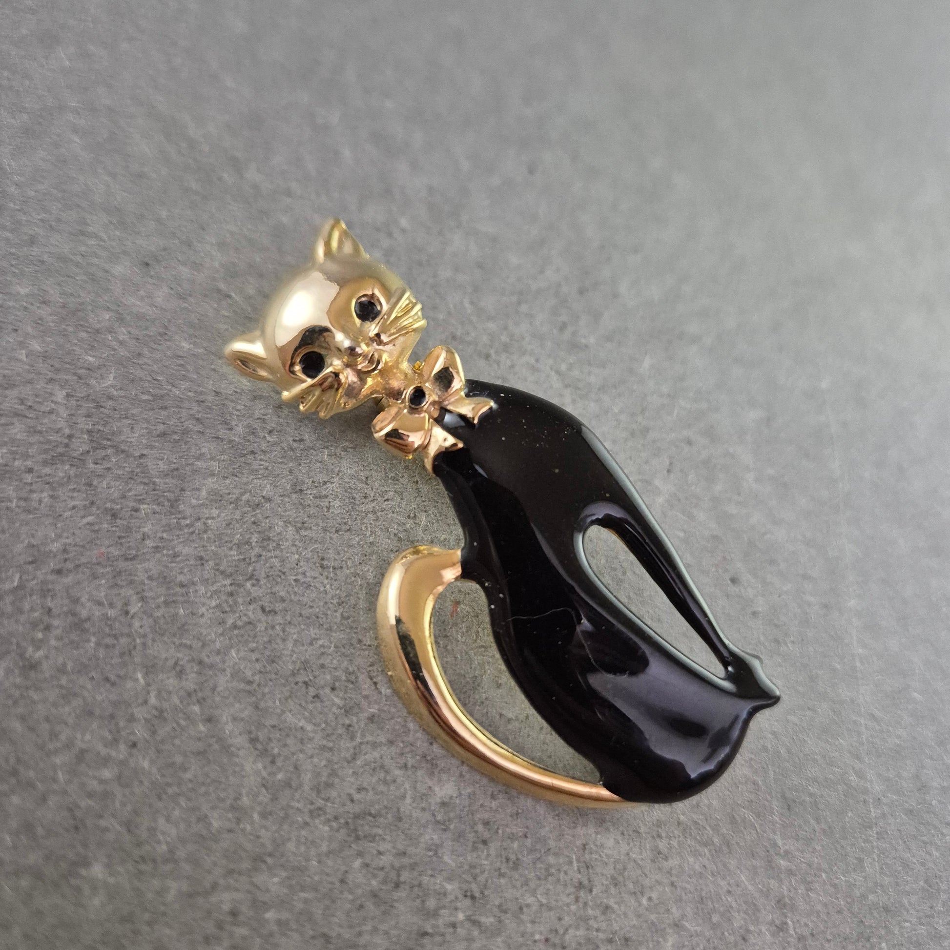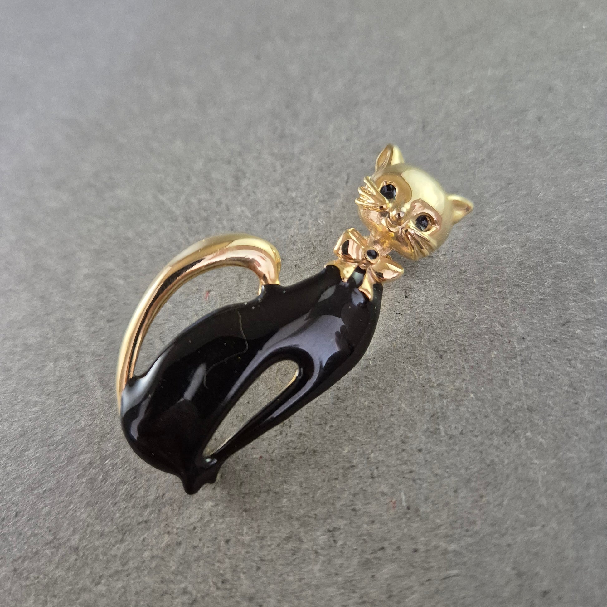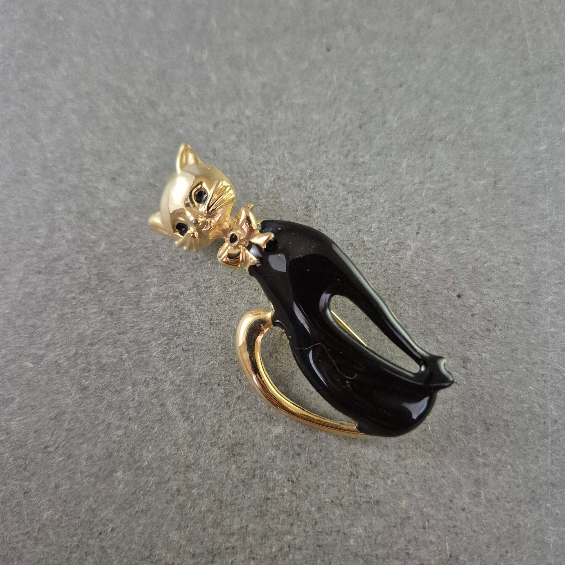 Verspielte Katzen-Brosche mit schwarzer Emaille – Stilvoll & charmant