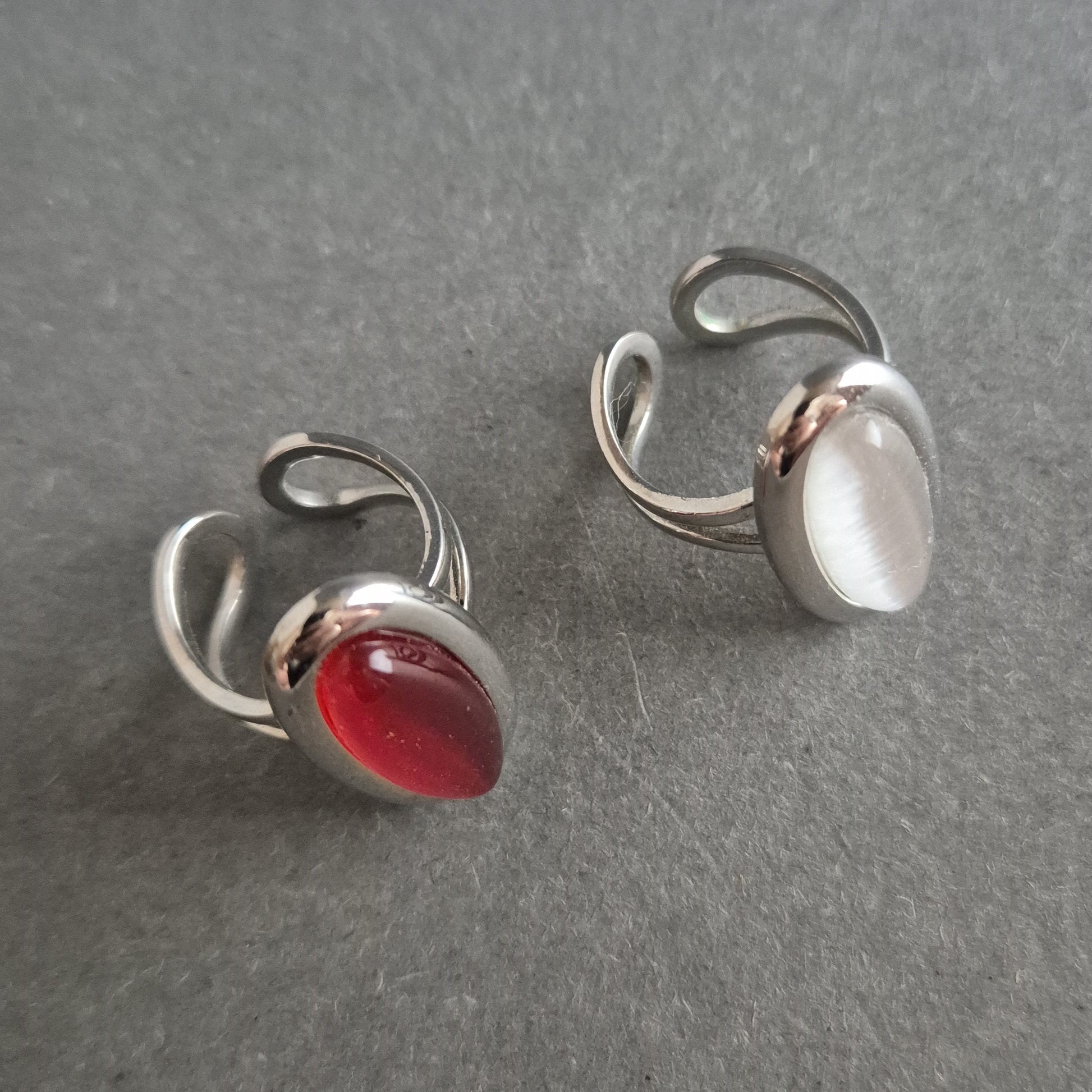 Verstellbare Ringe mit Katzenaugeneffekt – Zweier-Set in Rot & Weiß