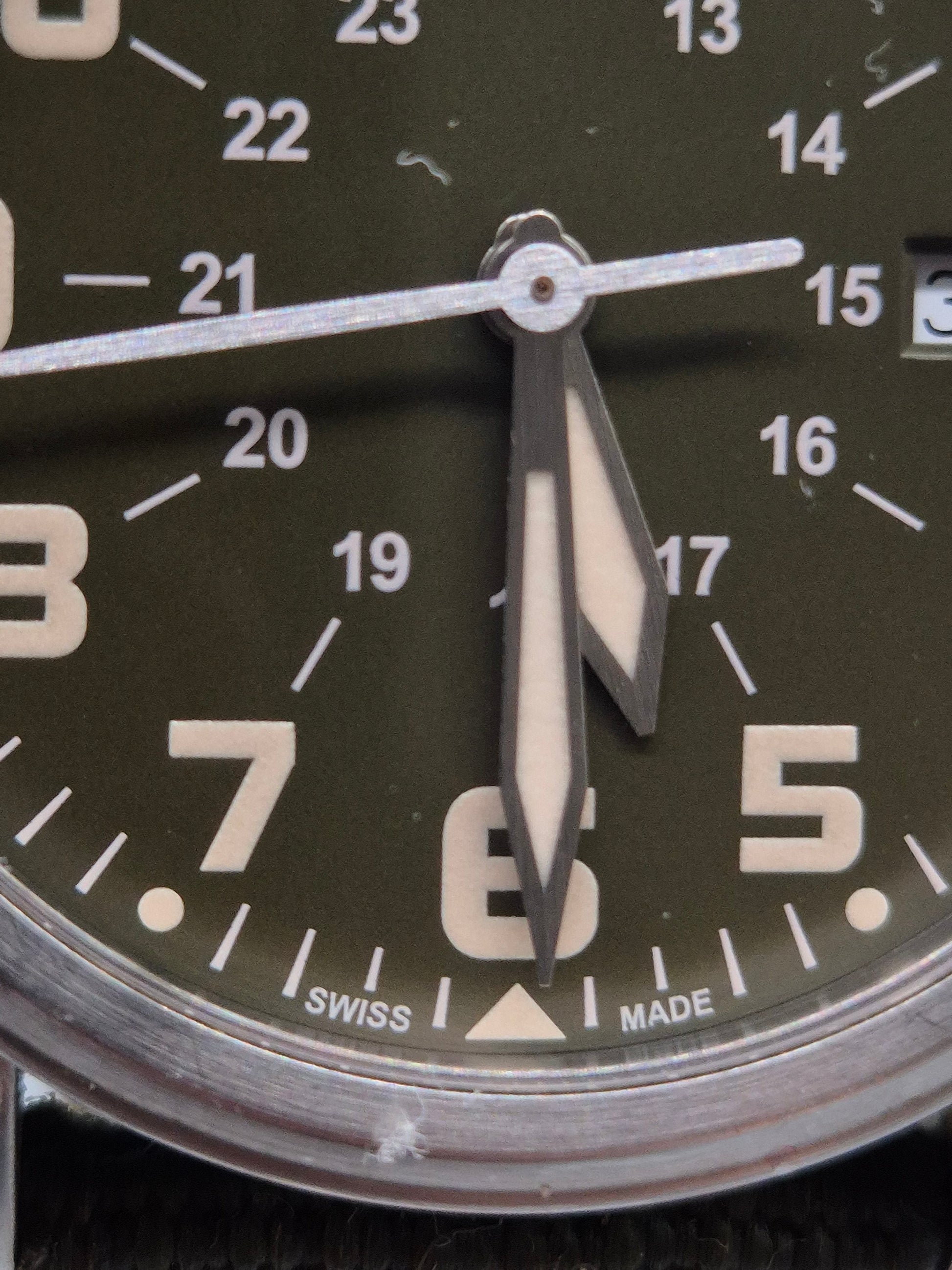 – Klare 24‑Stunden-Skala – ideal für militärischen Look