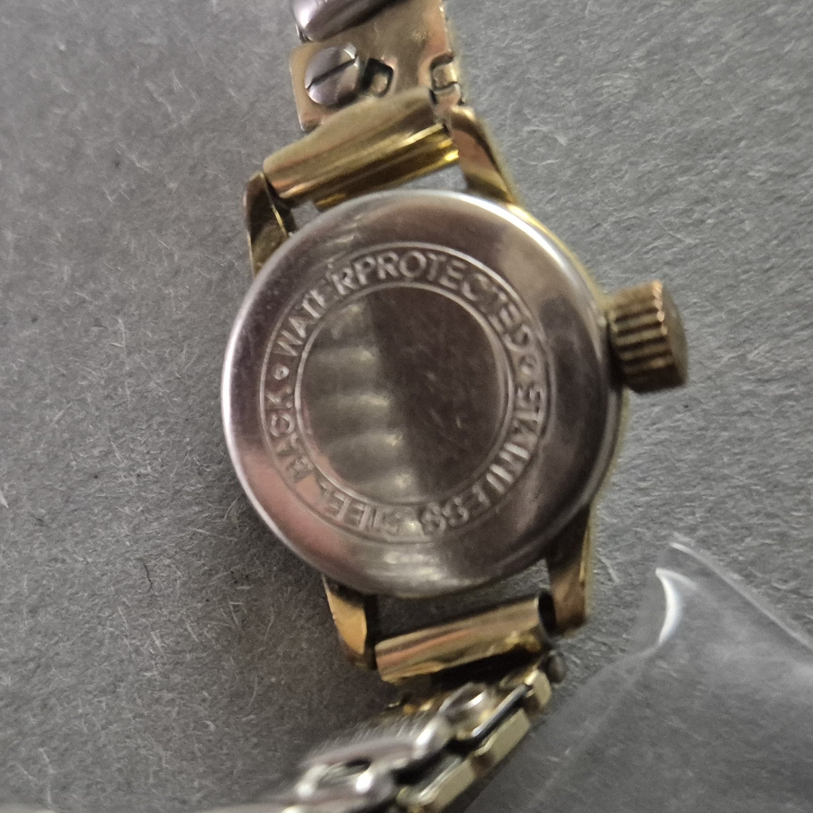 • Material: Edelstahl (Rückseite), vergoldetes Gehäuse & Armband