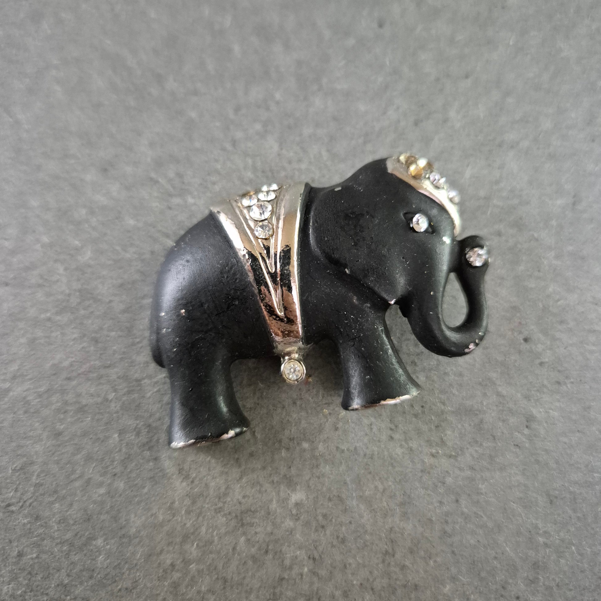 Vintage Brosche Elefant mit Strass – Schwarzer Look mit Glanzakzenten