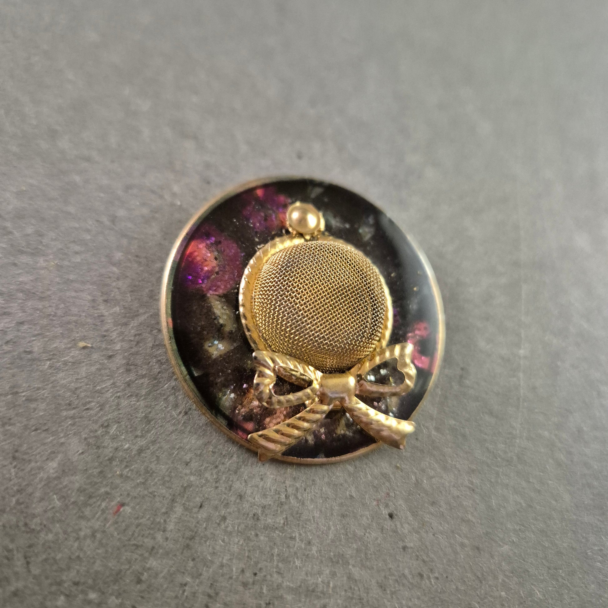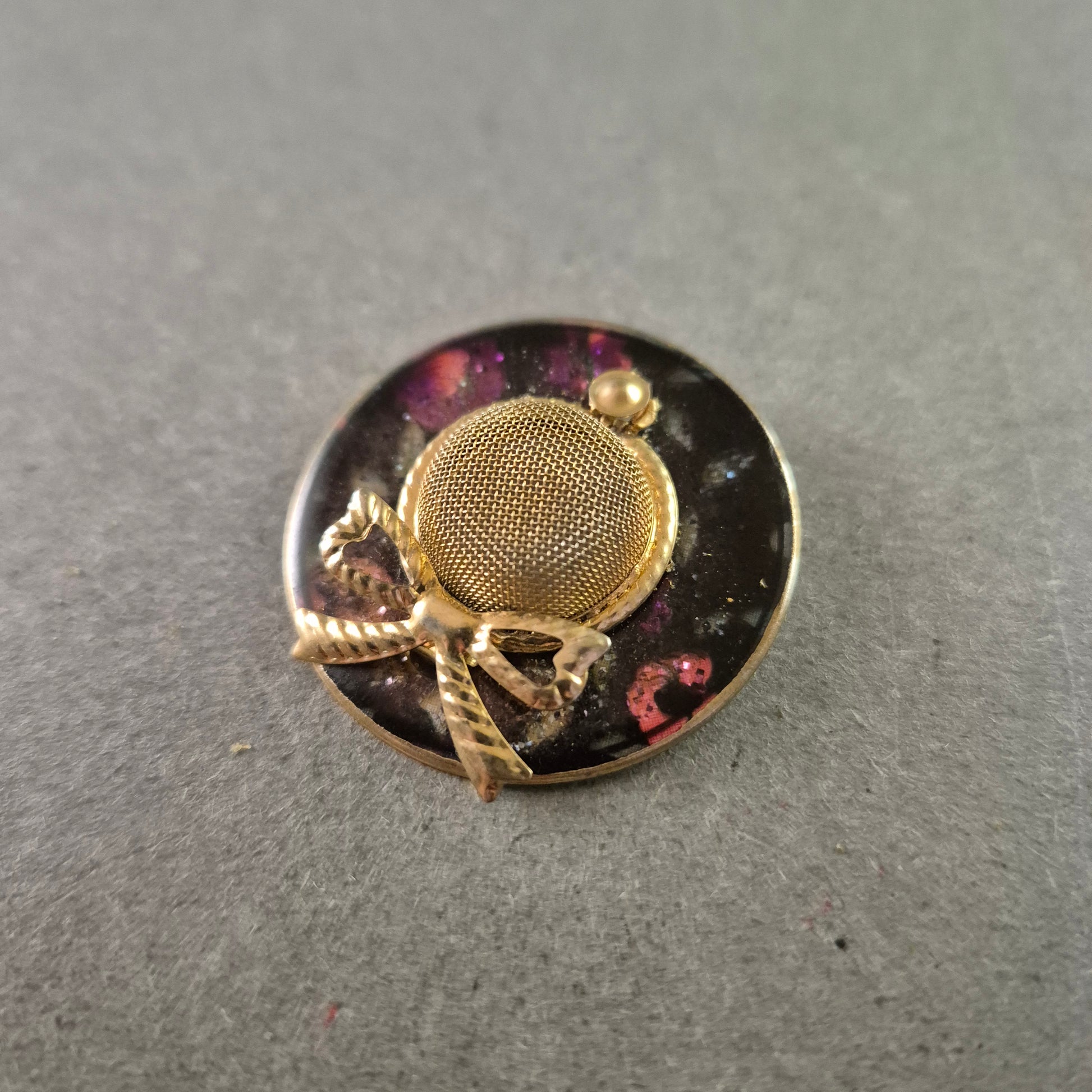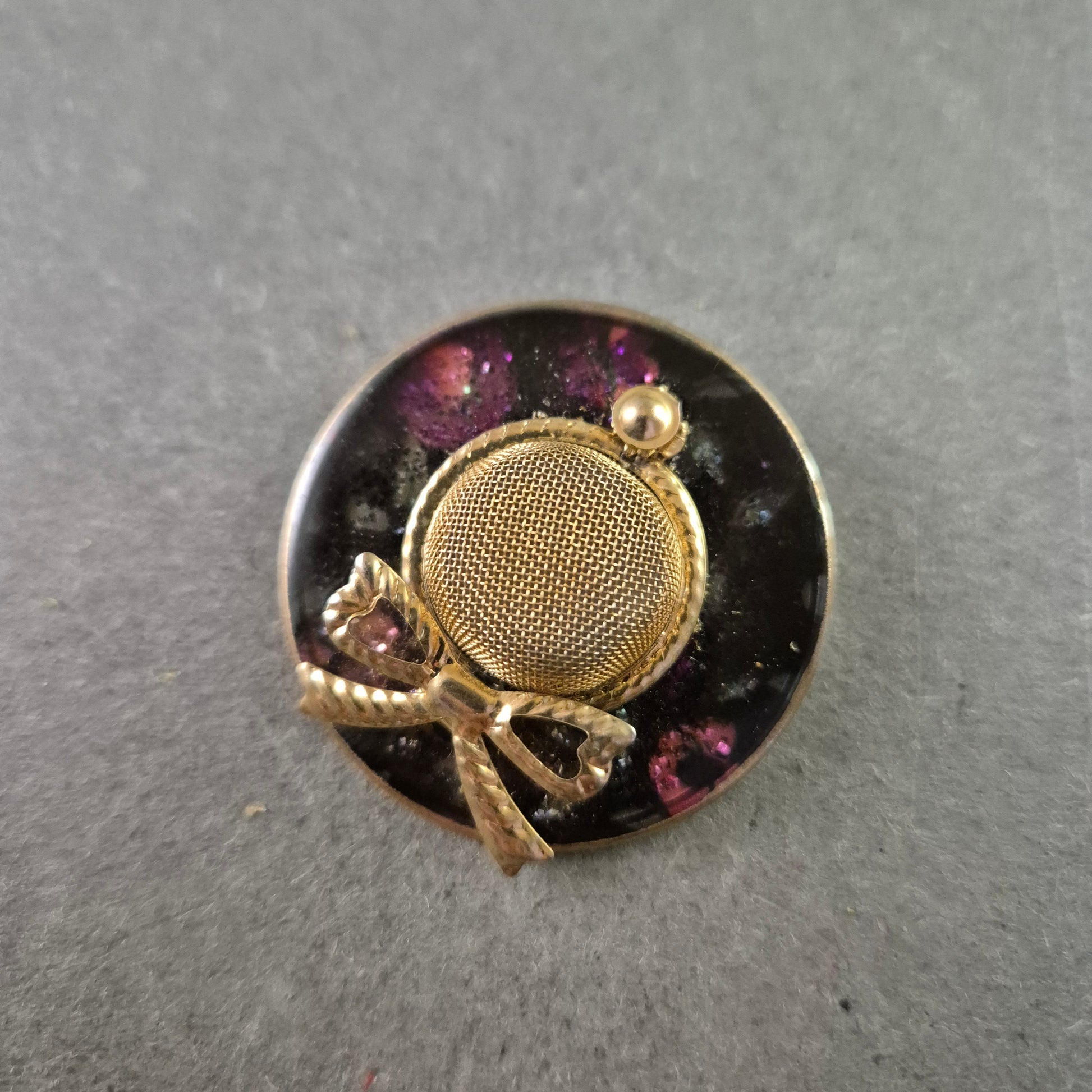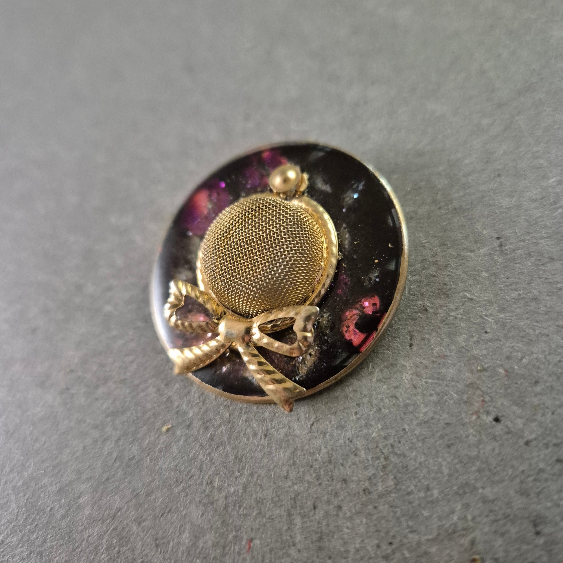 Vintage Brosche im Hut-Design – Rundes Modell mit Schleife und Netzstruktur