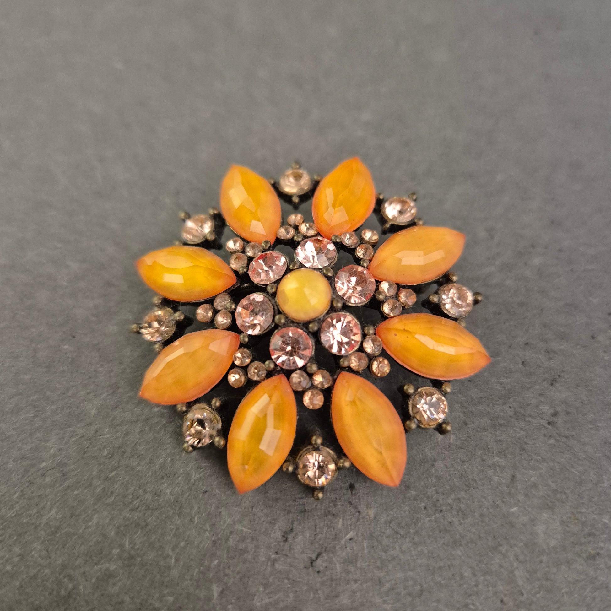 Vintage Brosche im Sonnenblumen-Stil – Strass & Glaskristalle