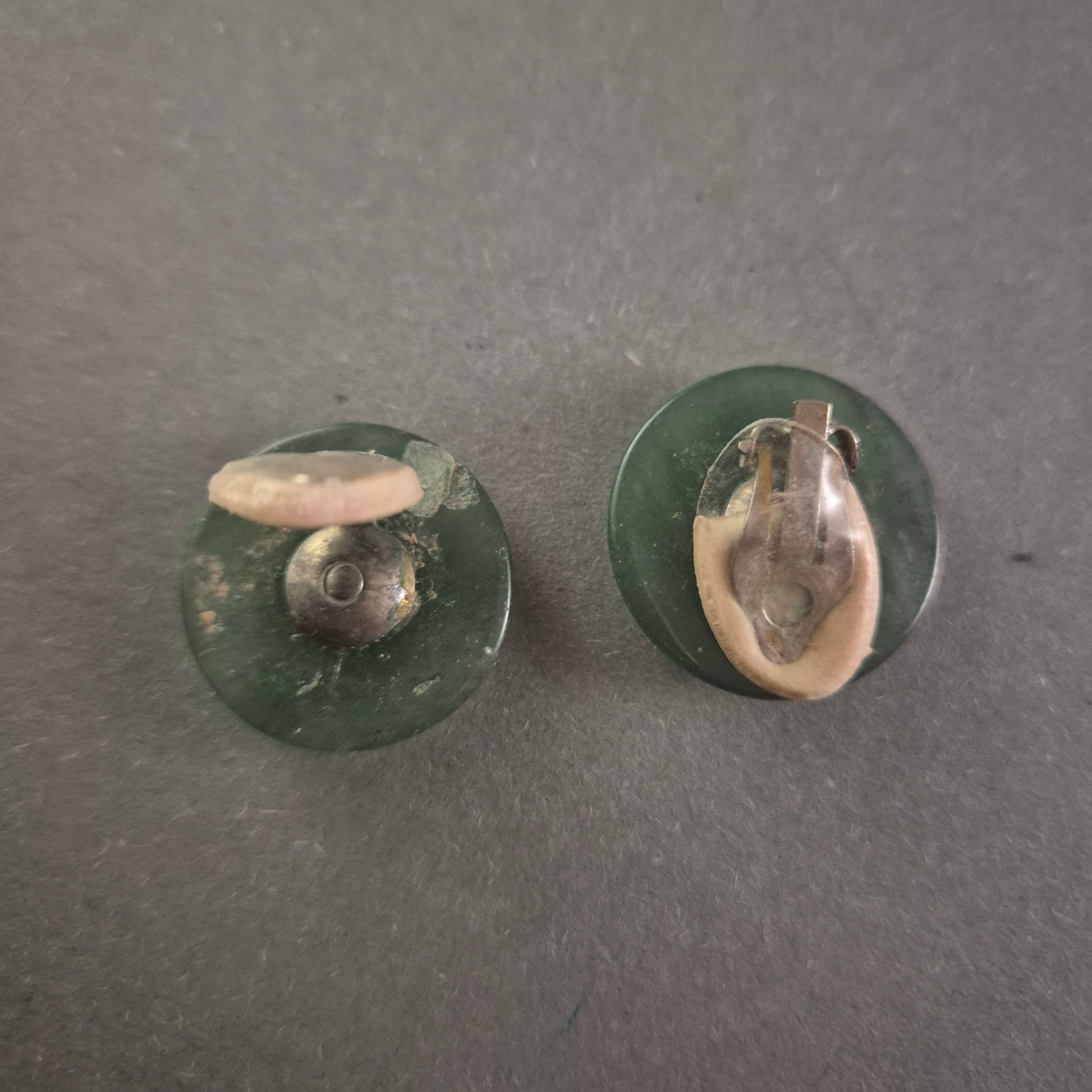 Vintage Clip-Ohrringe aus grünem Aventurin – Eleganter Naturstein-Look