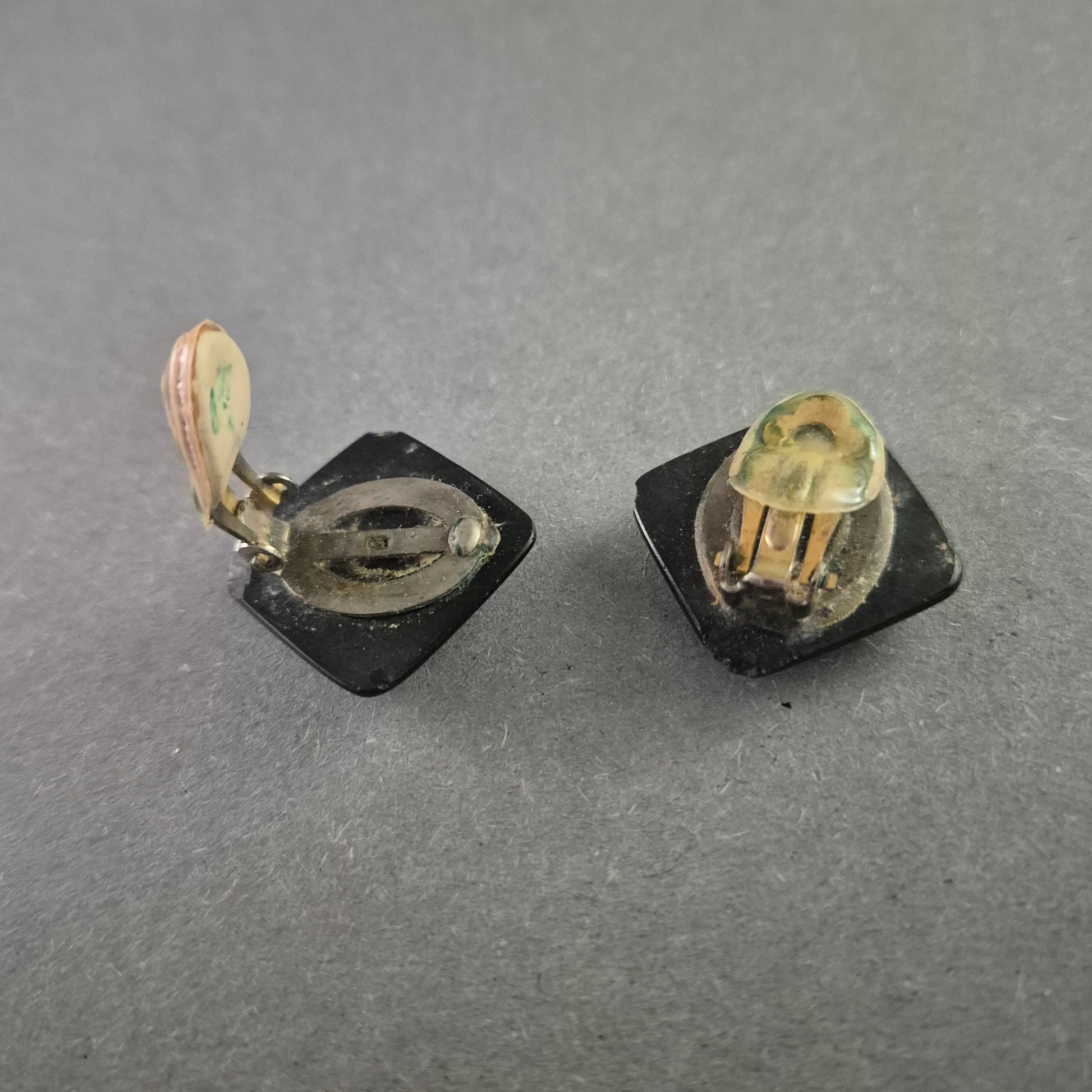 Diese markanten Vintage-Clip-Ohrringe setzen ein stilvolles Statement mit ihrer eckigen Form und dem tiefblauen Stein im Lapislazuli-Look. Die schwarze Einfassung verleiht dem Design zusätzliche Tiefe und Kontrast. Ideal für Liebhaberinnen klassischer Accessoires im Retro-Stil.