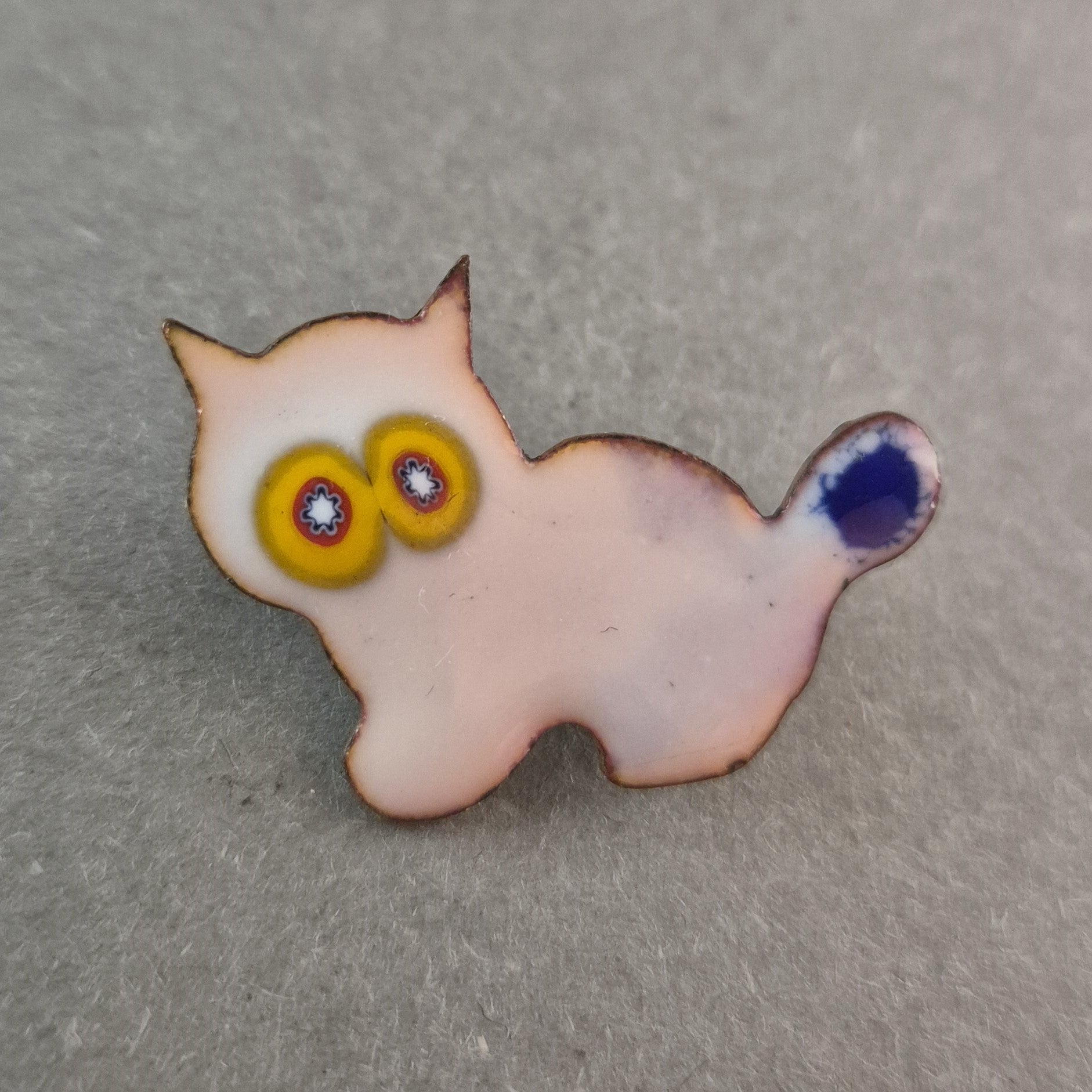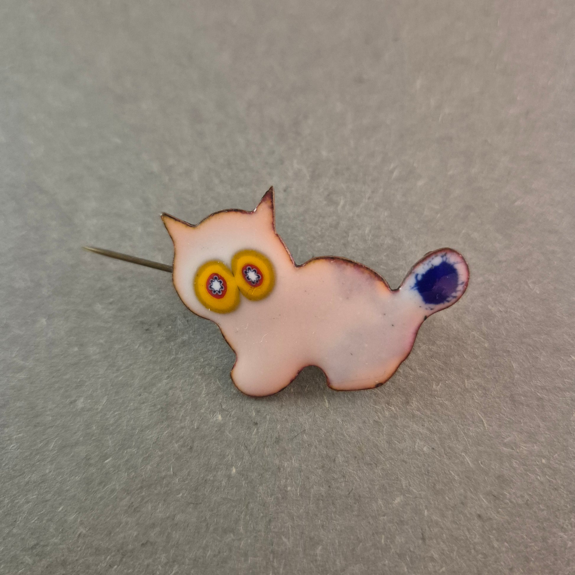 Vintage Emaille-Brosche "Katzenmotiv"