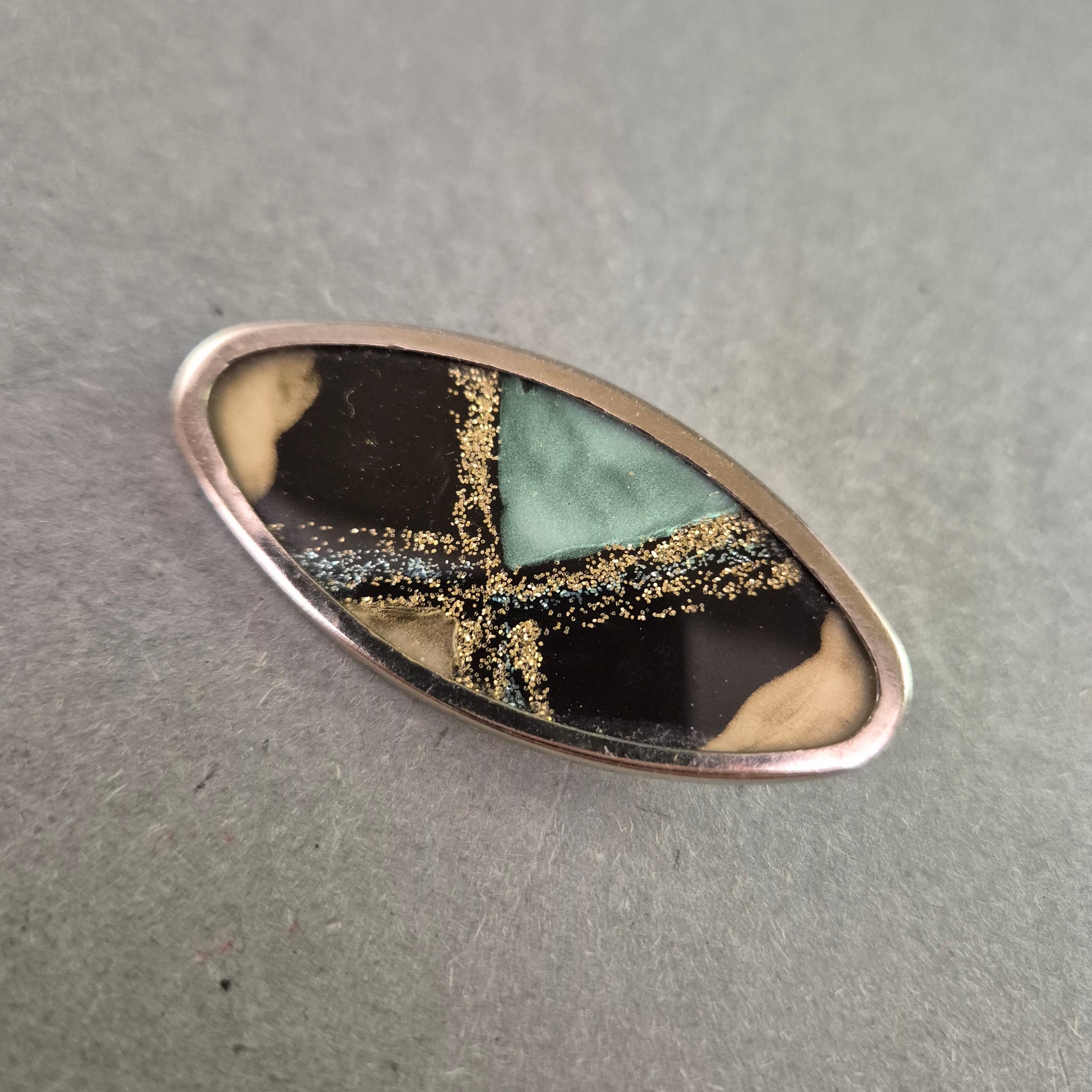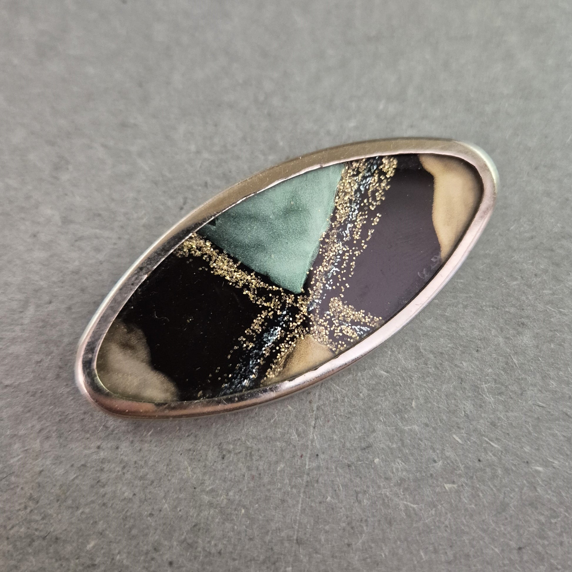 Vintage Emaille-Brosche – Ovales Design mit abstrakter Kunstoptik