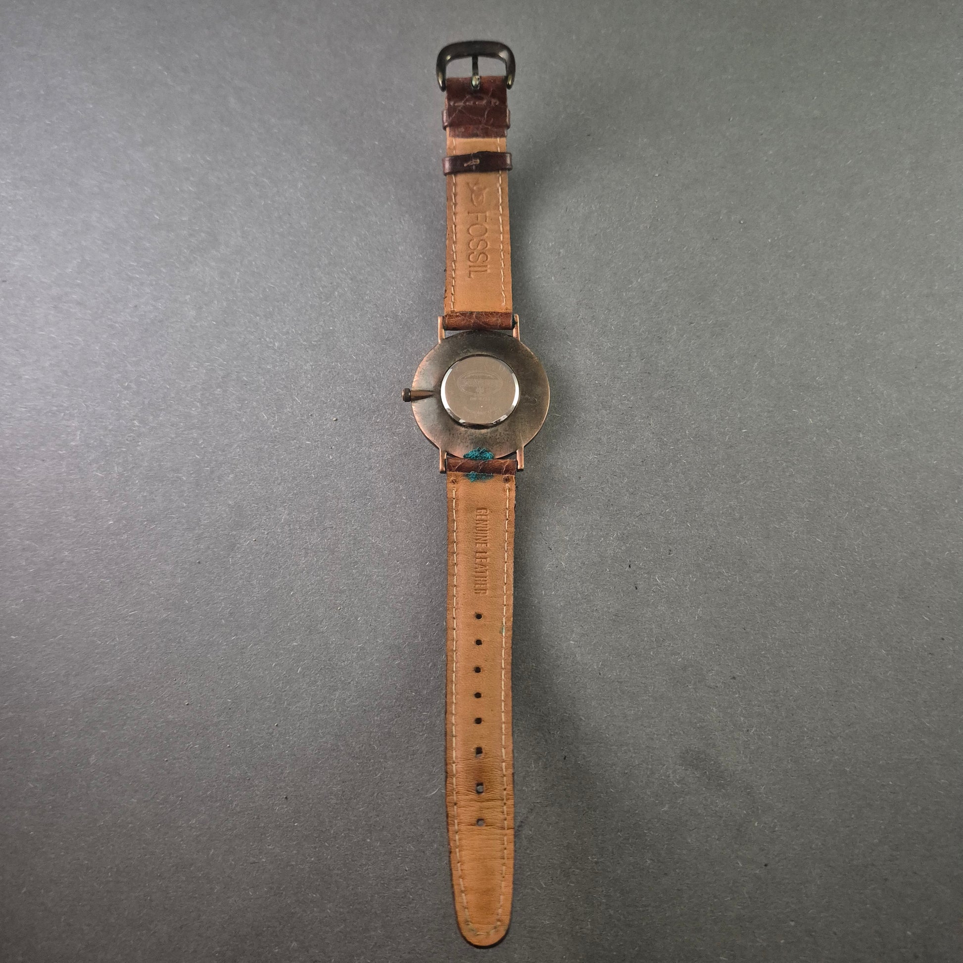 Vintage Fossil Herrenarmbanduhr – Azteken-Design mit Lederarmband