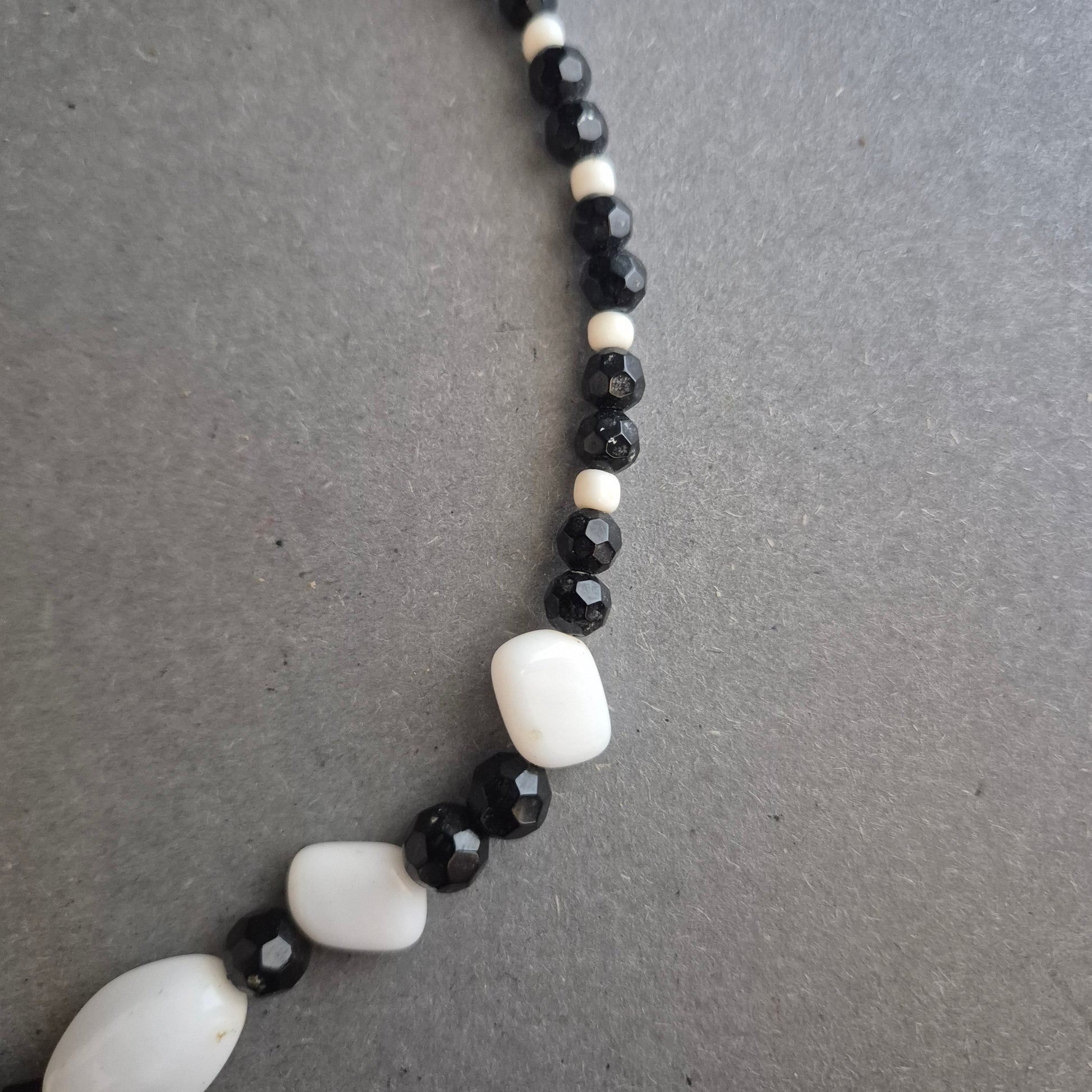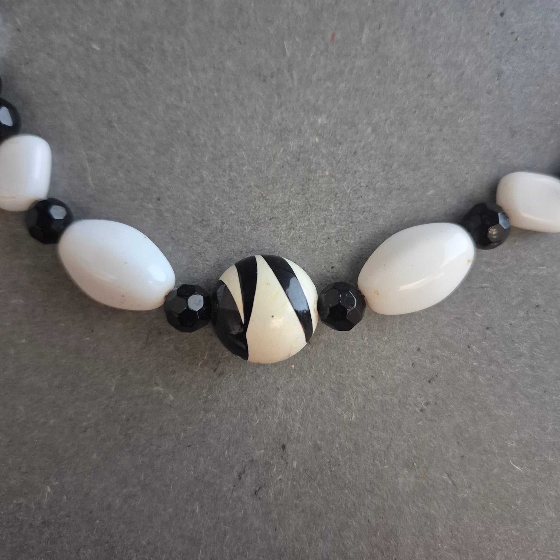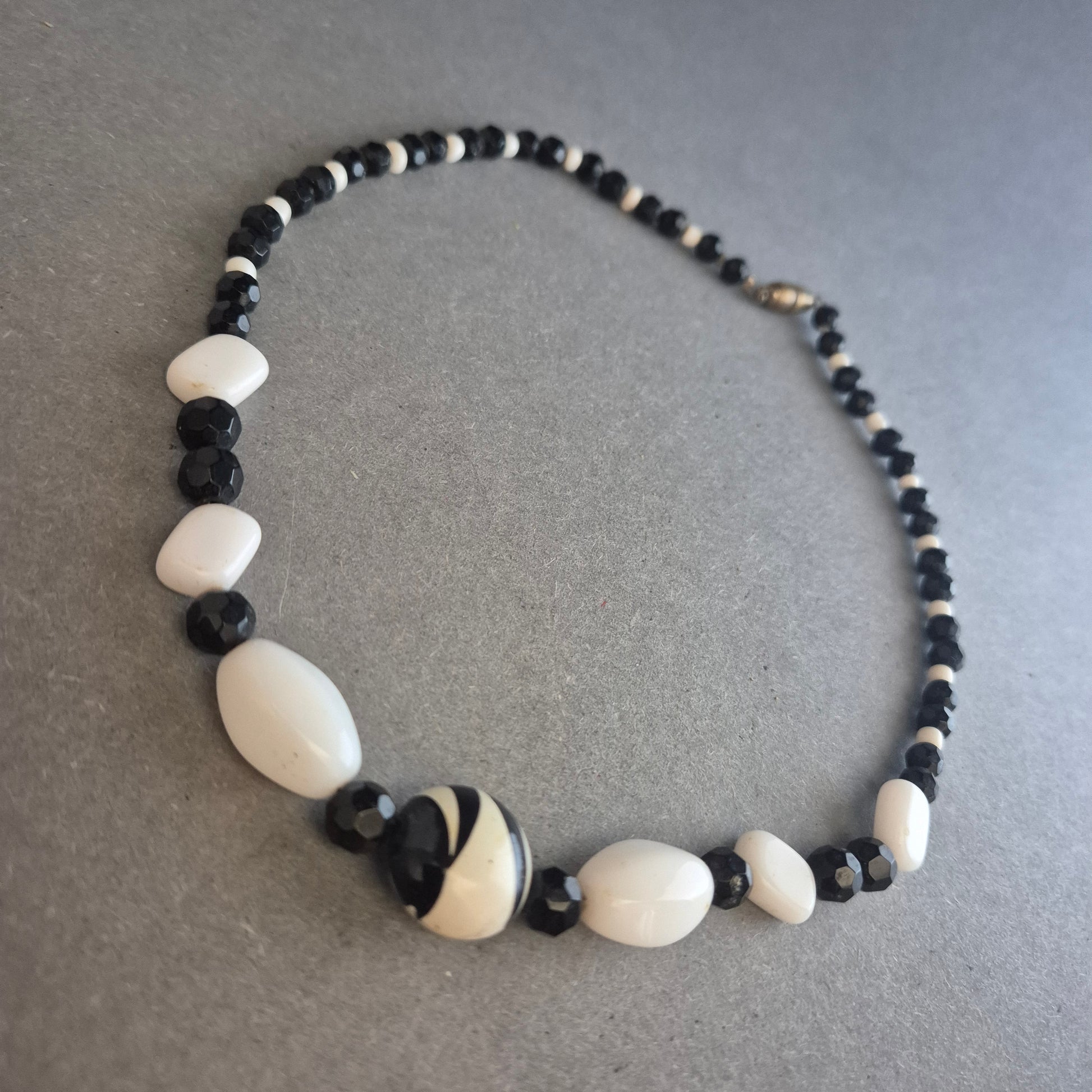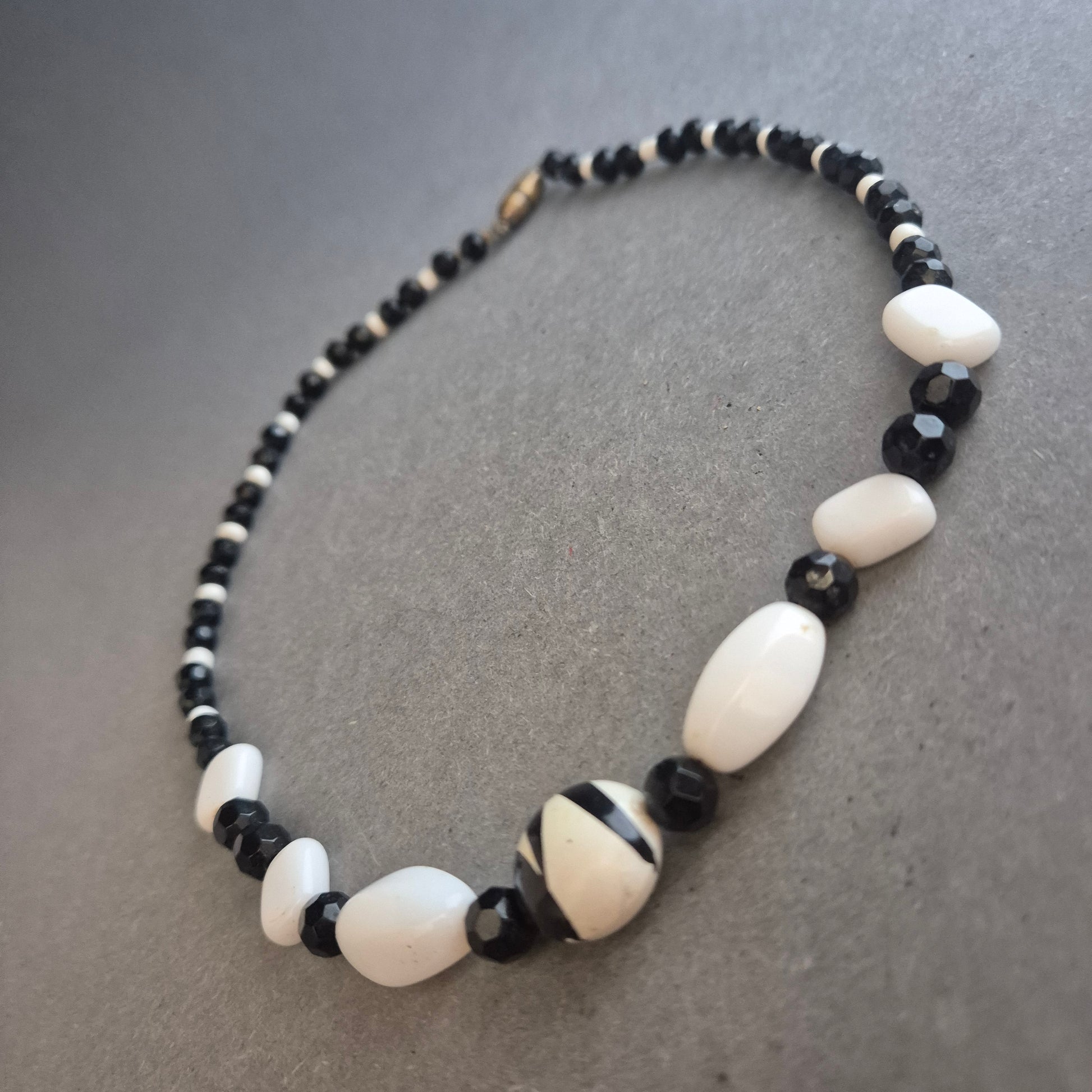 Vintage Glasperlenkette in Schwarz-Weiß – Klassisches Kontrastdesign