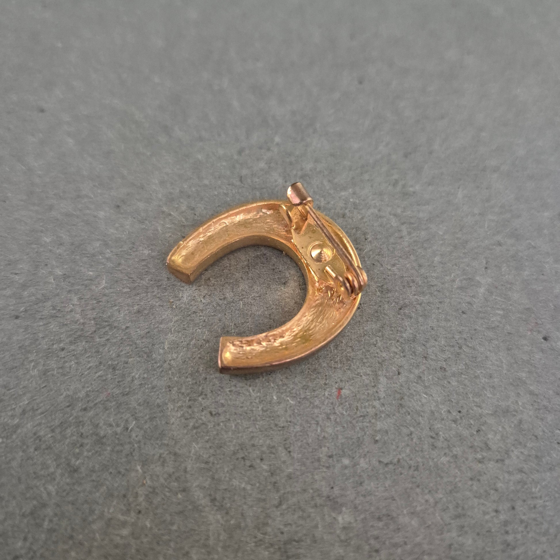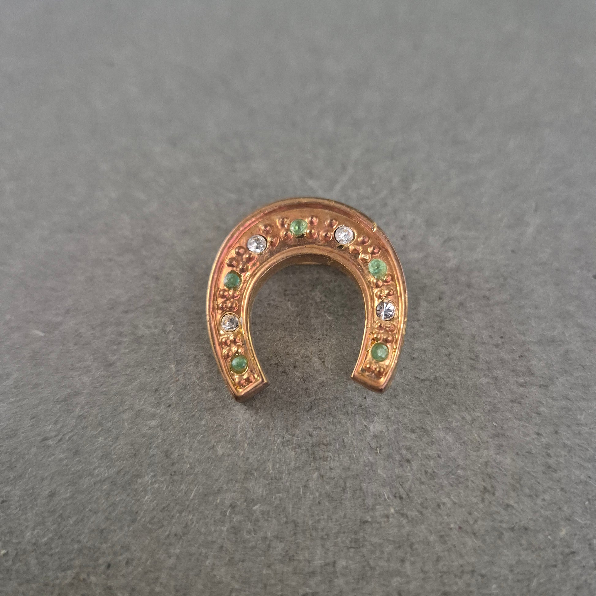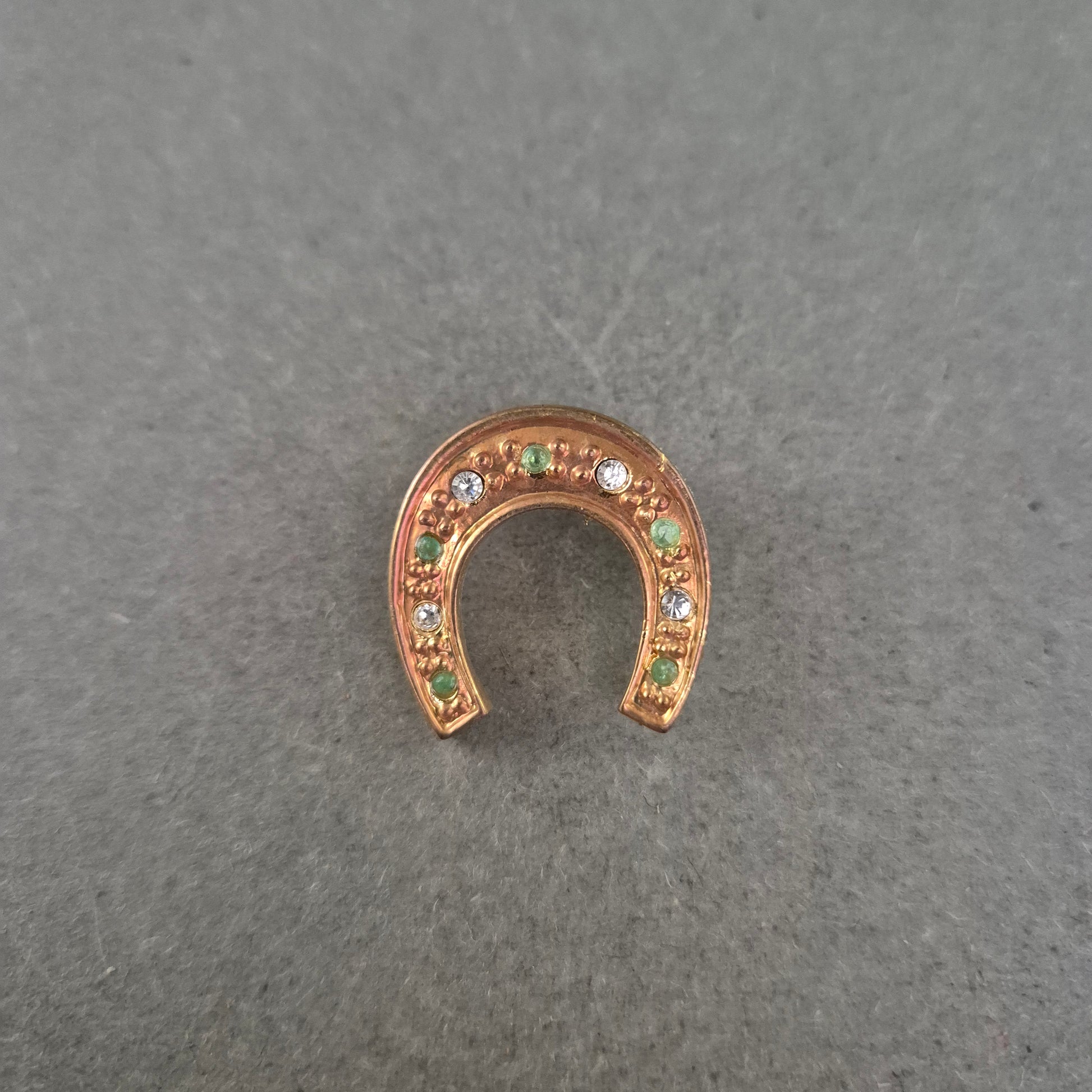 Vintage Glücksbrosche in Hufeisenform mit Strass und grünen Akzenten