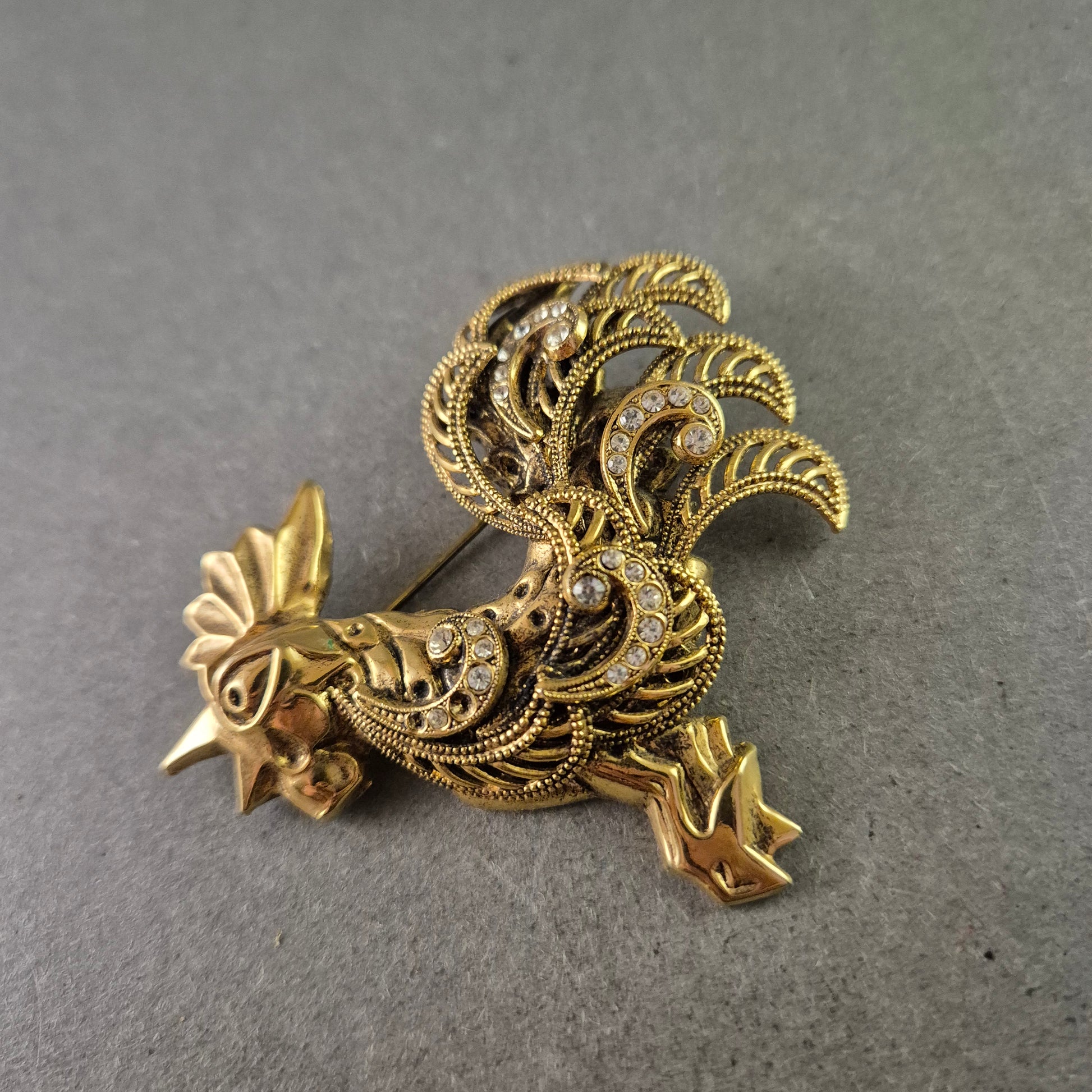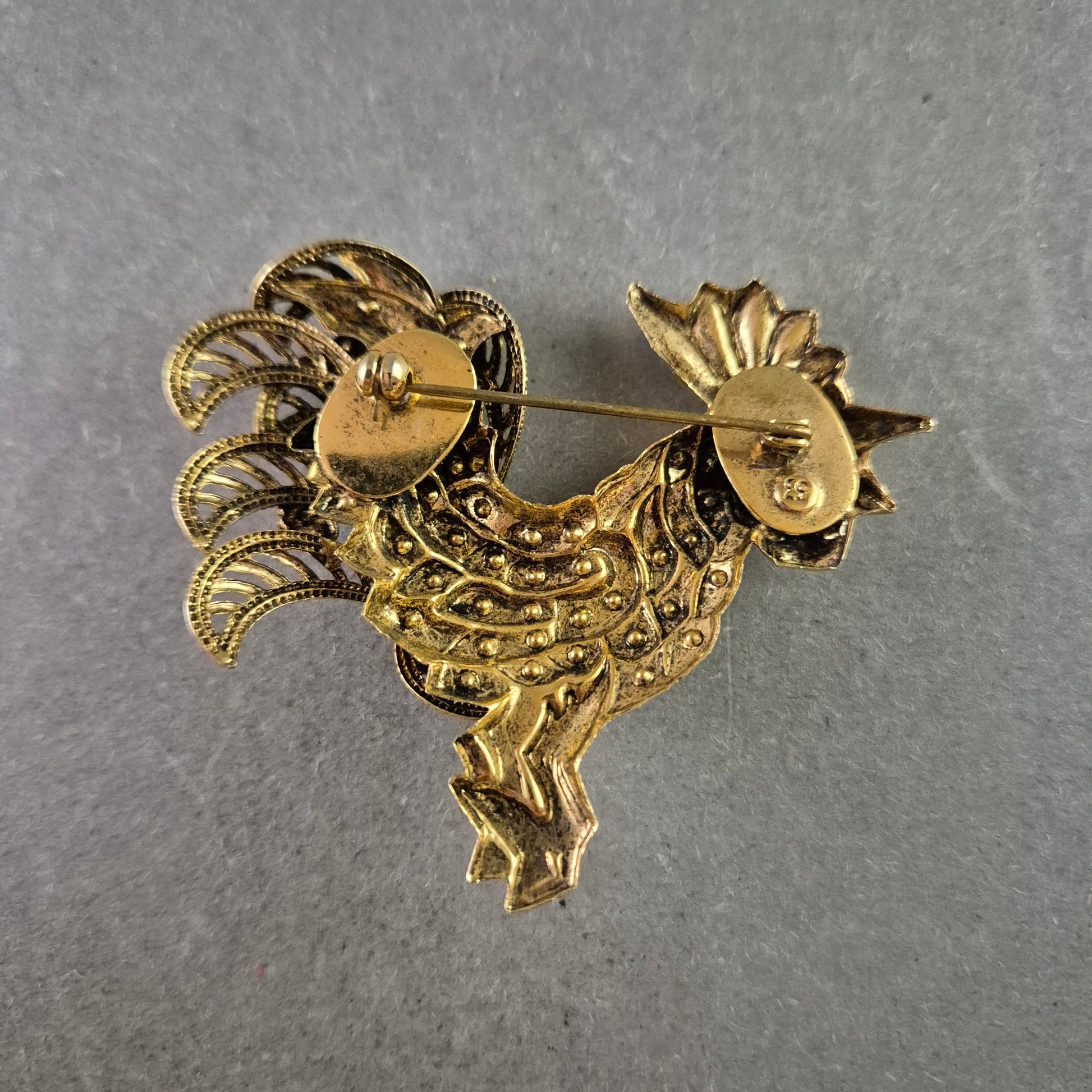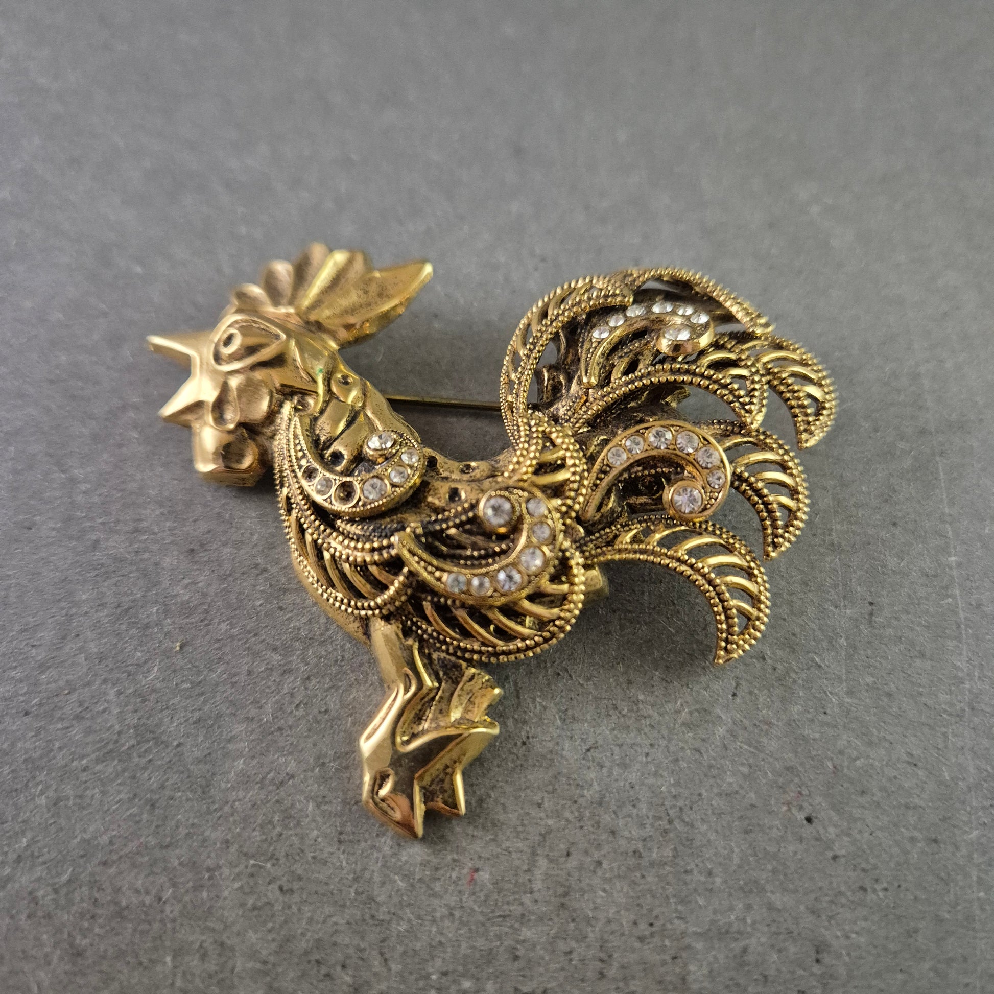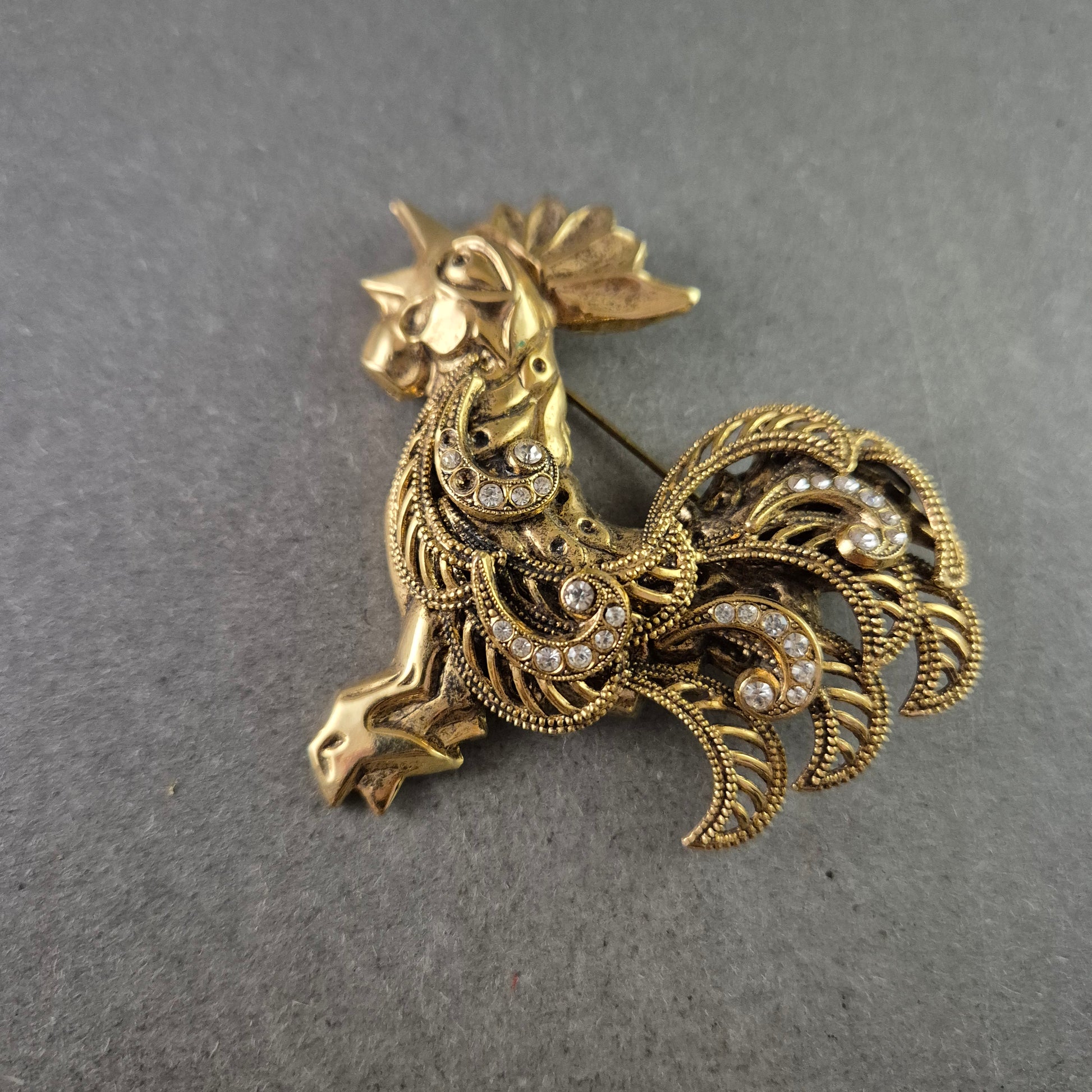 Vintage Hahn Brosche mit Strasssteinen – Filigrane Tierform im Retro-Stil