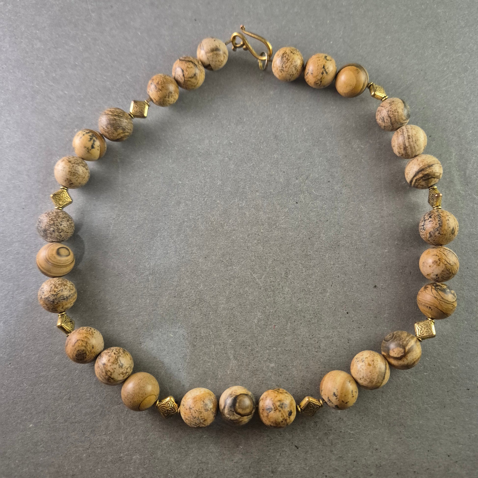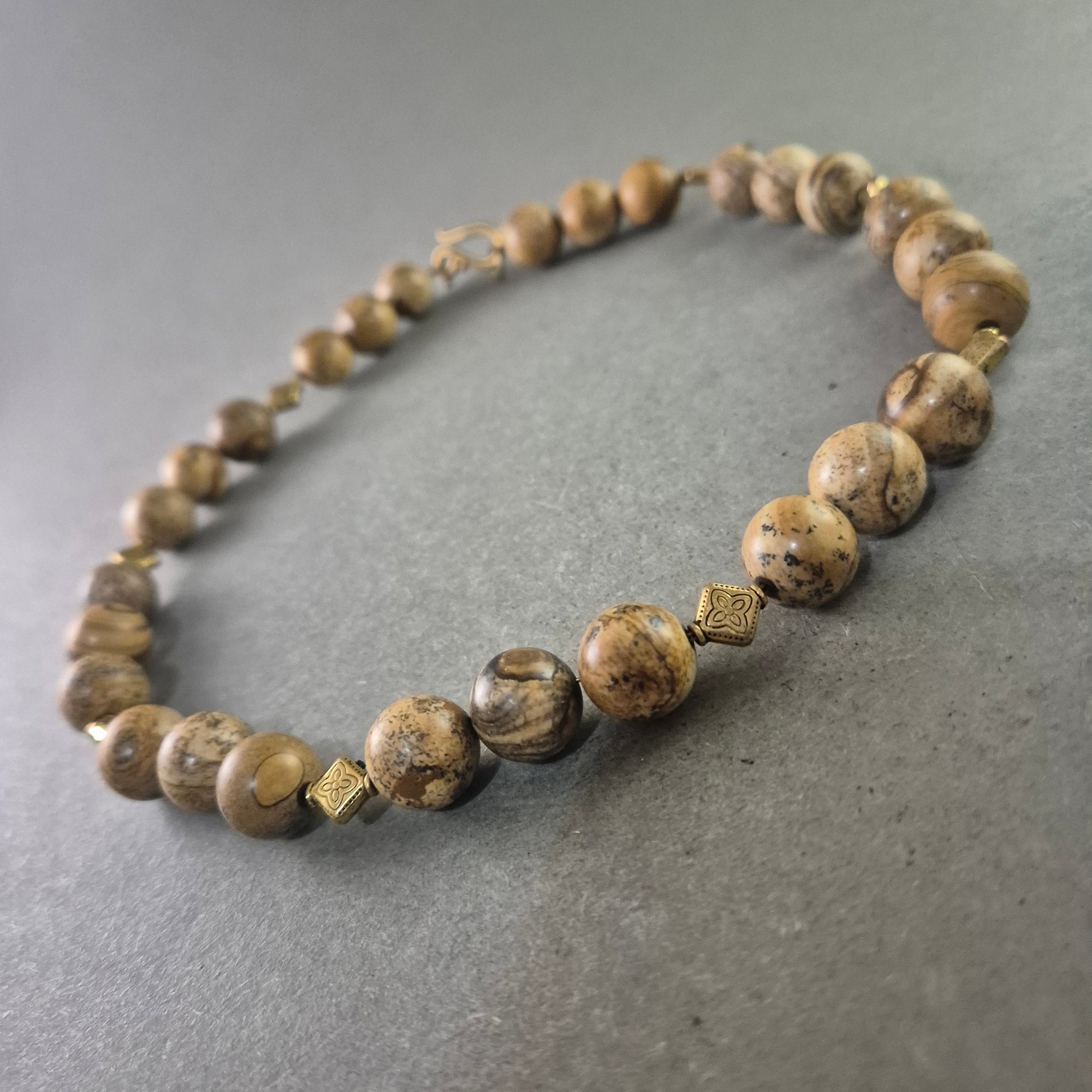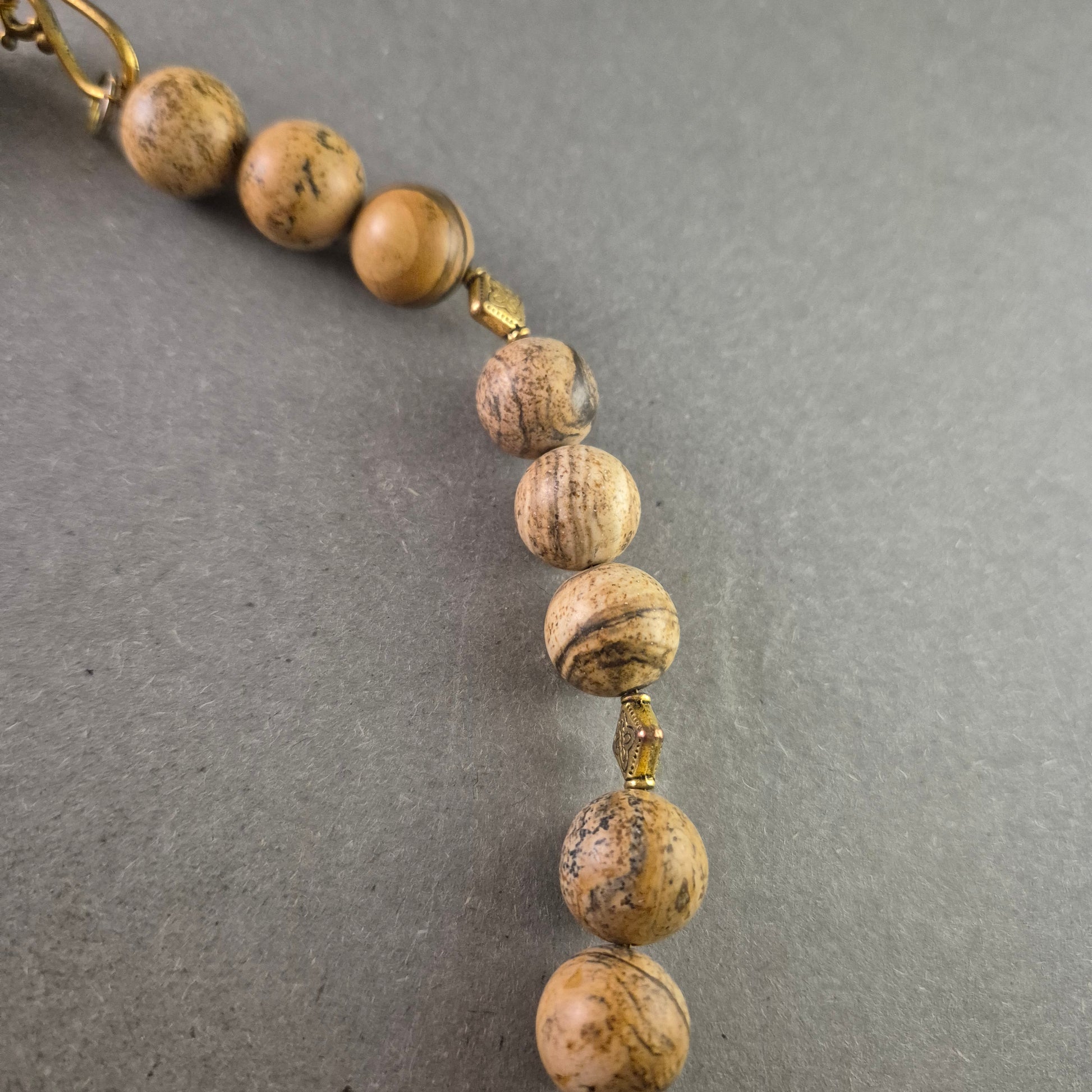 Vintage Halskette mit beige gemaserten Steinen – Naturdesign im Ethno-Stil
