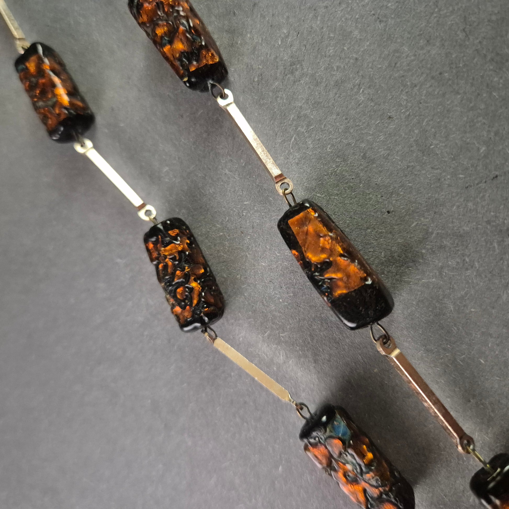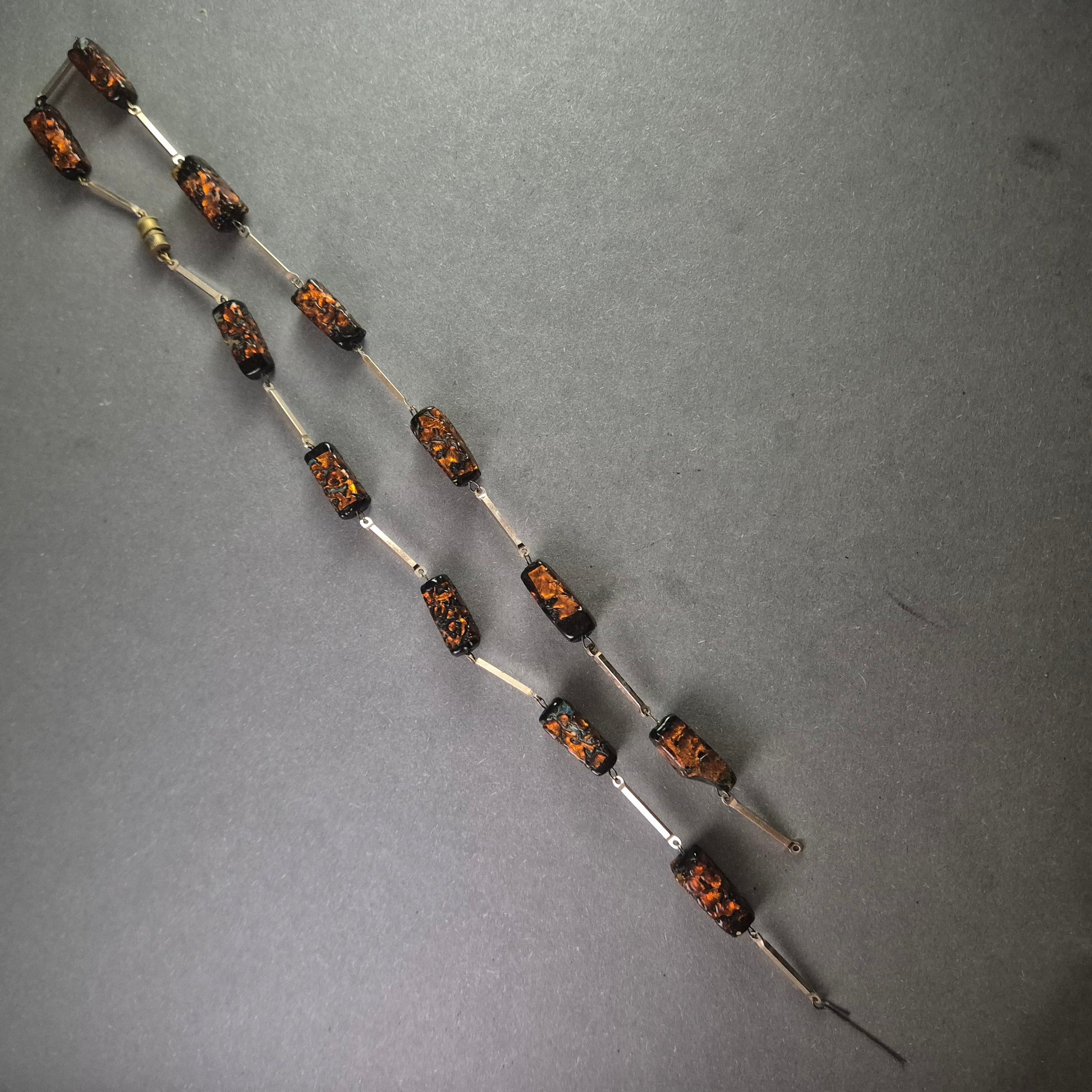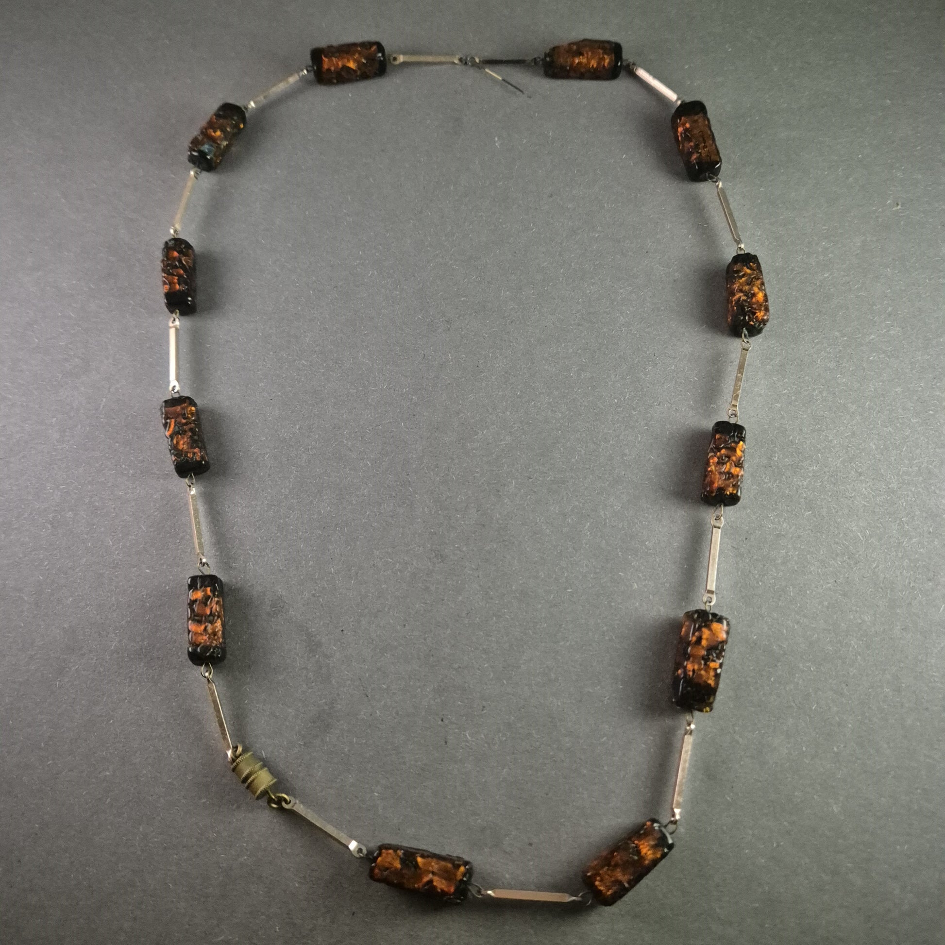 Vintage Halskette mit Bernstein-Imitat und Metall-Elementen – Retro-Schick