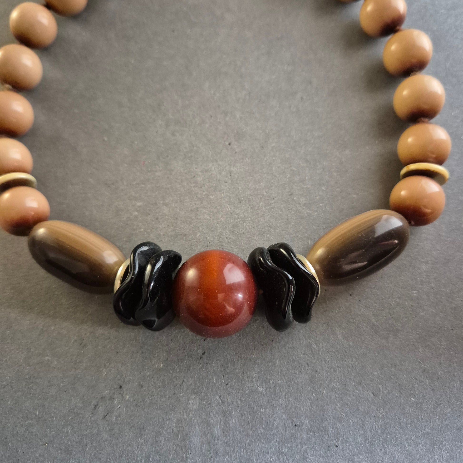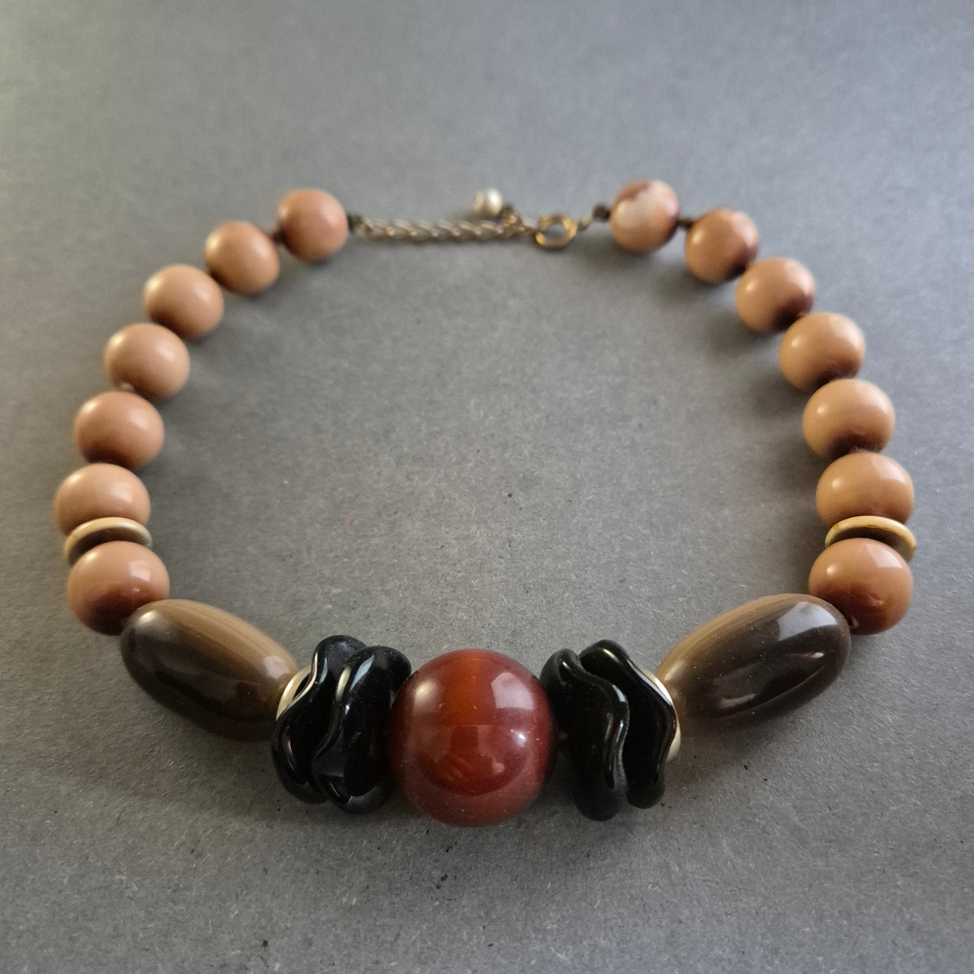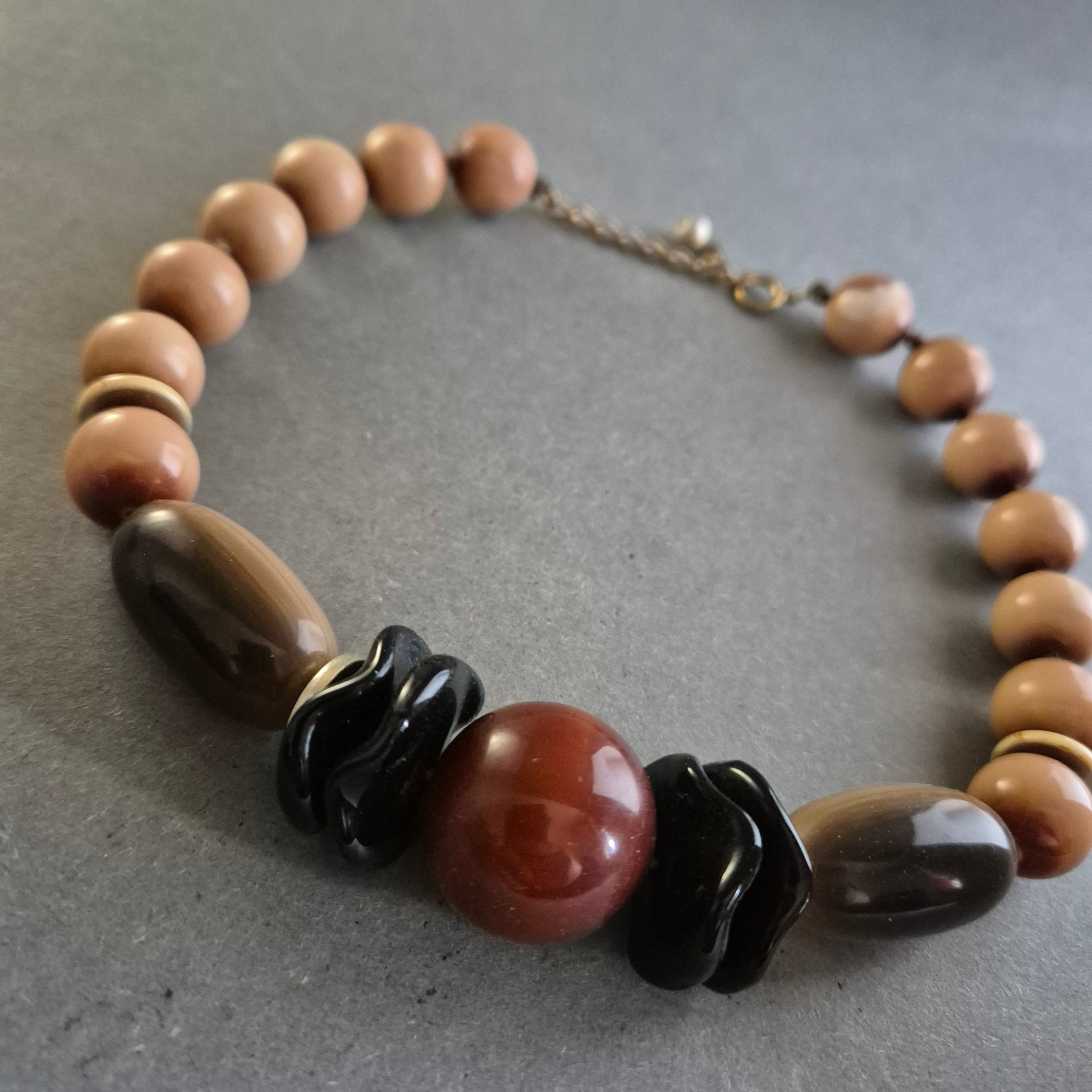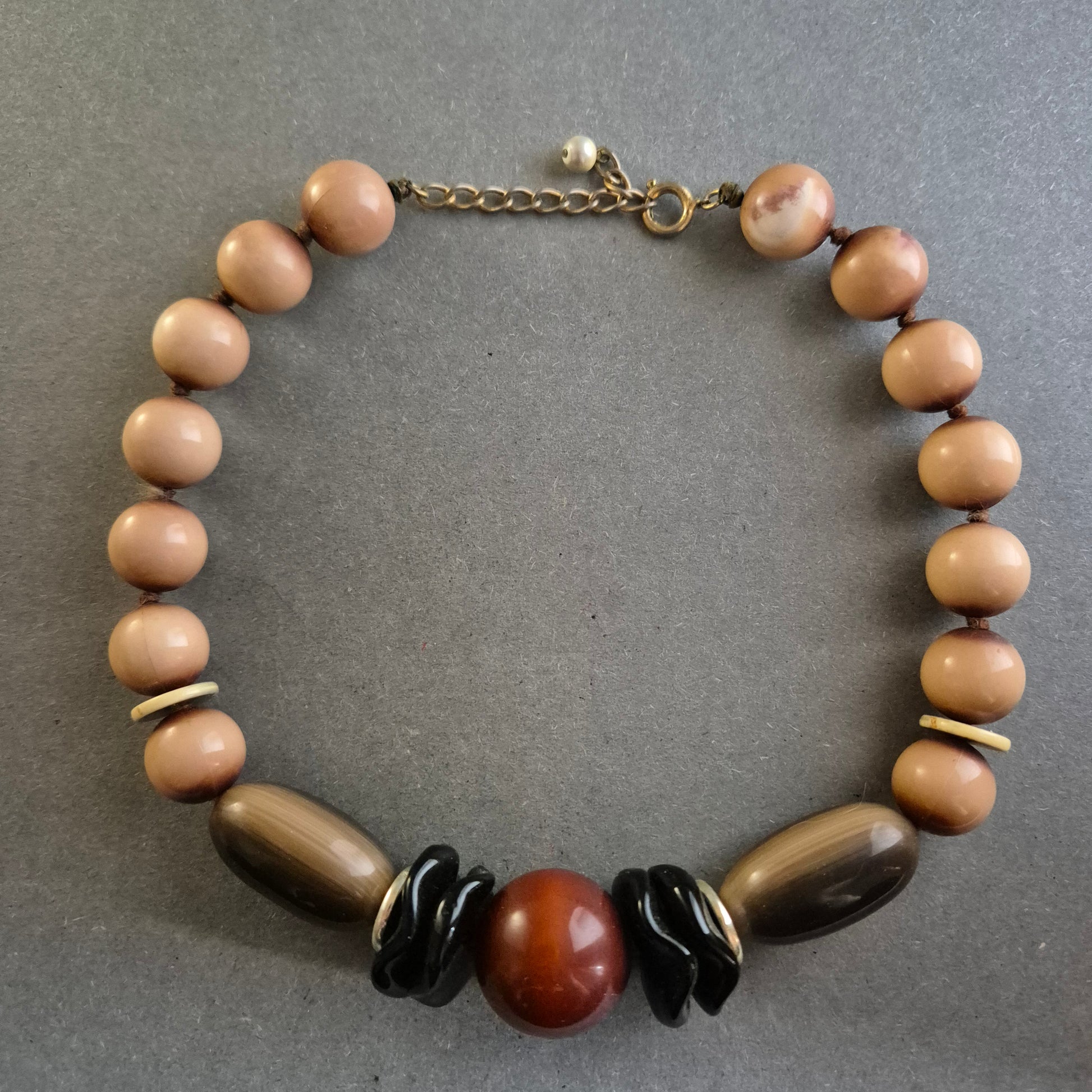 Vintage Halskette mit großen Perlen – Naturtöne & Retro-Charme