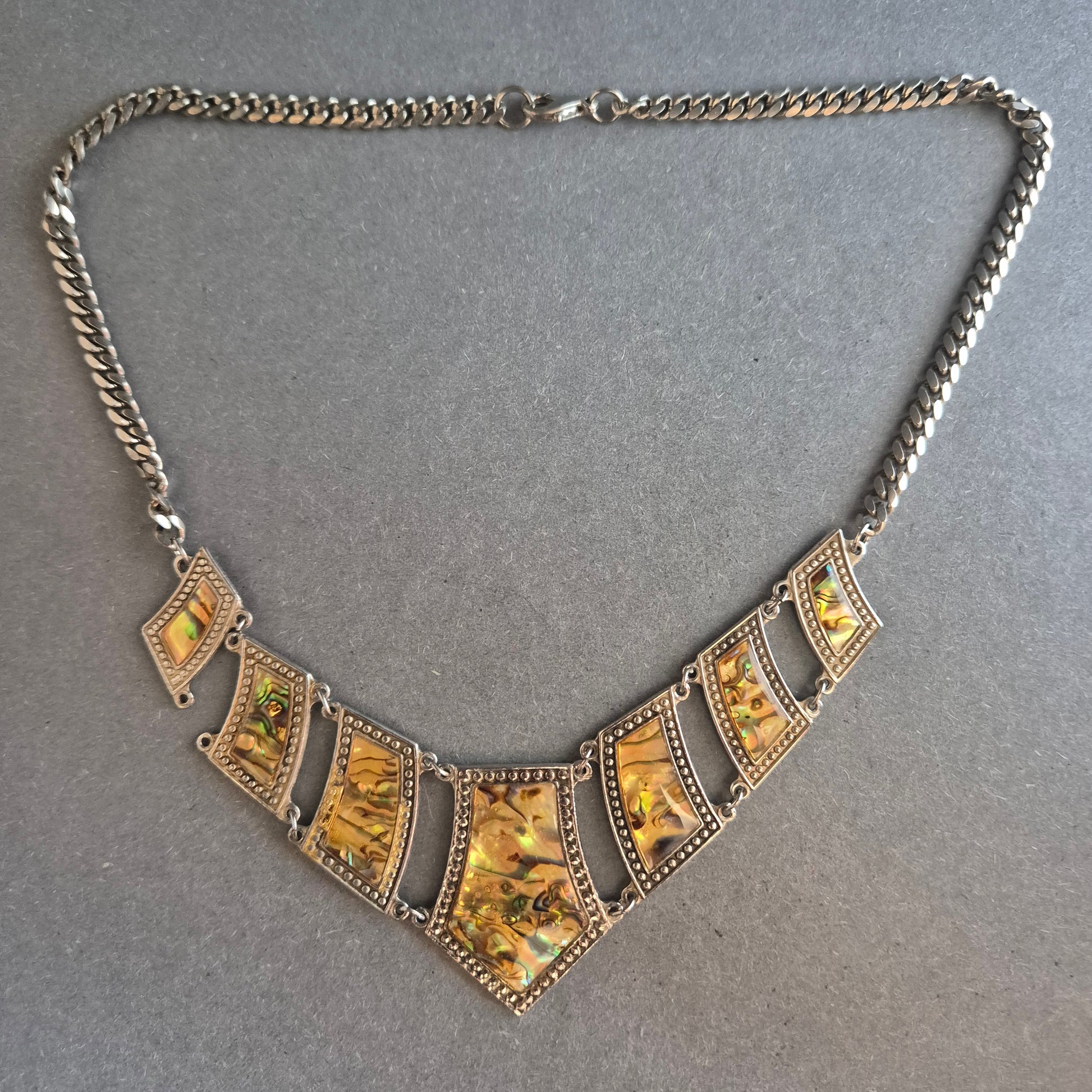 Vintage Halskette mit Muschel-Inlay – Geometrisches Design