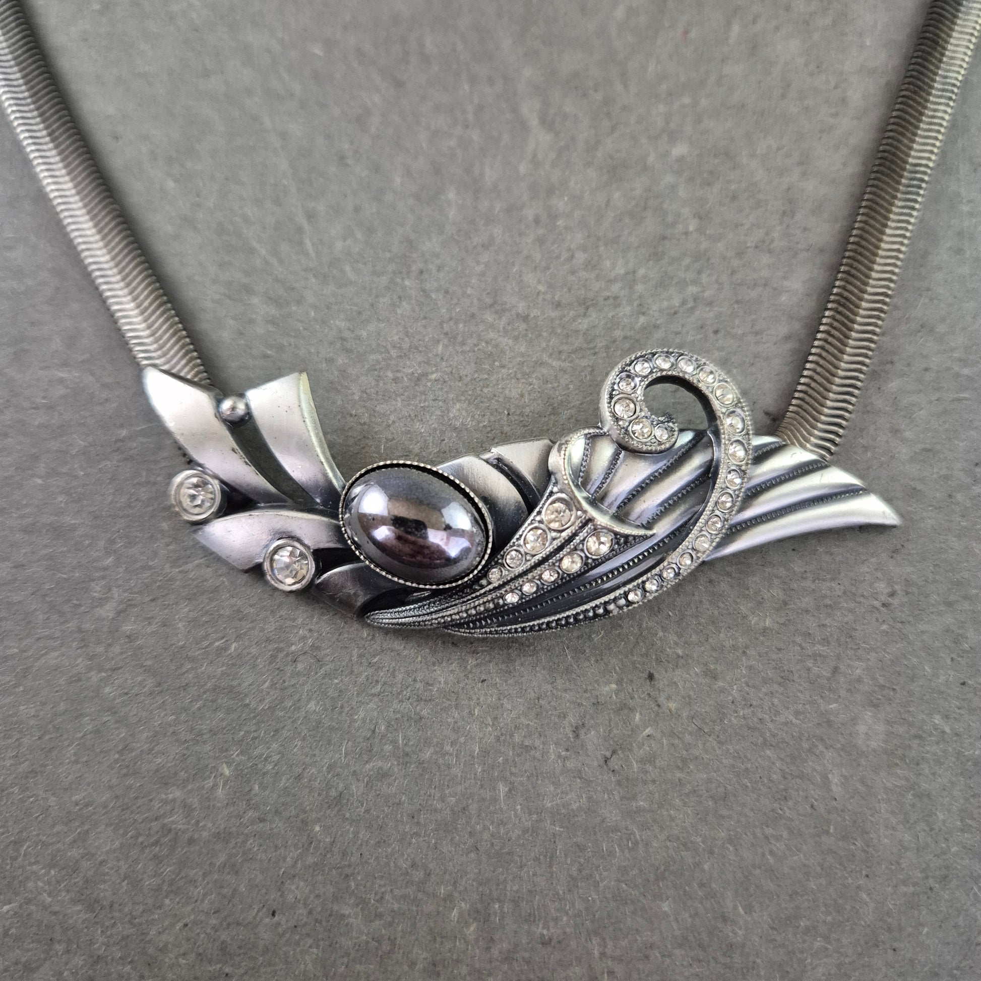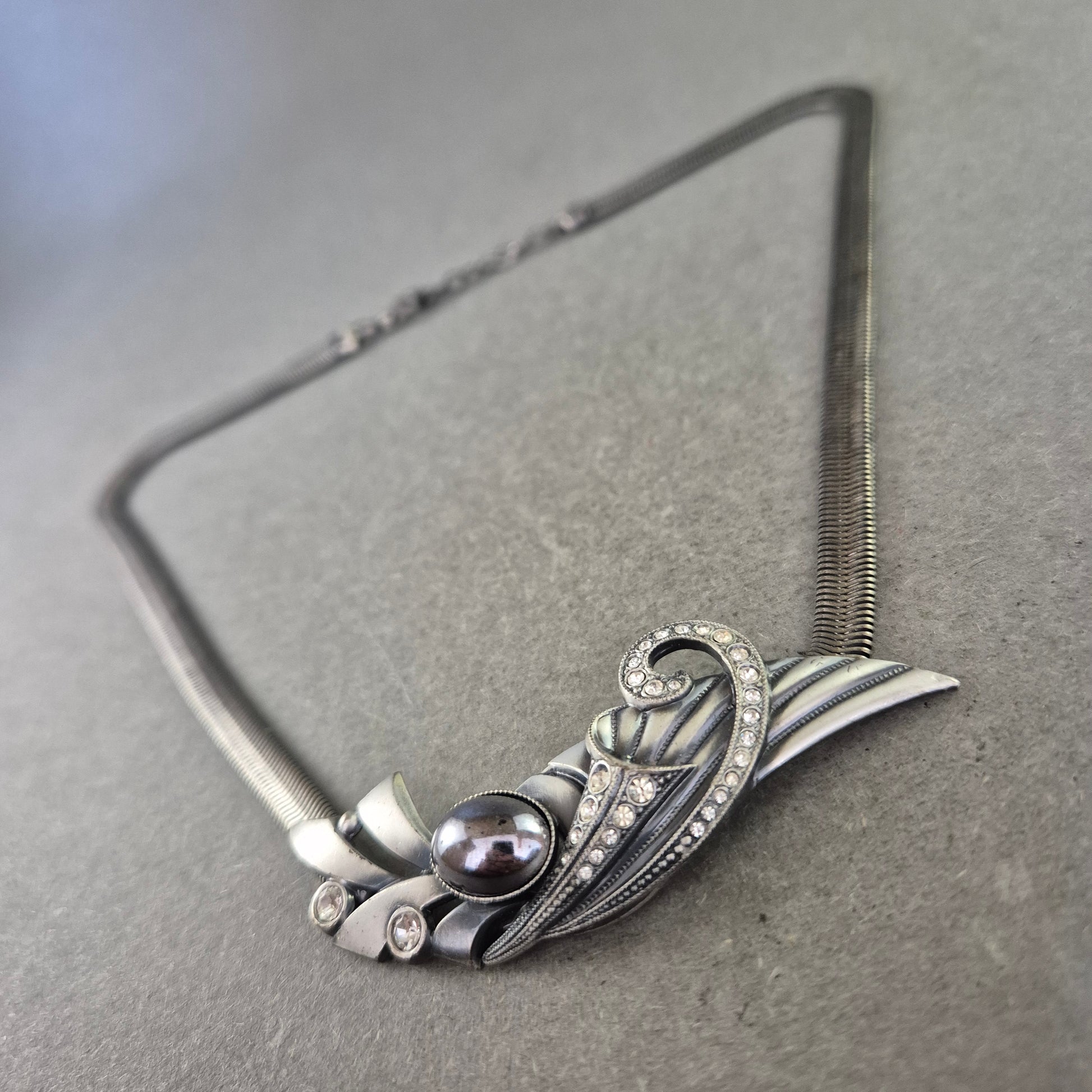 Vintage Halskette mit Silberdesign & dunkler Perle – Elegant & kunstvoll