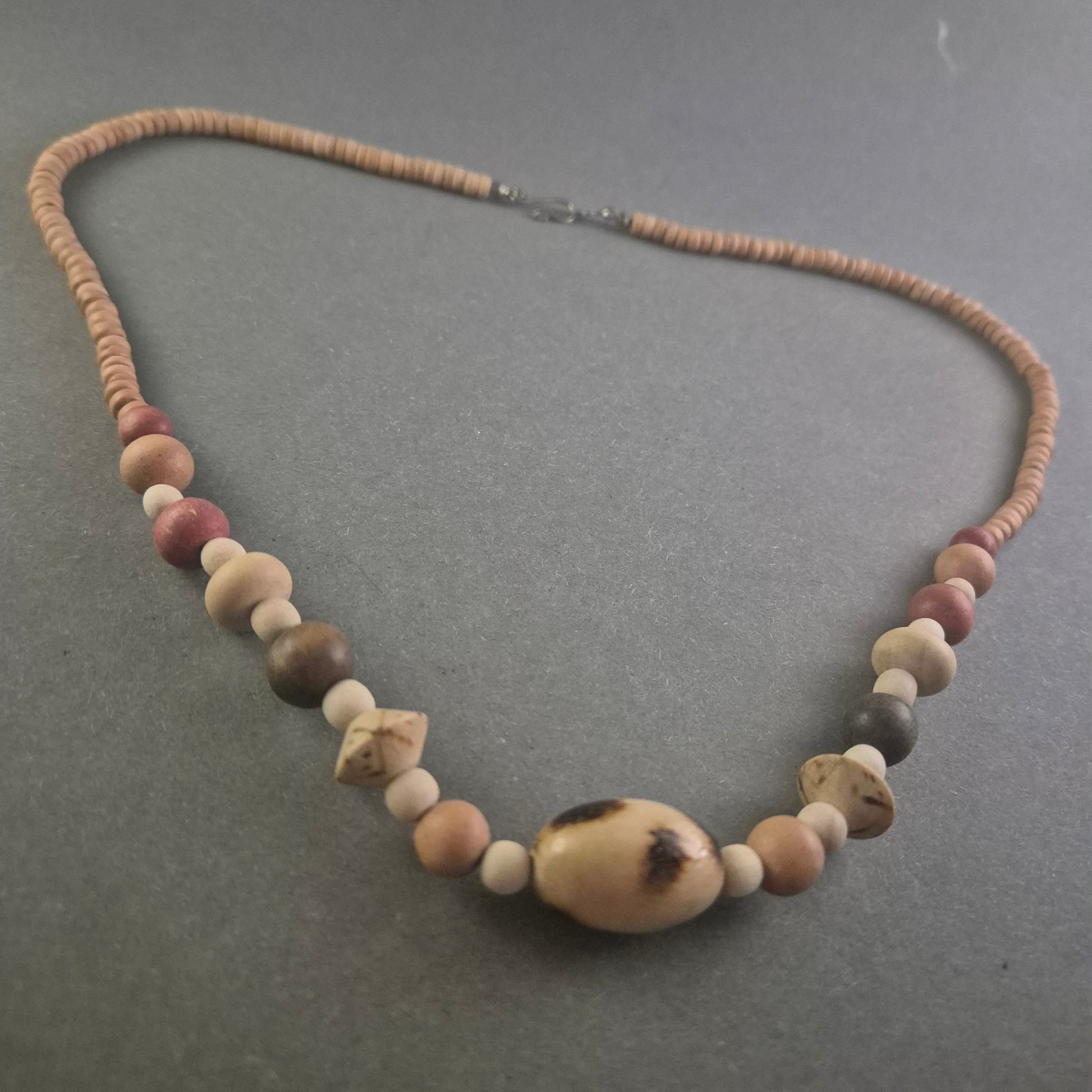 Vintage Holzperlen-Halskette – Naturverbunden und Rustikal