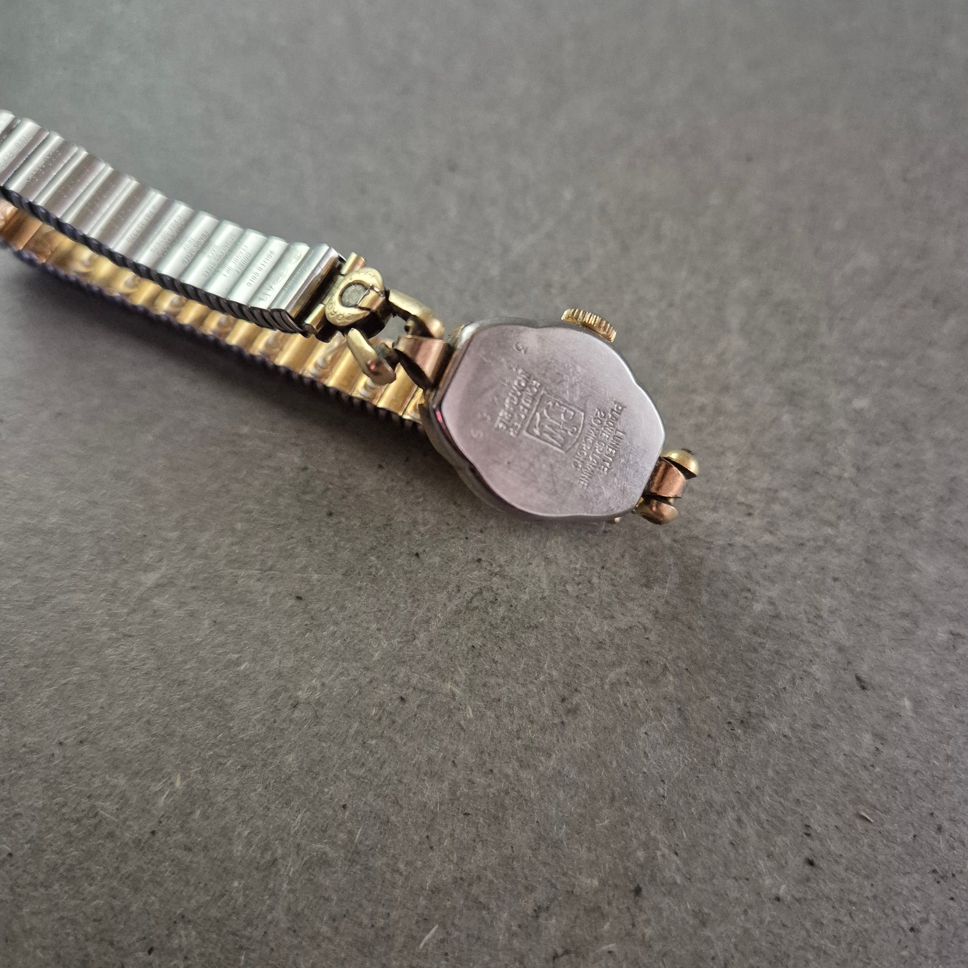 Diese charmante Vintage Damen Uhr von Lorgin vereint stilvolle Handwerkskunst mit nostalgischem Flair. Mit einem mechanischen Uhrwerk (17 Rubis) und einem goldfarbenen Gehäuse ist sie ein schönes Sammlerstück oder ein eleganter Begleiter für den Alltag. Das silber-goldene Stretcharmband sorgt für angenehmen Tragekomfort und unterstreicht den authentischen Retro-Stil.