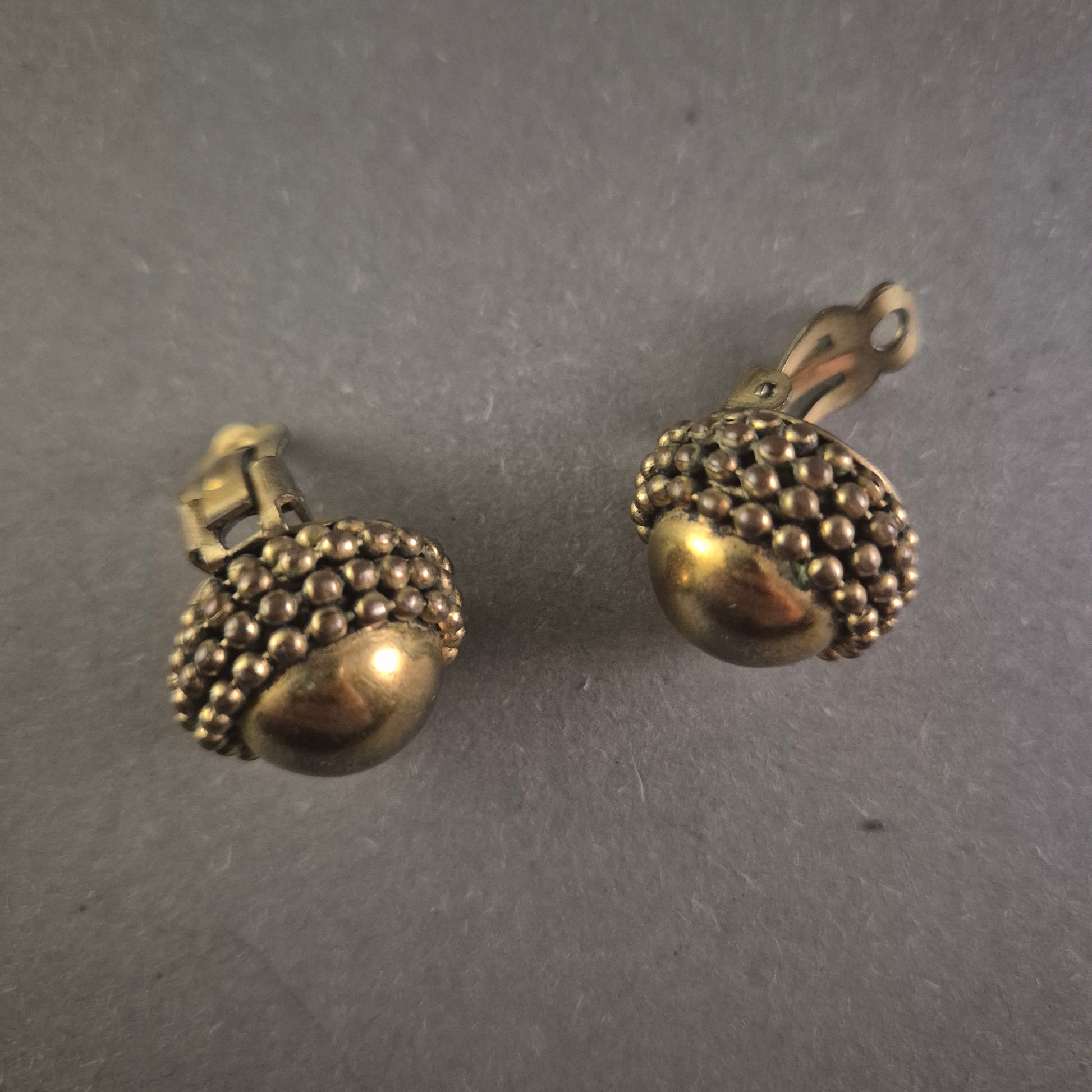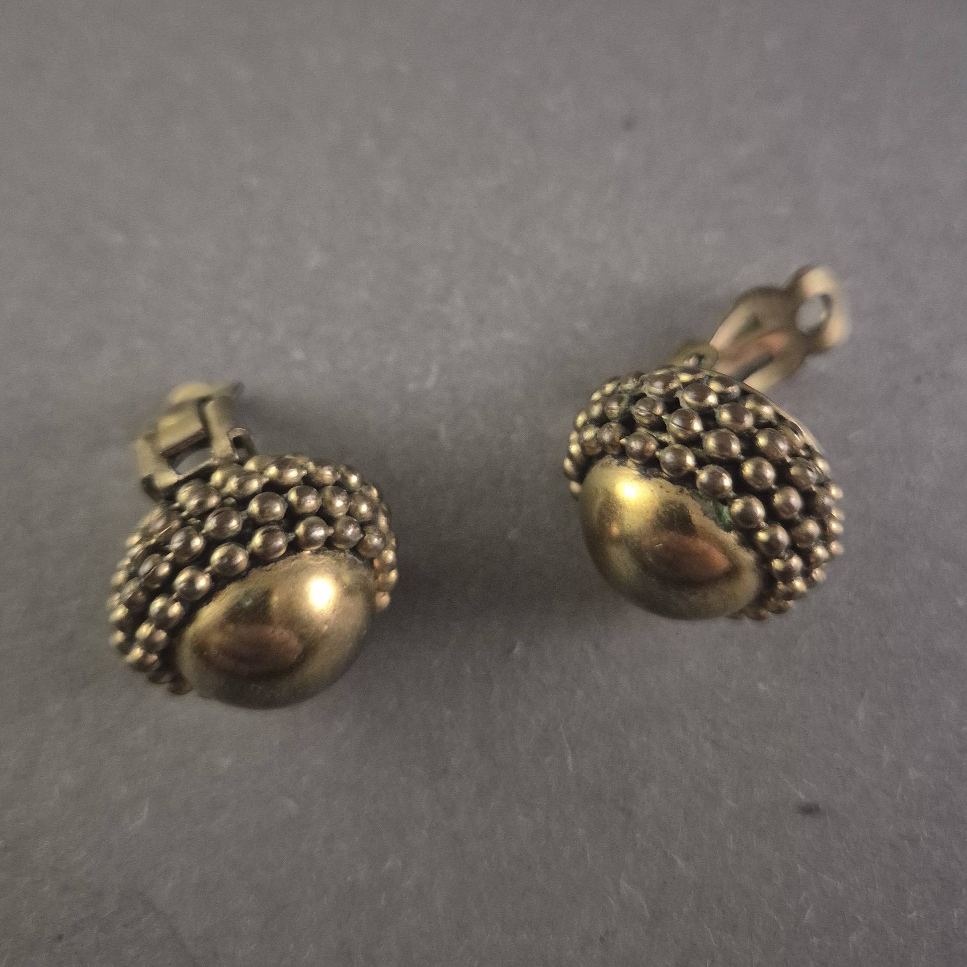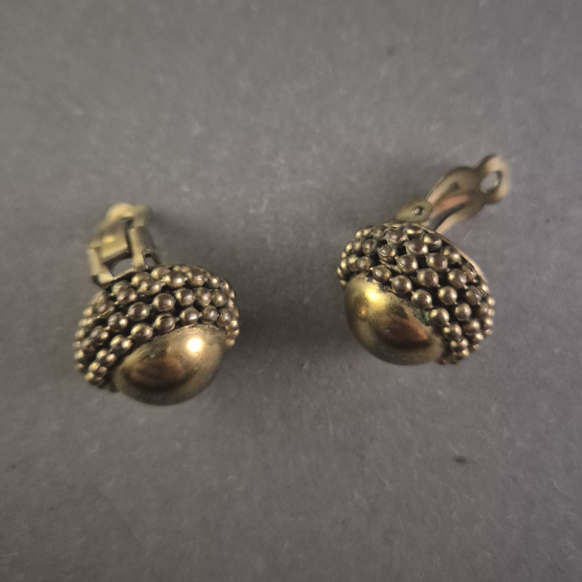 Vintage Ohrclips im Antik-Design – Messinglook mit Noppenstruktur