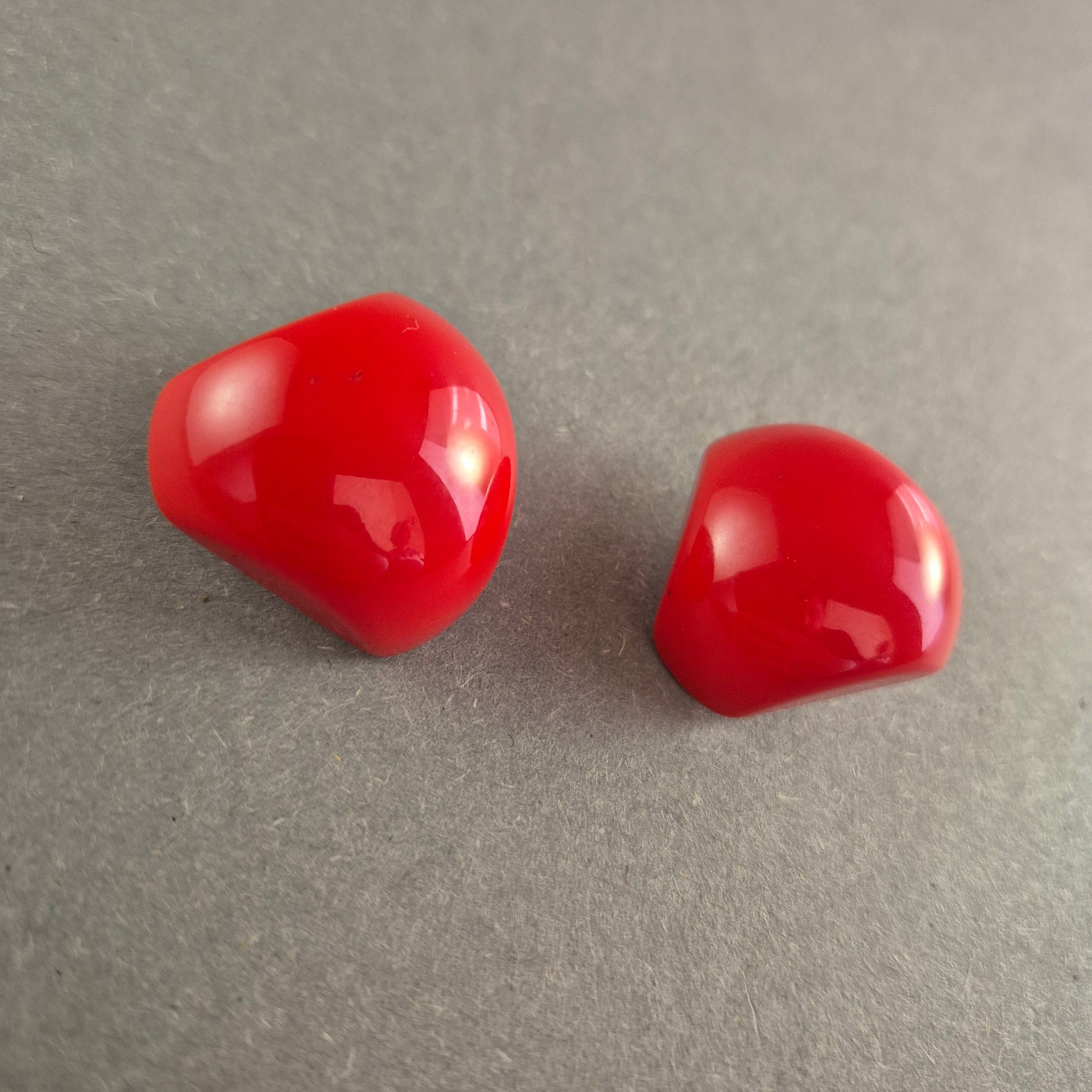 Diese auffälligen Vintage-Ohrclips bestechen durch ihr glänzendes, tiefrotes Design und eine markante Form. Die hochwertige Kunststoffverarbeitung sorgt für ein angenehmes Tragegefühl, während die goldfarbenen Clipverschlüsse sicheren Halt bieten. Perfekt für Liebhaber von Retro-Accessoires oder als stilvolles Statement-Piece für besondere Anlässe.
