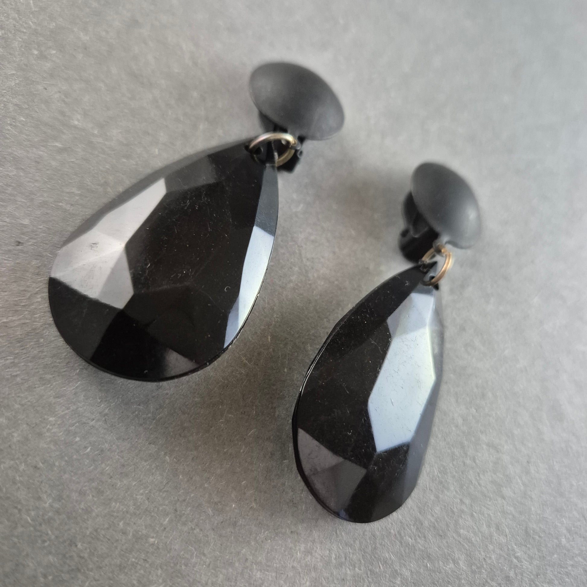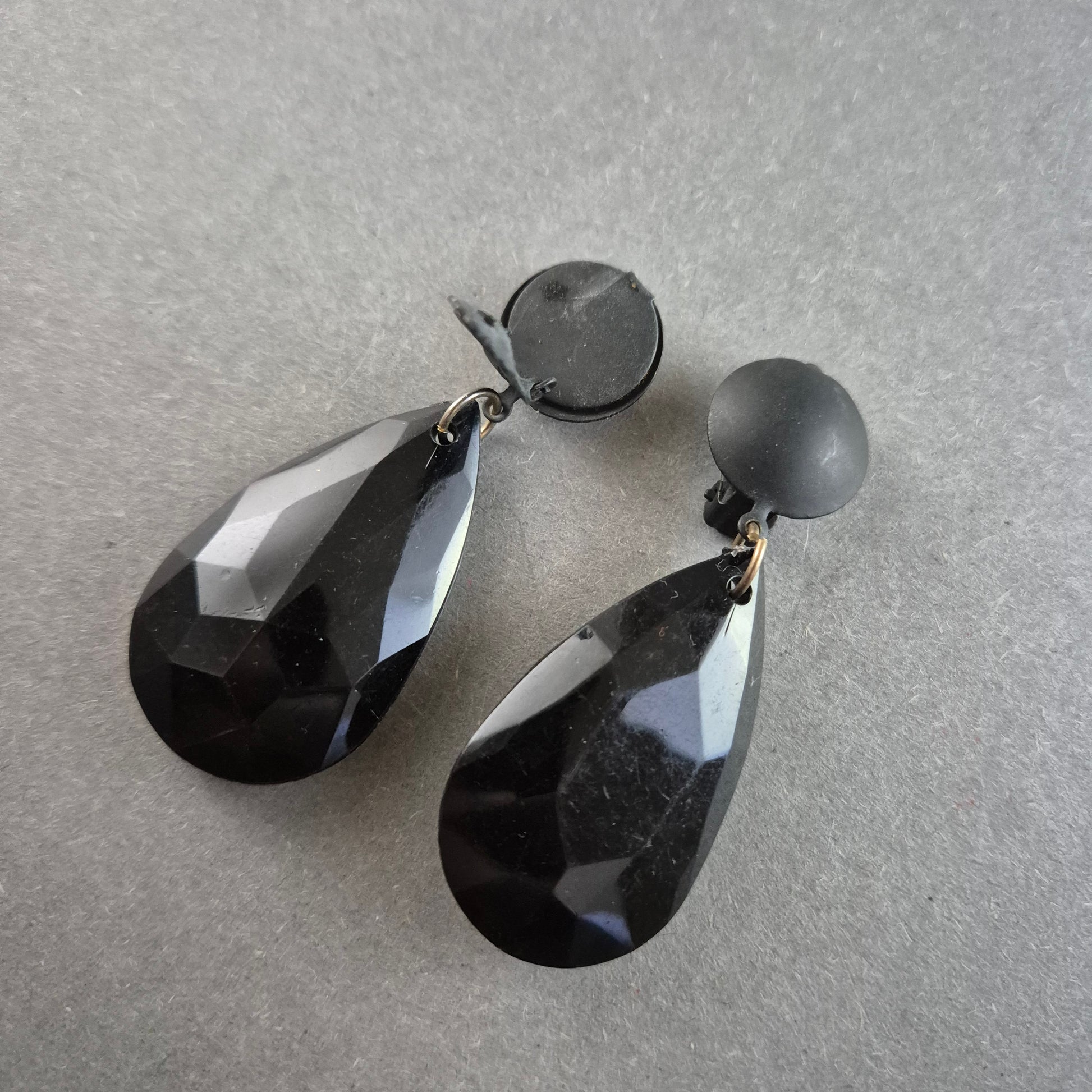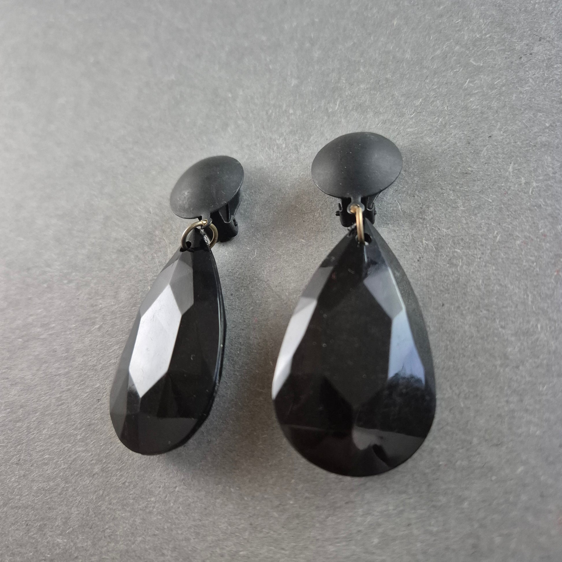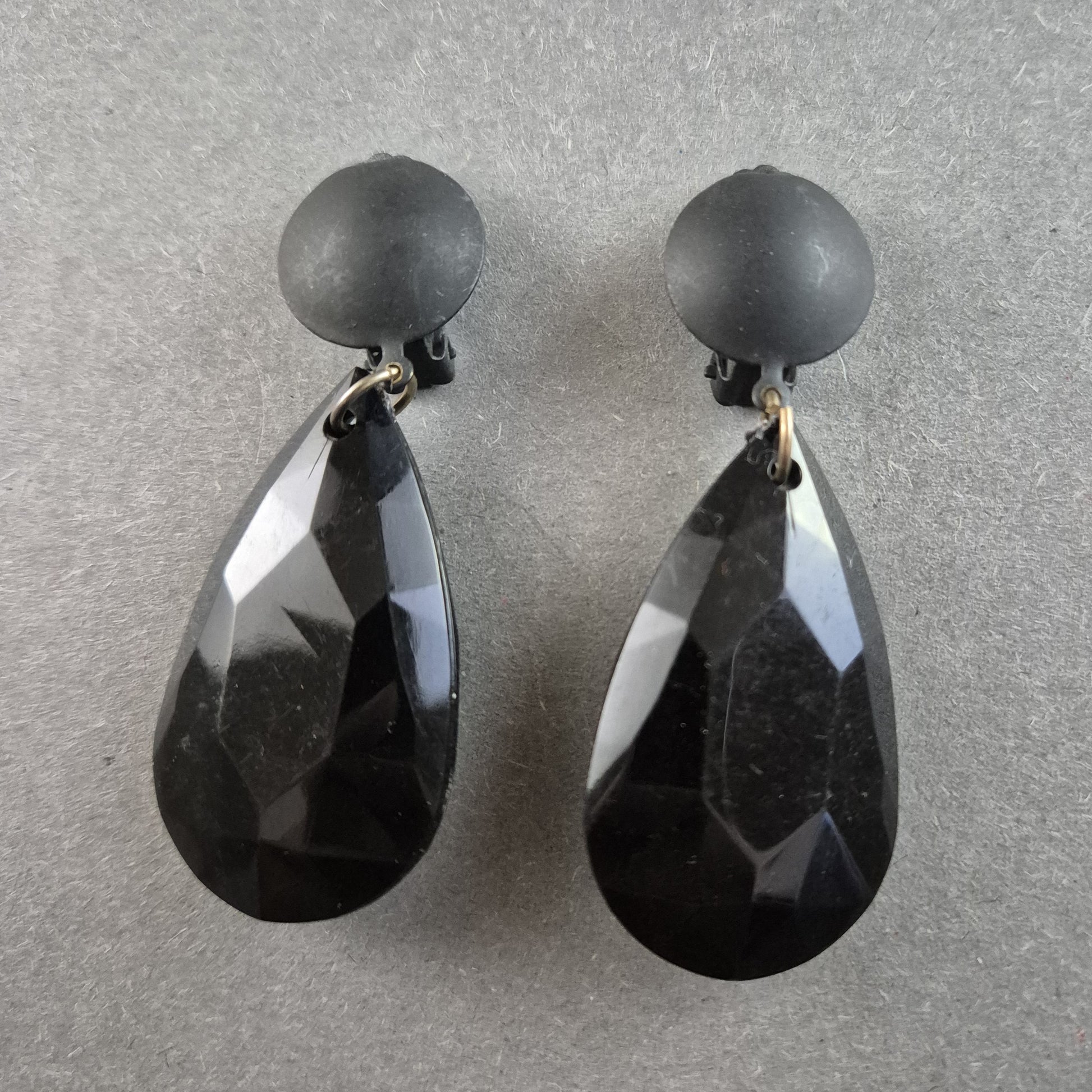 Vintage Ohrclips mit facettierten Tropfen – Schwarzer Retro-Stil