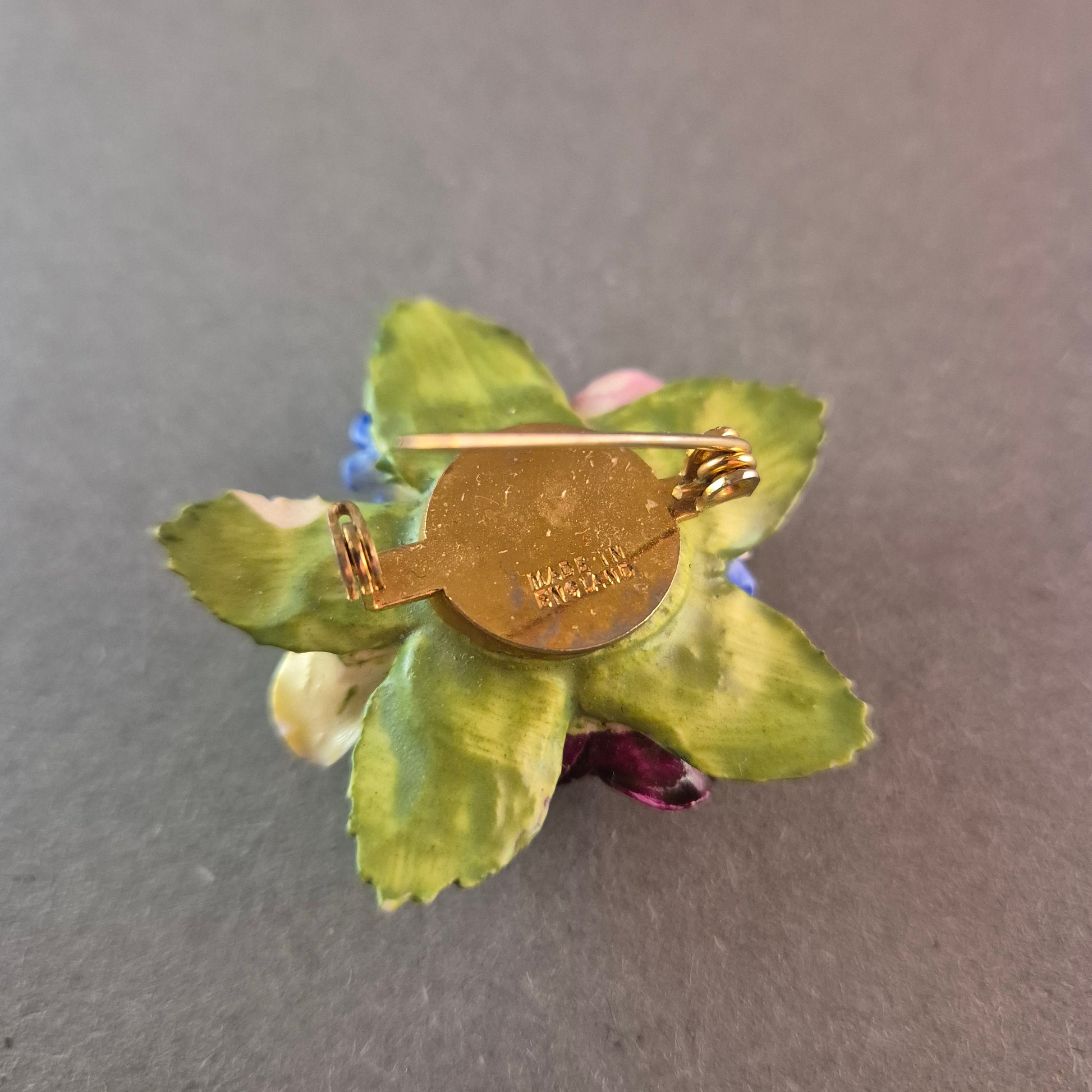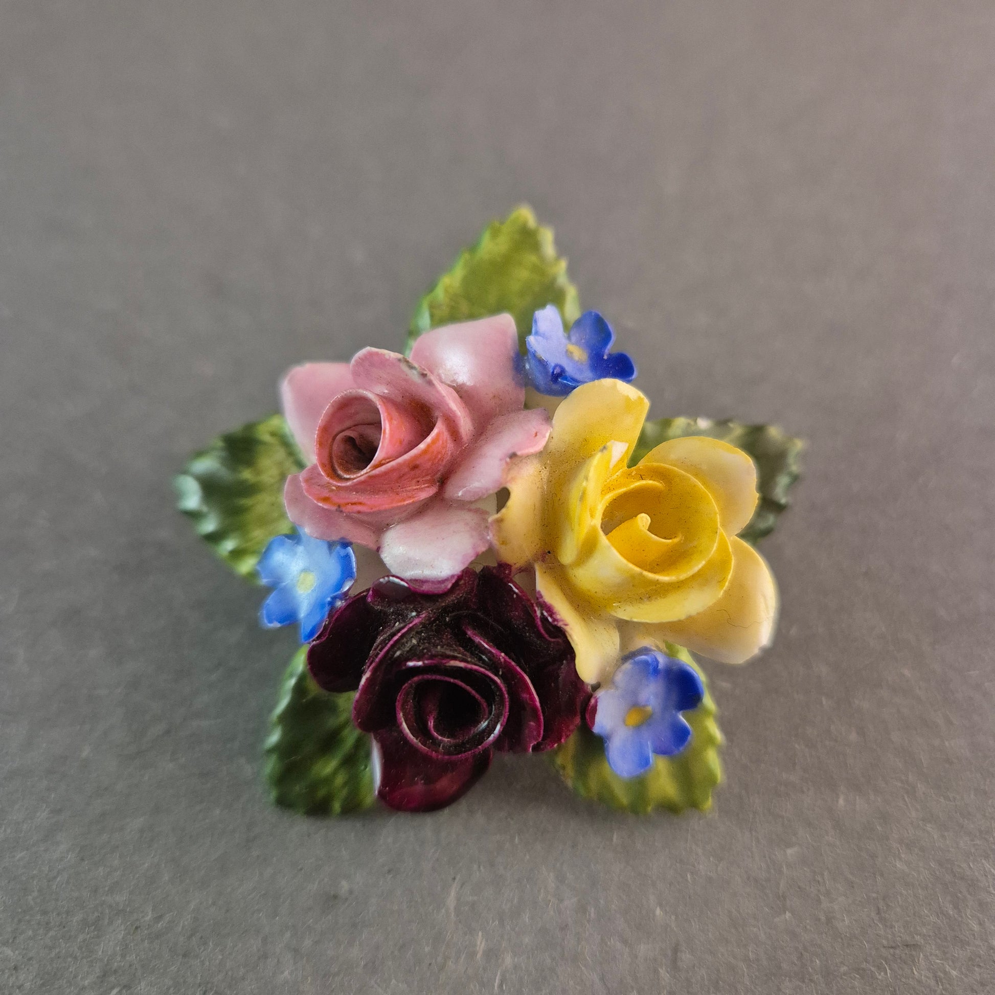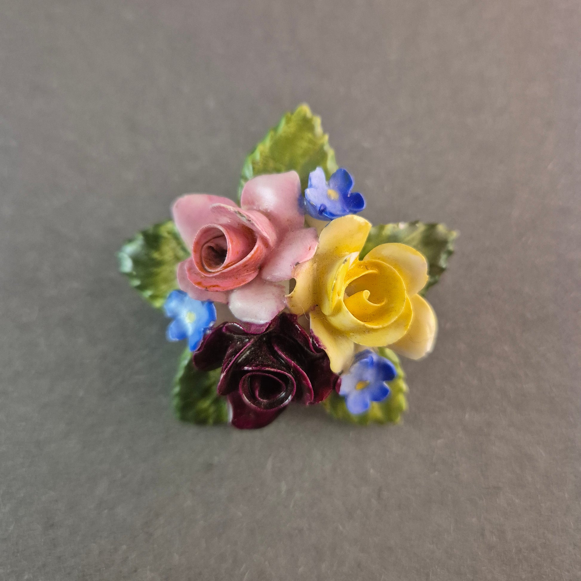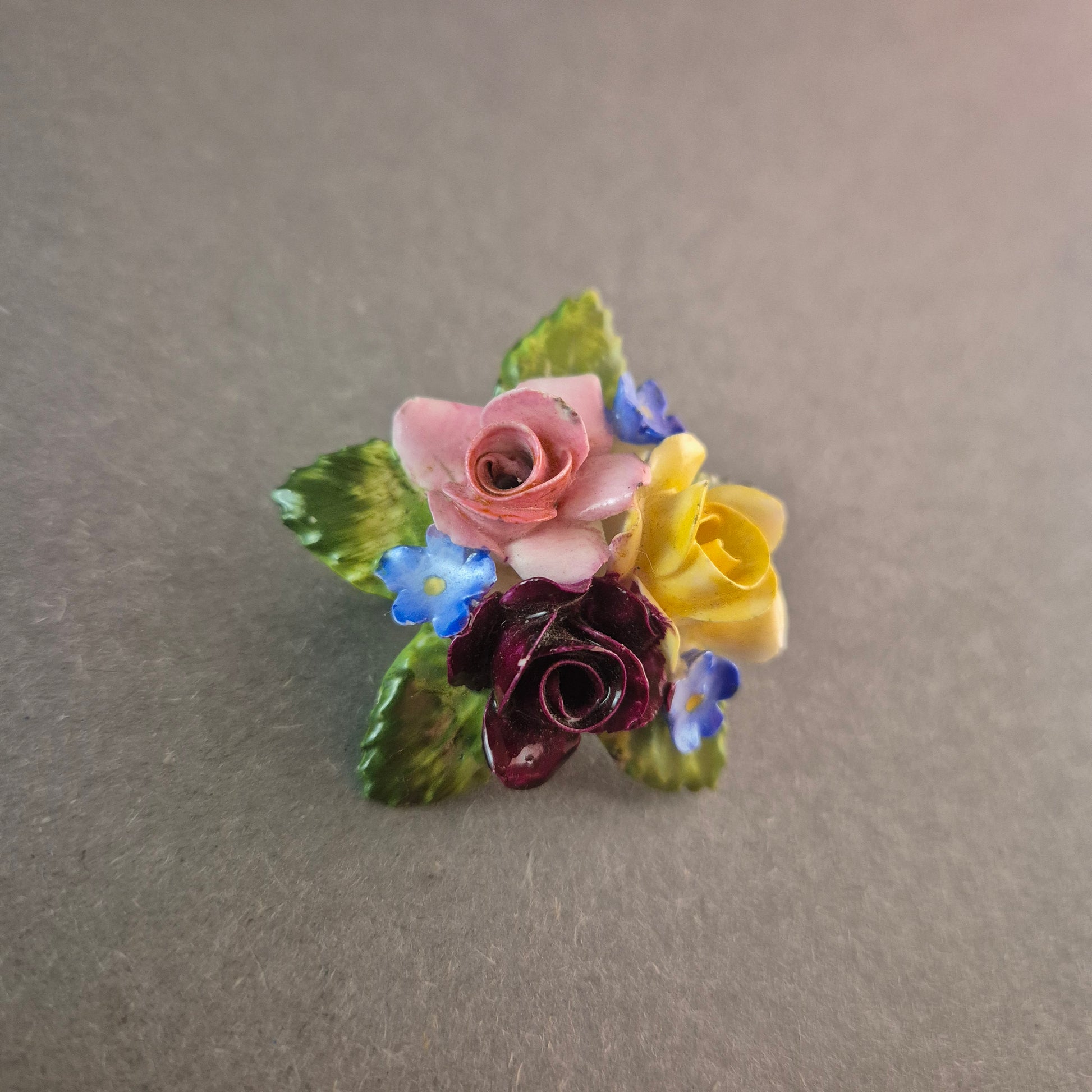 Vintage-Porzellan-Brosche mit Blumenmotiv – Made in England