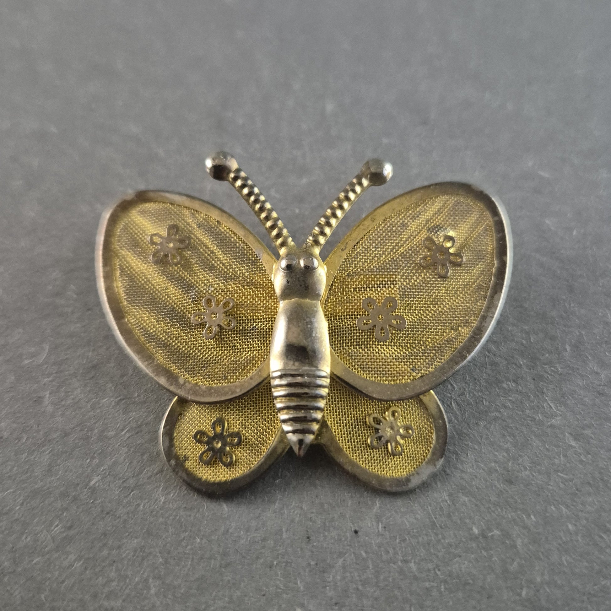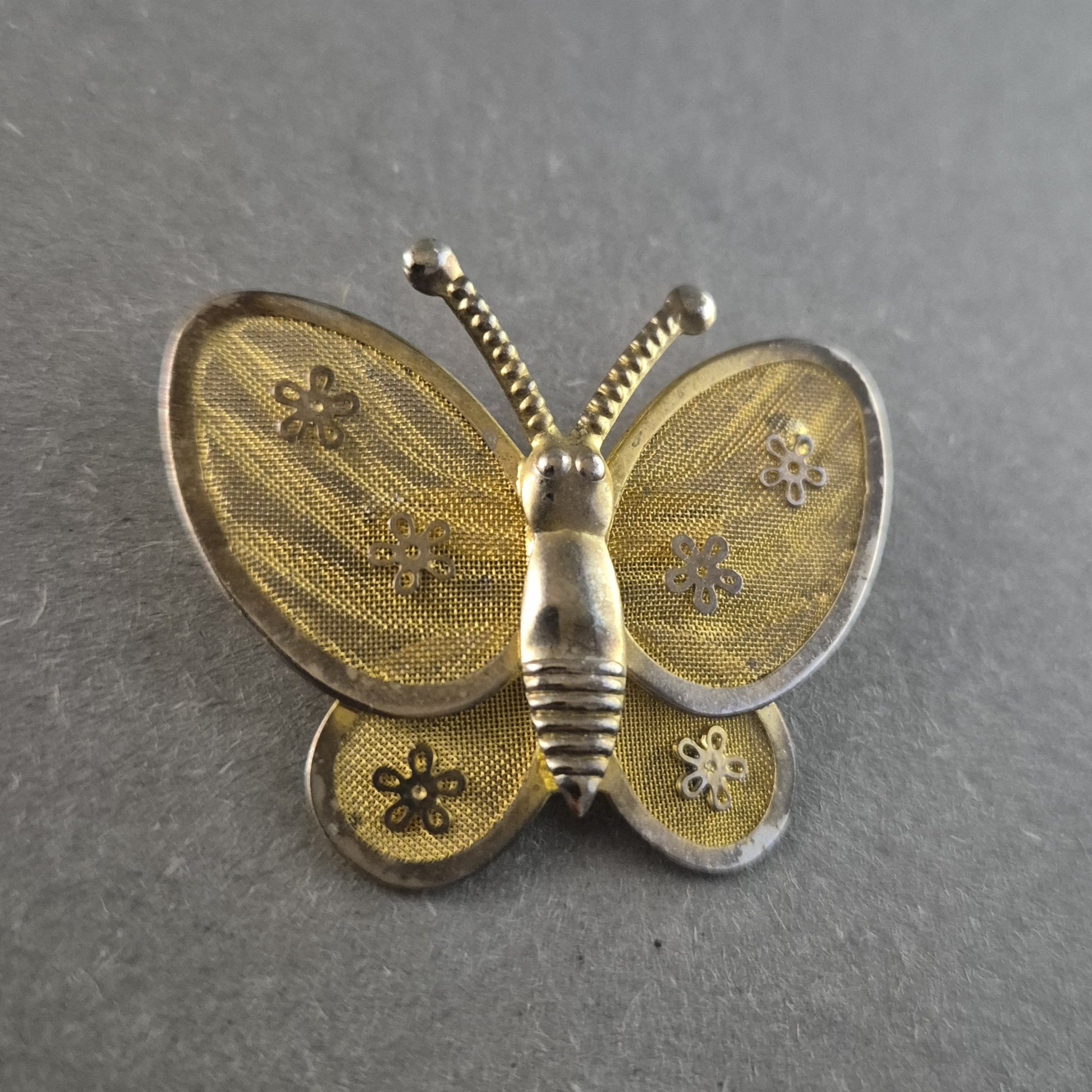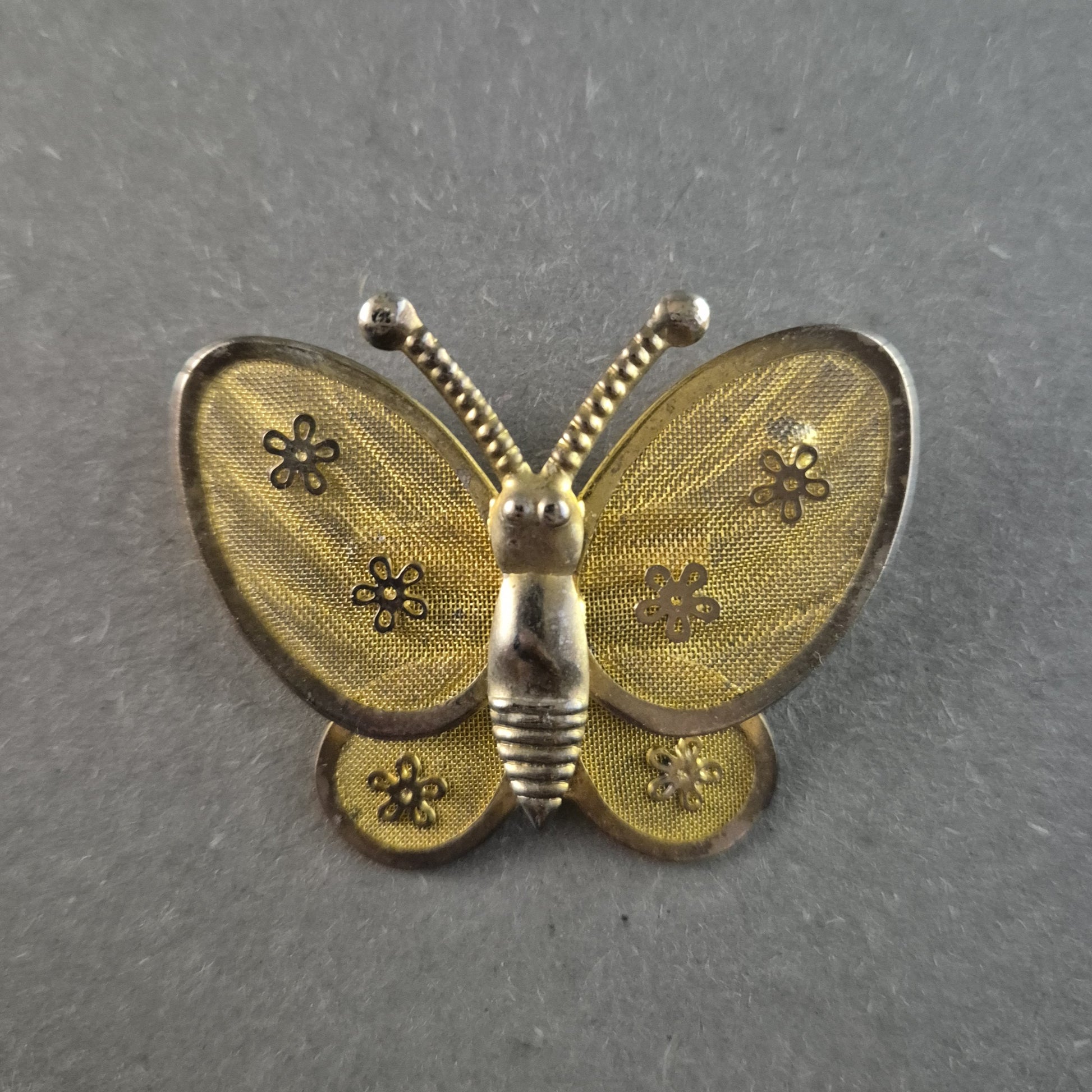 Vintage Schmetterlings-Brosche – Filigrane Goldoptik mit Blütenmuster