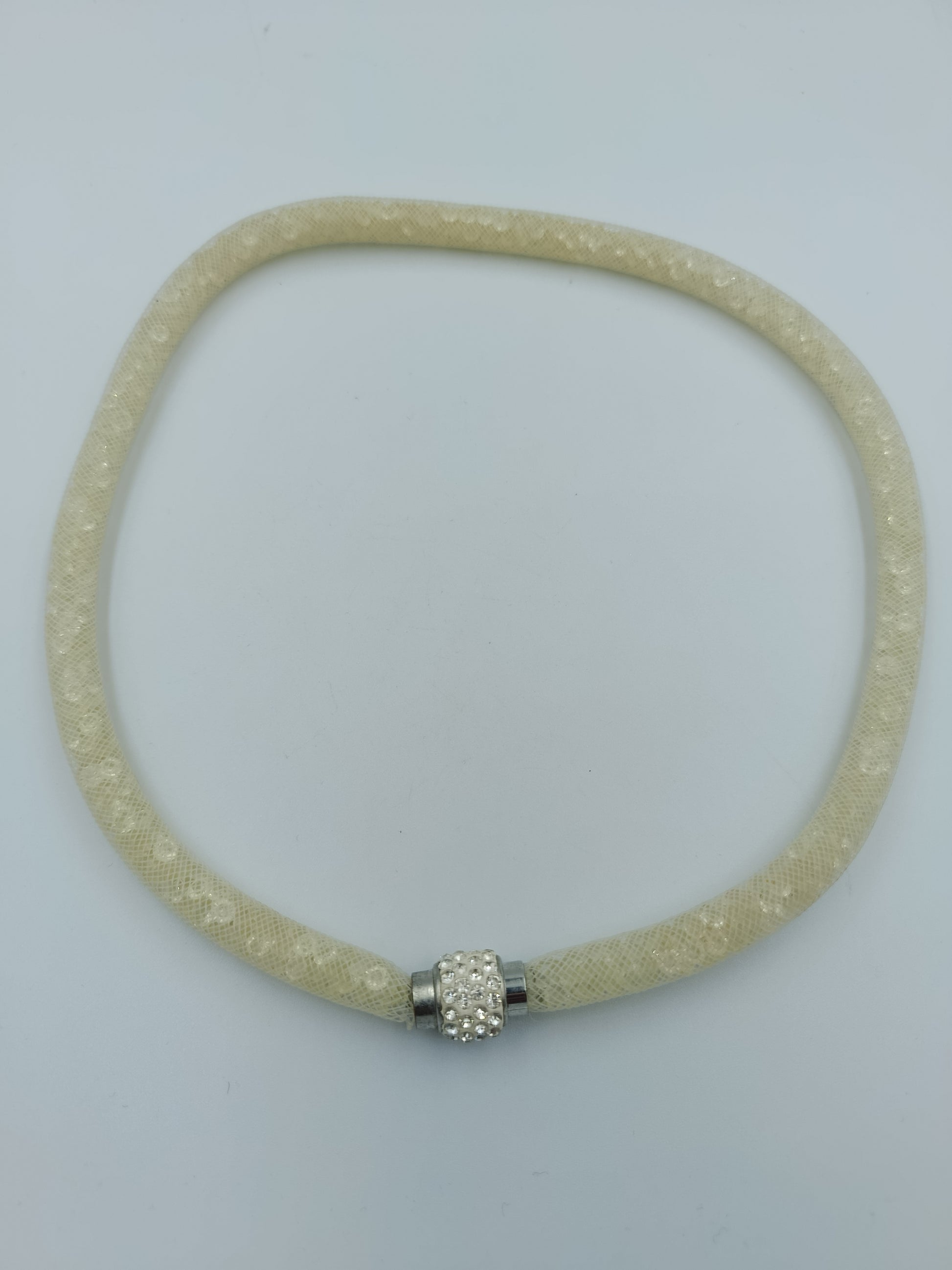 Weiße Mesh-Halskette mit Strass-Magnetverschluss