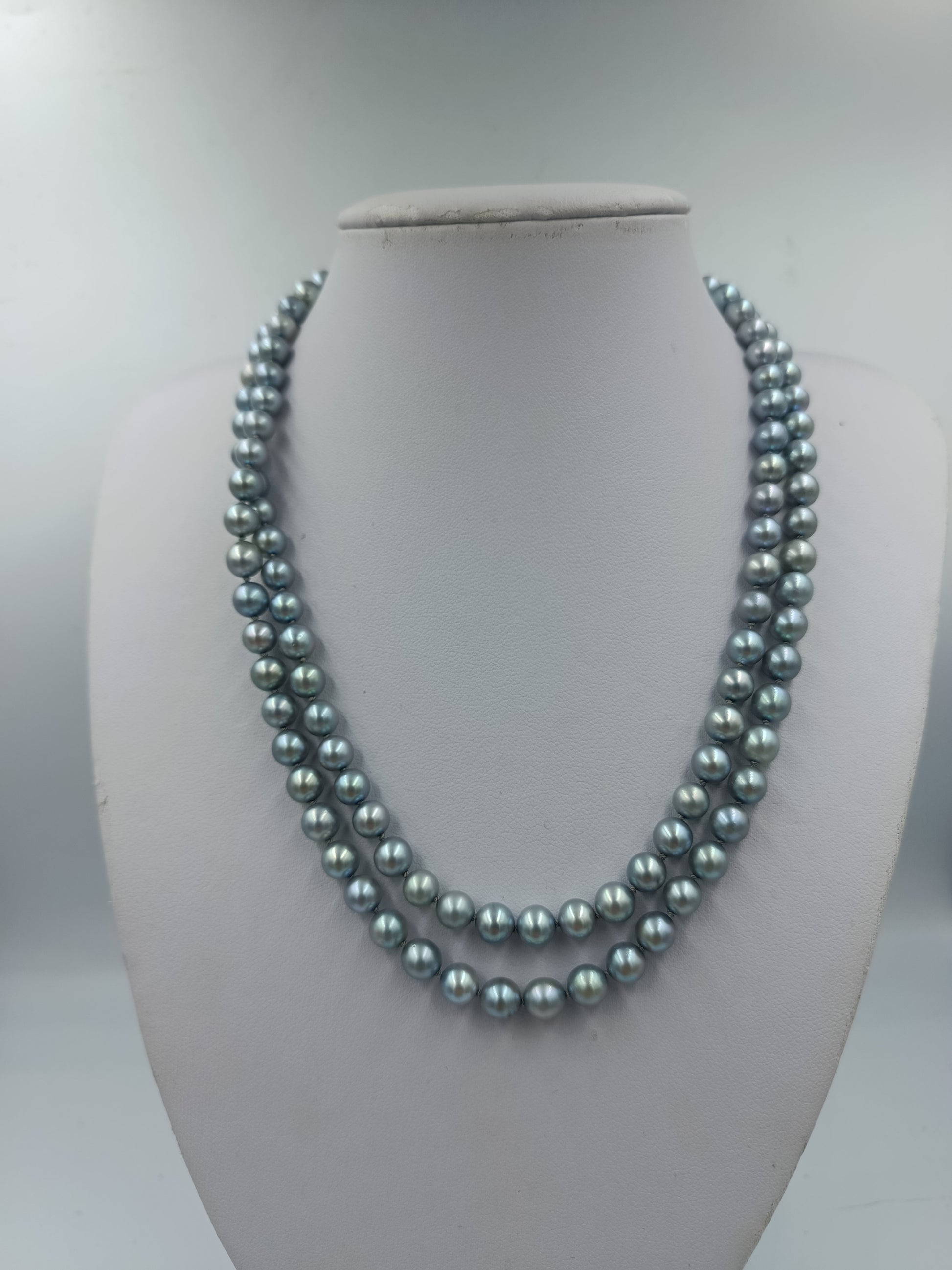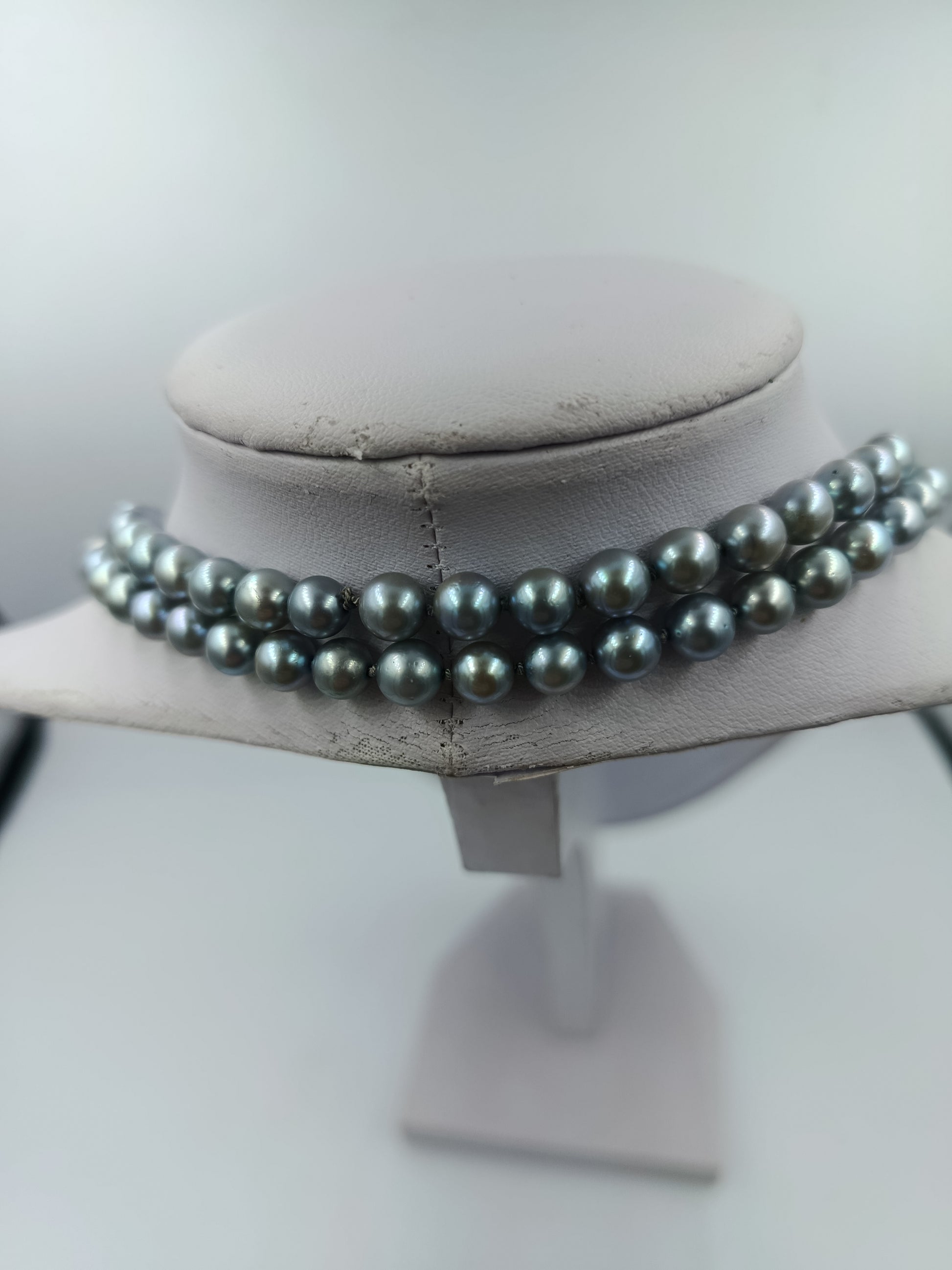 Zweireihige graue Perlenkette mit elegantem Glanz