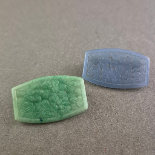 2 Vintage Broschen aus Bakelit – Florales Design in Pastellfarben