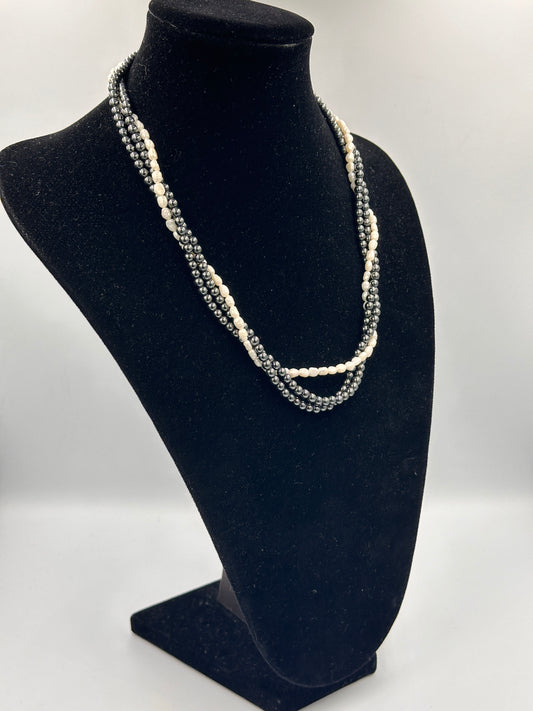 2-Strang Perlenkette mit Hämatit und 1 Strang in Weiß