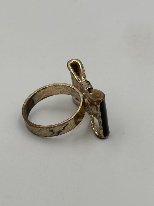 "Eleganter Schwarzer Steine Verlobungsring in 8k Gold - Größe 56