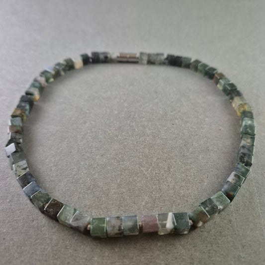 Elegante Halskette aus Moosachat-Würfeln – Naturstein in geometrischer Form