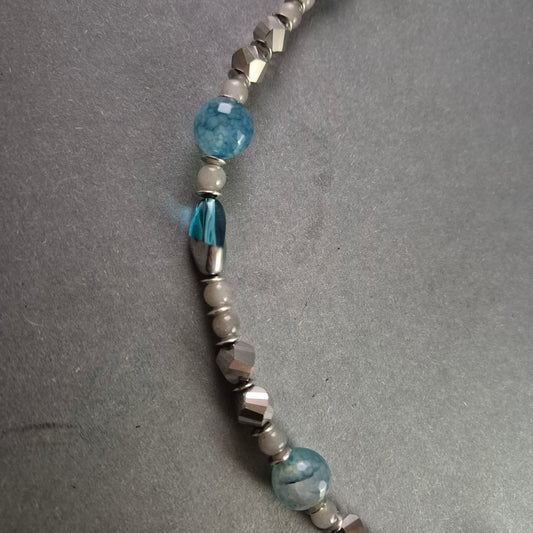 Elegante Halskette mit blauen und grauen Perlen – Zeitloses Schmuckdesign