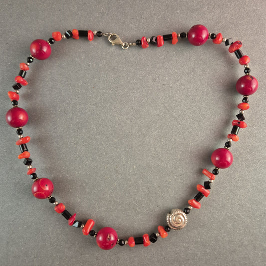 Elegante Halskette mit Korallen & Onyx – Stilvolles Unikat