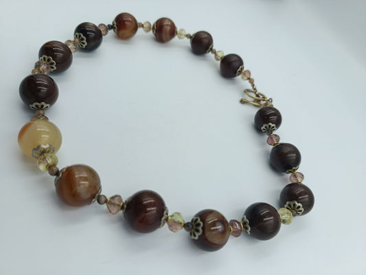 Elegante Halskette mit braunen Naturstein-Perlen