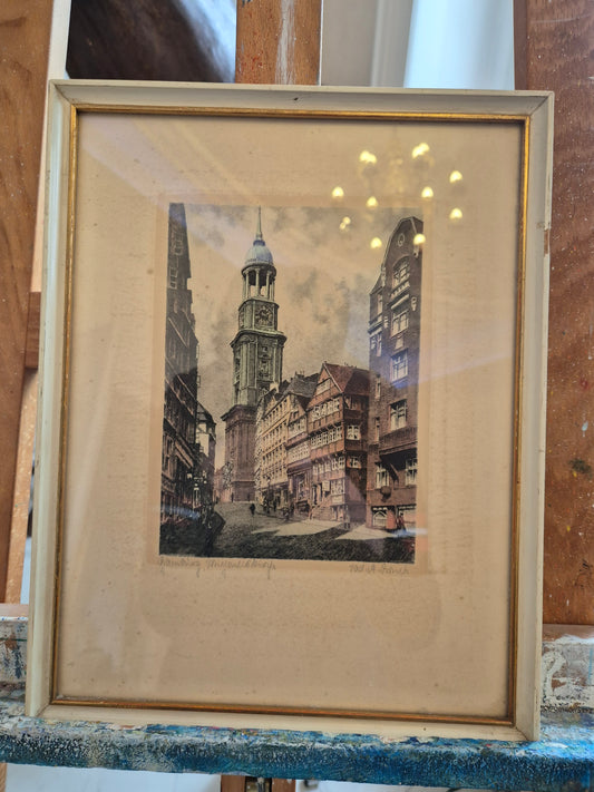 Albrecht Bruck 1874–1964 Farbradierung Stadtansicht 26x33,5 cm