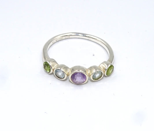 Eleganter Multisteine 925 Silber Ring in Größe 56