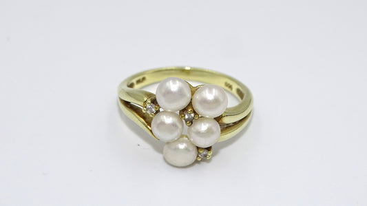 Eleganter Perlenring mit Brillanten in 585er Gold – Größe 55