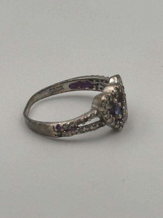 Eleganter Herz-Ring aus 925er Silber mit Strasssteinen und blauem Edelstein