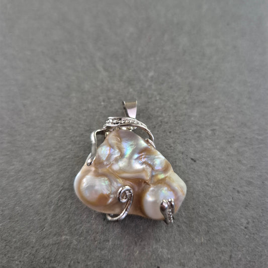Eleganter Perlen Anhänger – Naturform mit Silberfassung