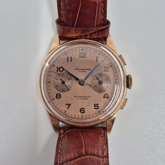 Eleganter Schweizer Chronograph aus 18k Roségold – Zeitloser Vintage-Stil